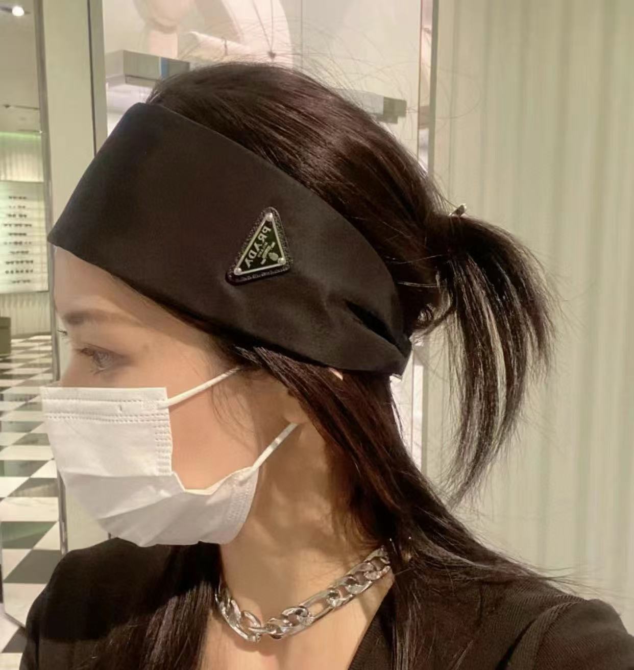 2024秋冬經典款 P家三角標尼龍髮帶 可調節長短