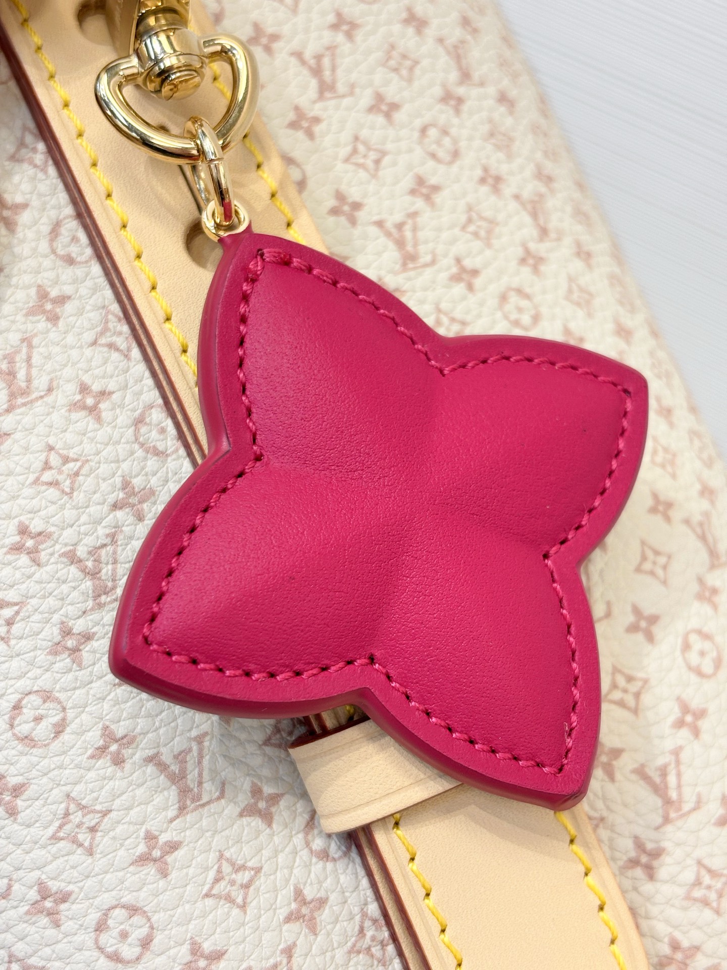 包身搭配小巧立體的玫紅色掛飾,不僅為包包增添玩味與層次,也能依喜好拆卸搭配,讓你一包多用,輕鬆轉換風格。