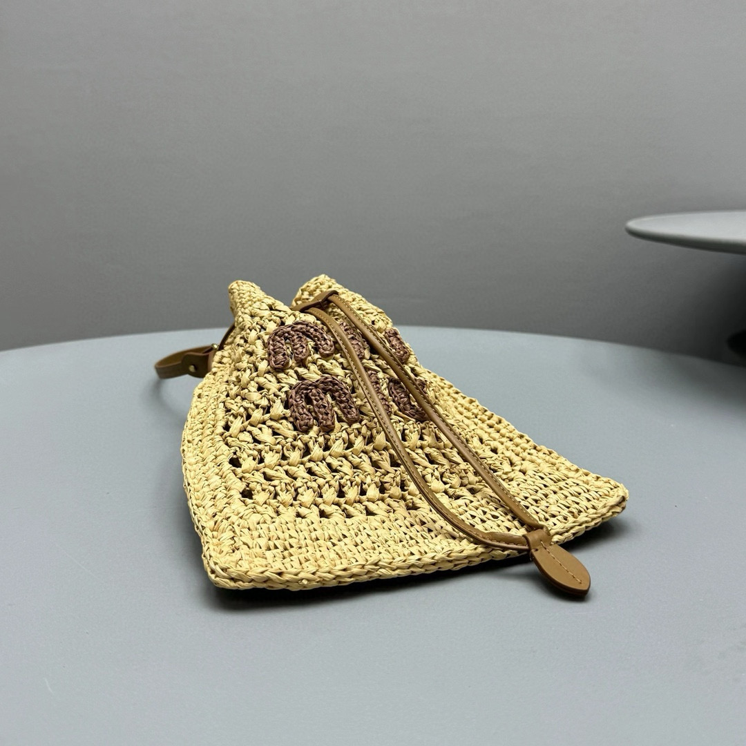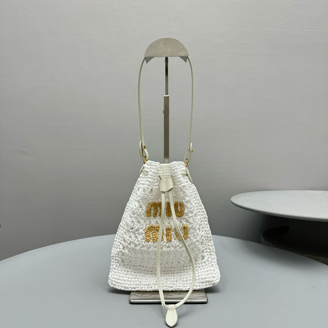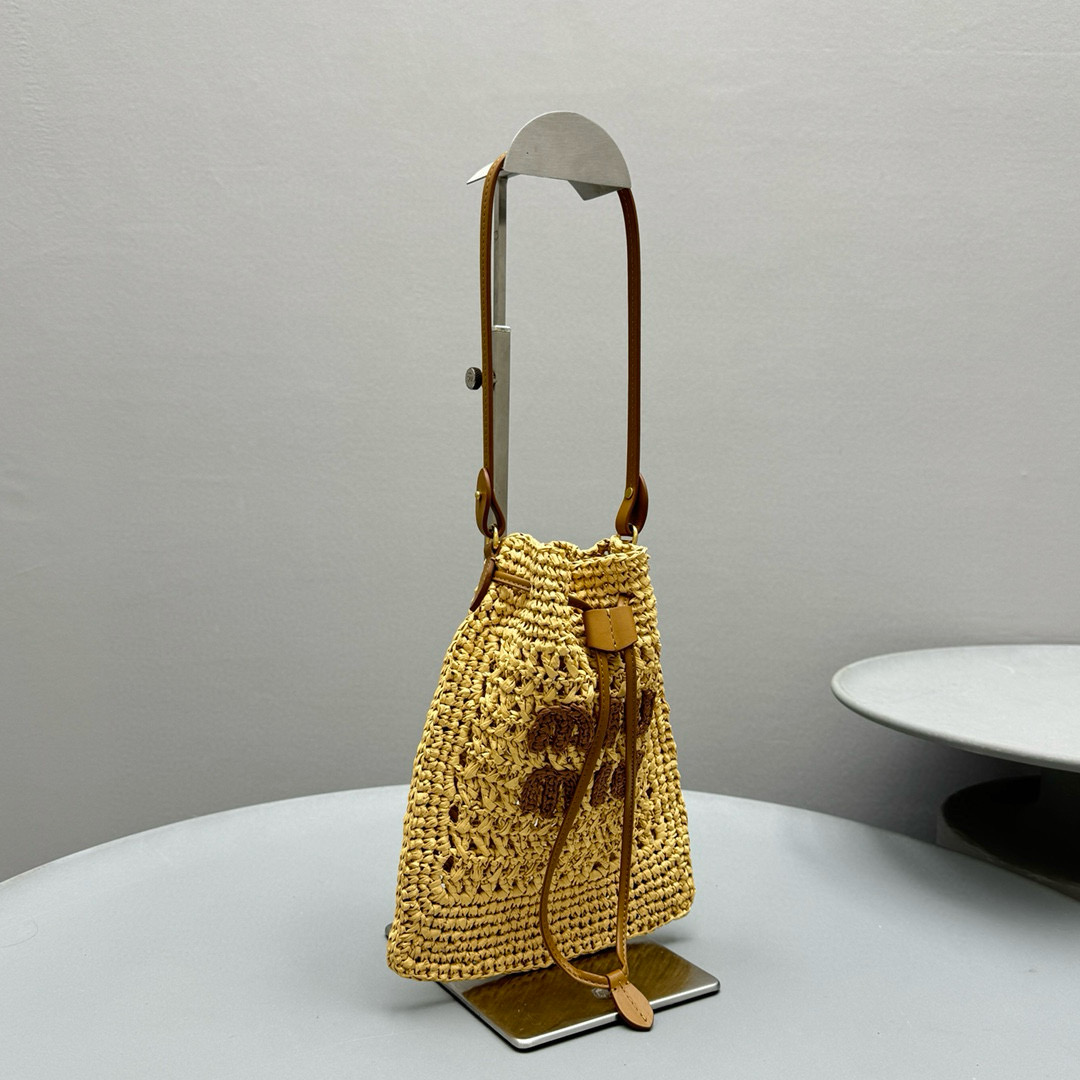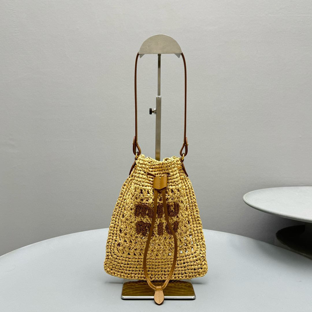 2024春夏新品 Miu家新款迷你抽繩編織手提包 度假風格