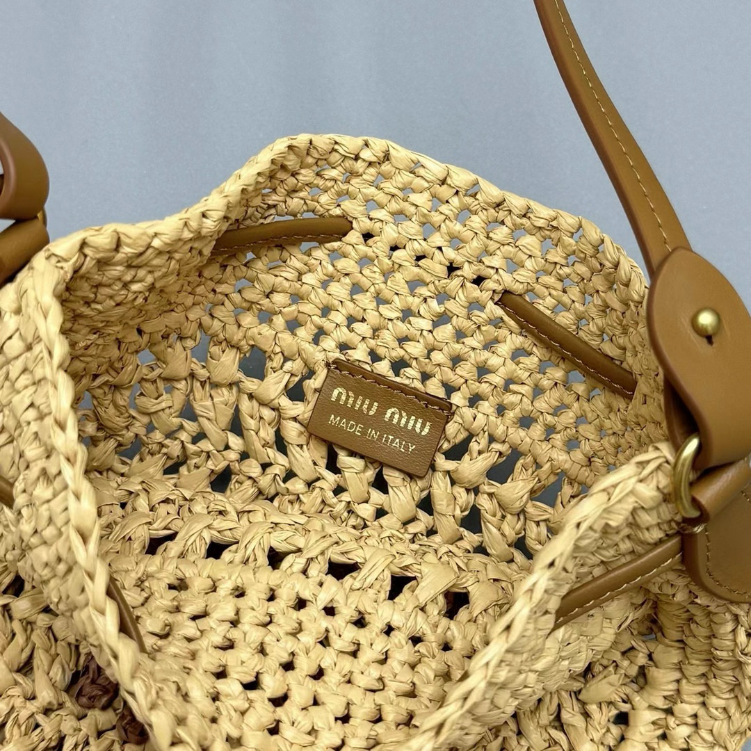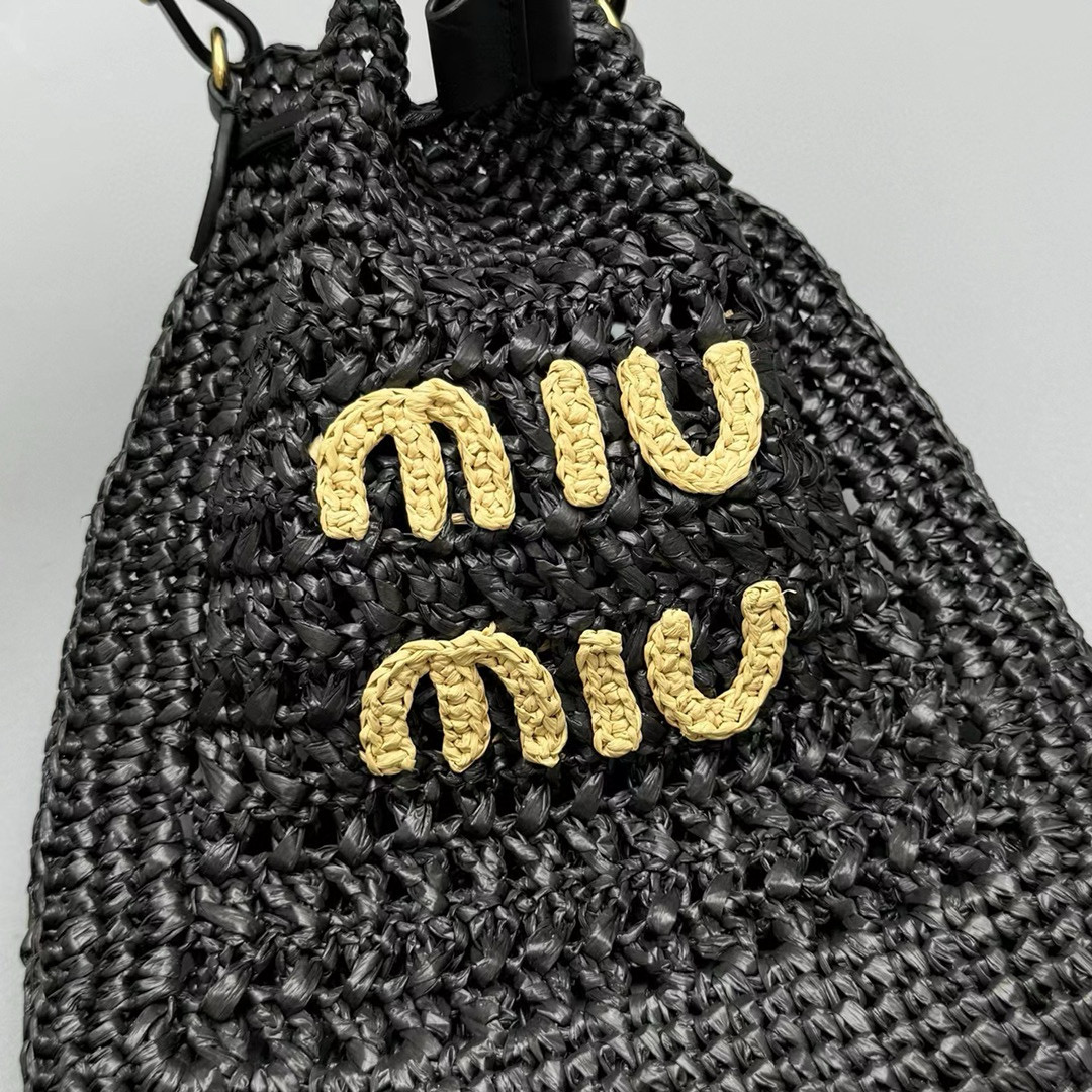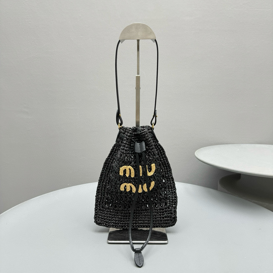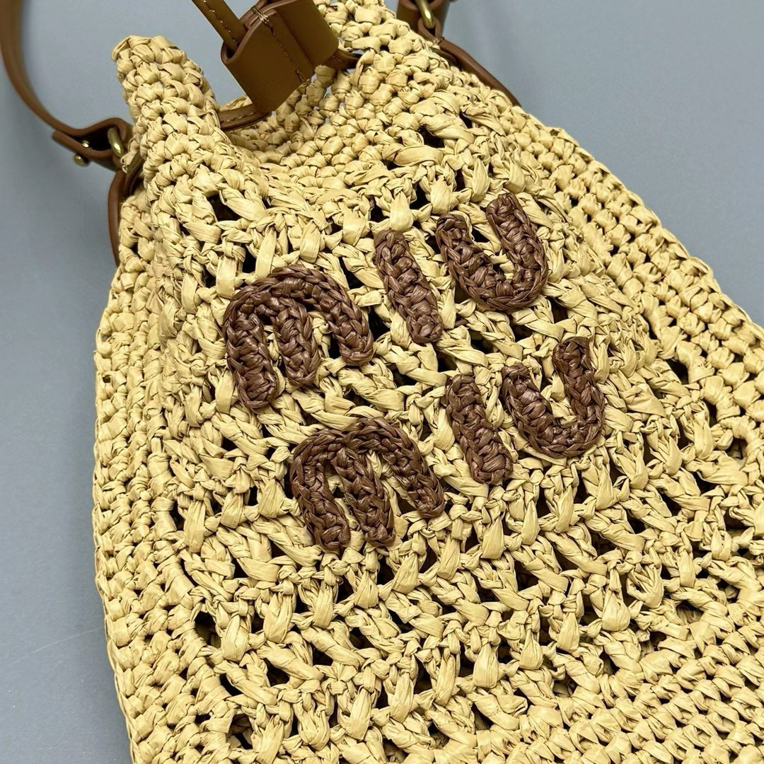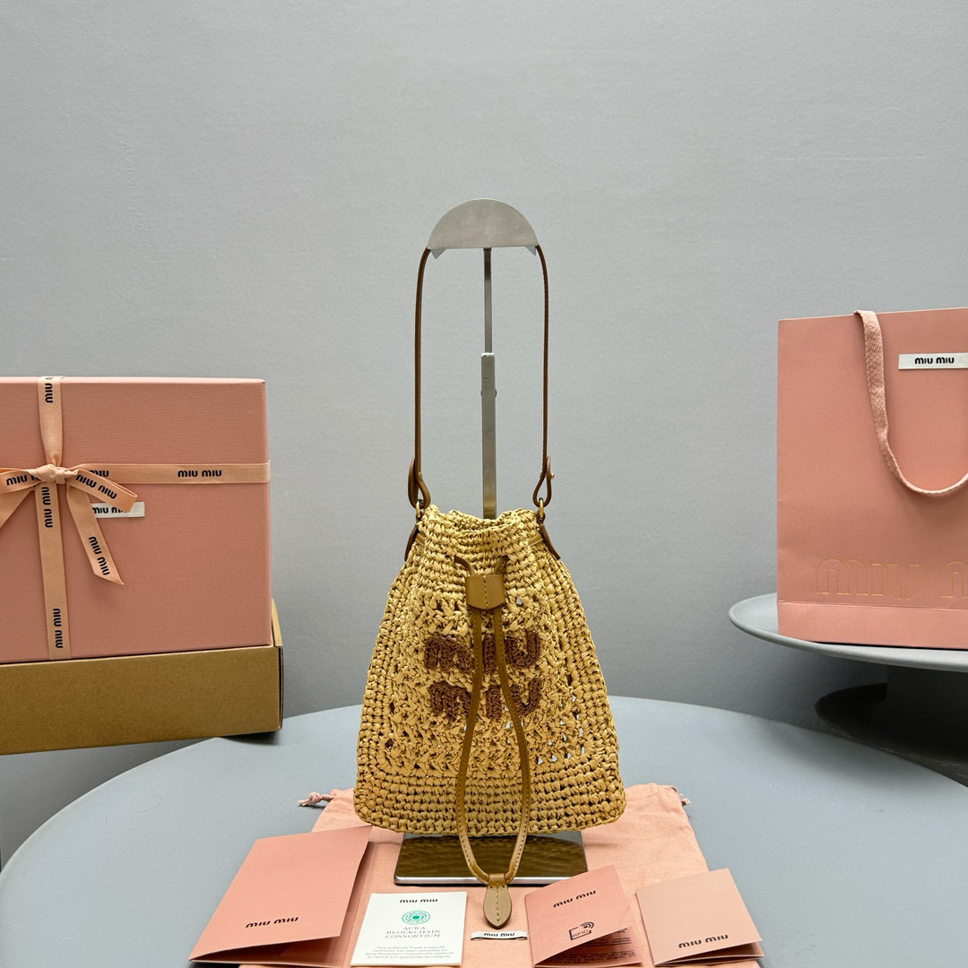 2024春夏新品 Miu家新款迷你抽繩編織手提包 度假風格