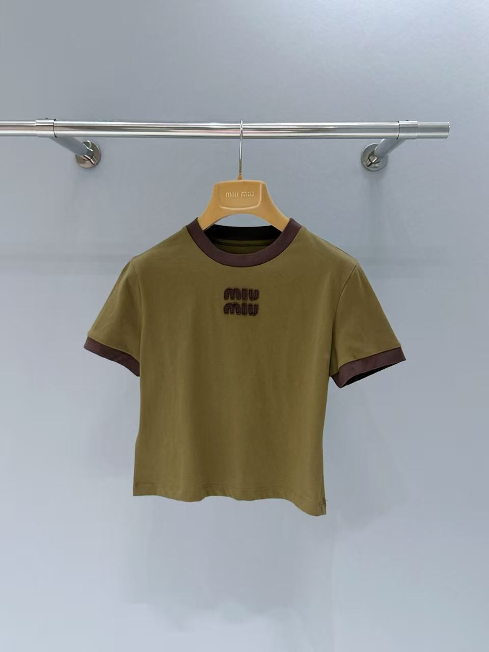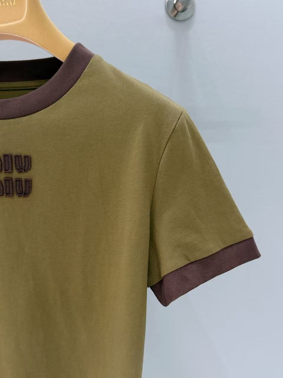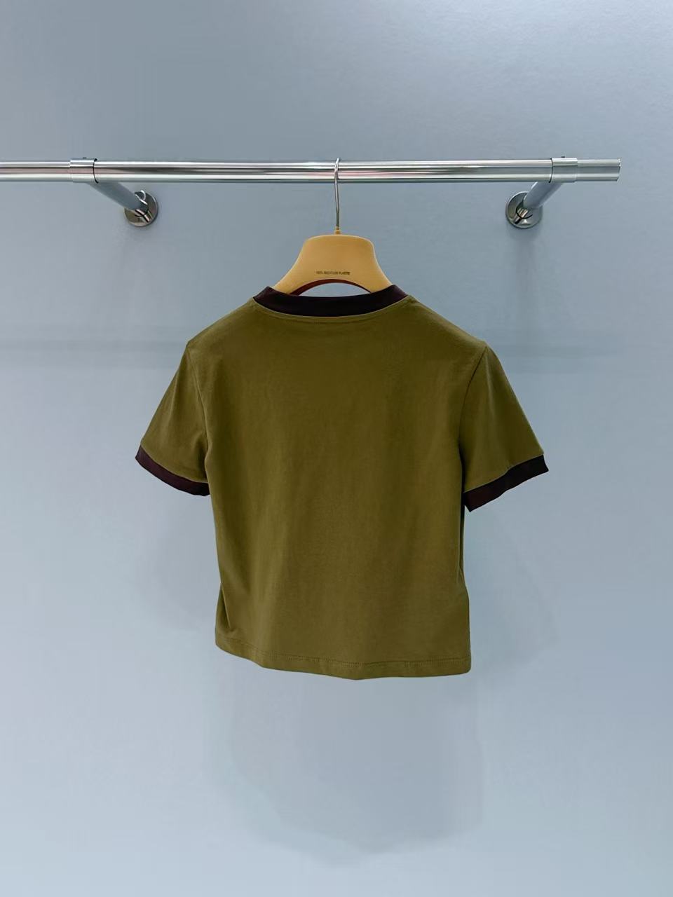 2026早春 Miu家 撞色橄欖綠短款短袖