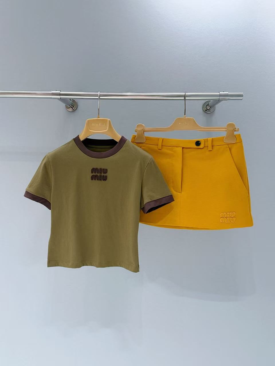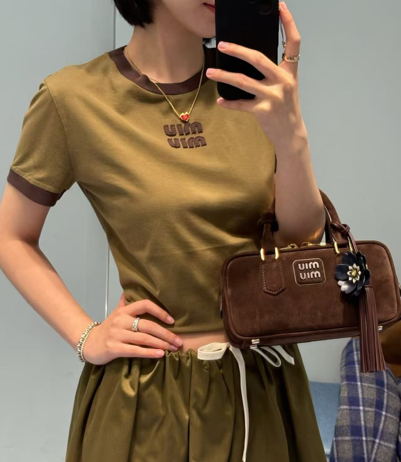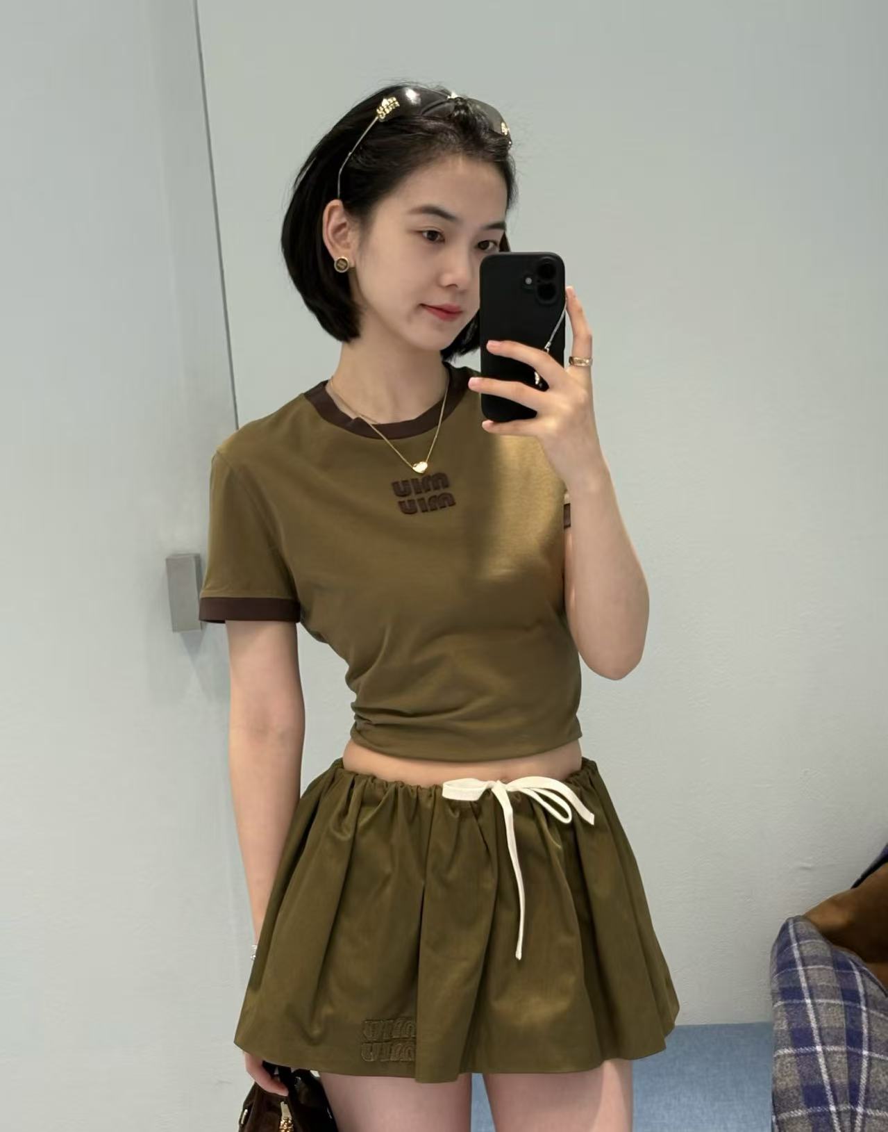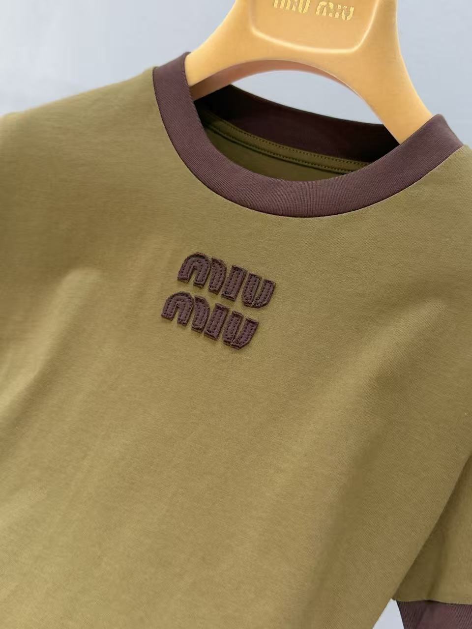 2026早春 Miu家 撞色橄欖綠短款短袖