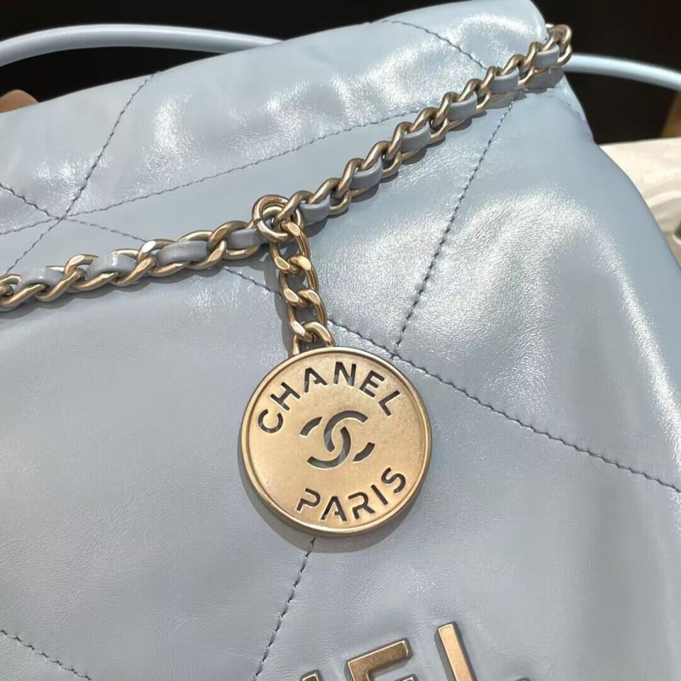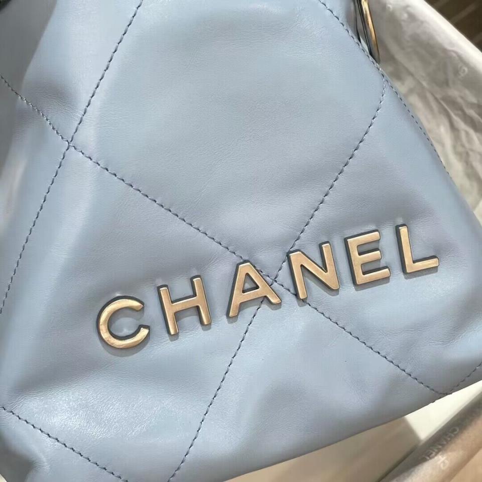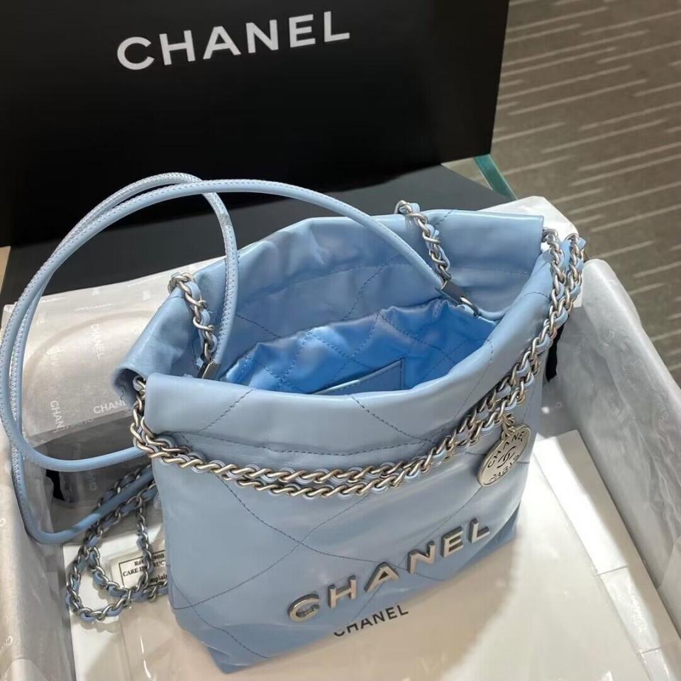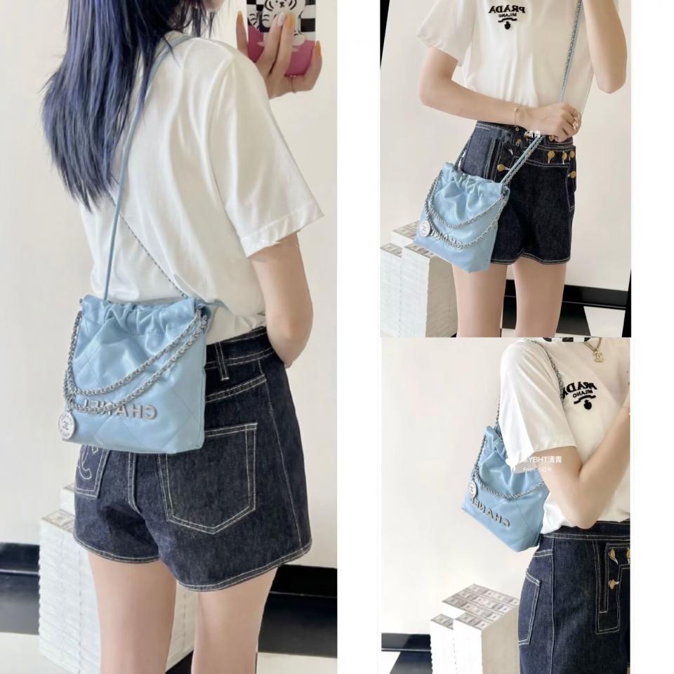 C家23新品Mini垃圾袋(天空藍) 過分的美 光面小牛皮搭配古金雙鏈條