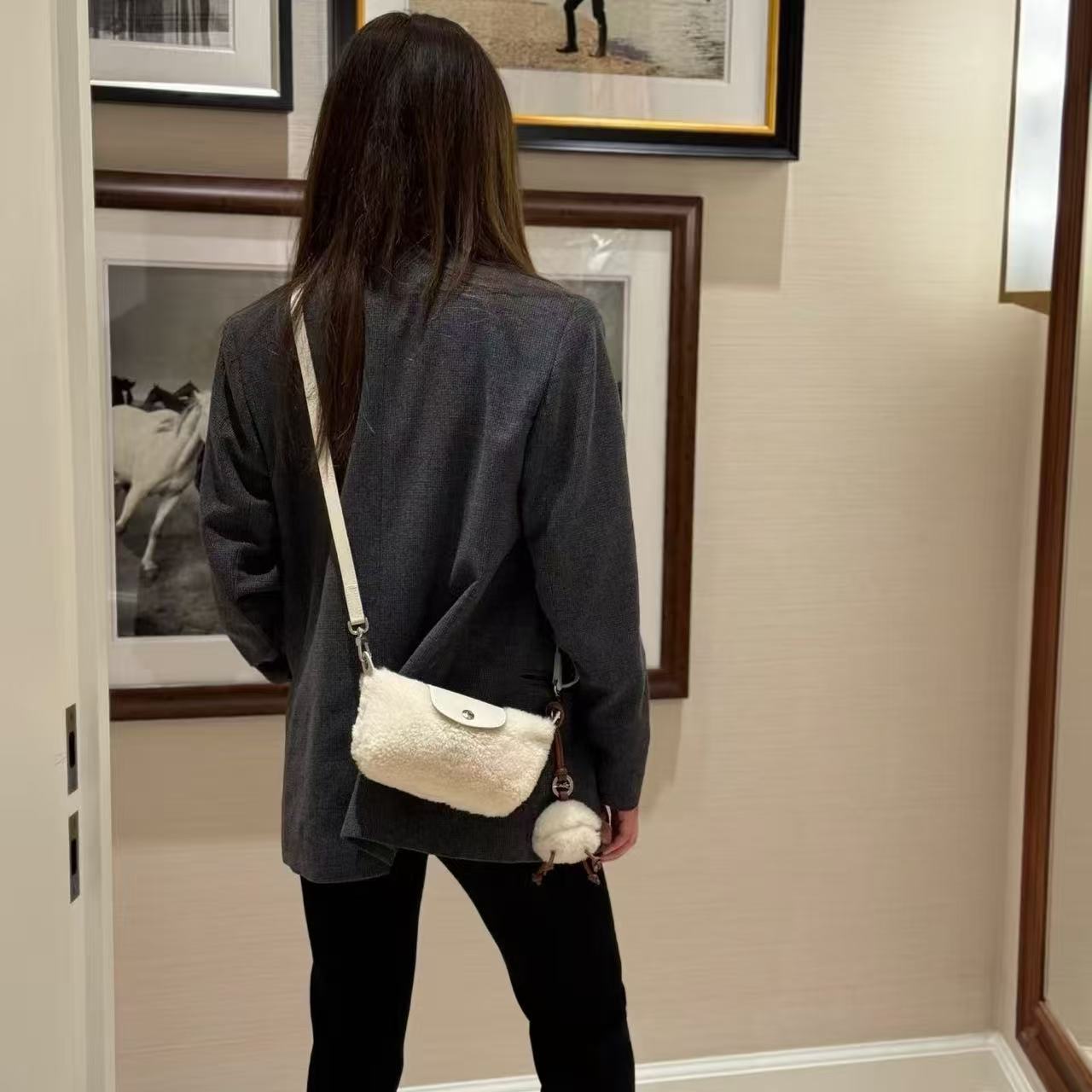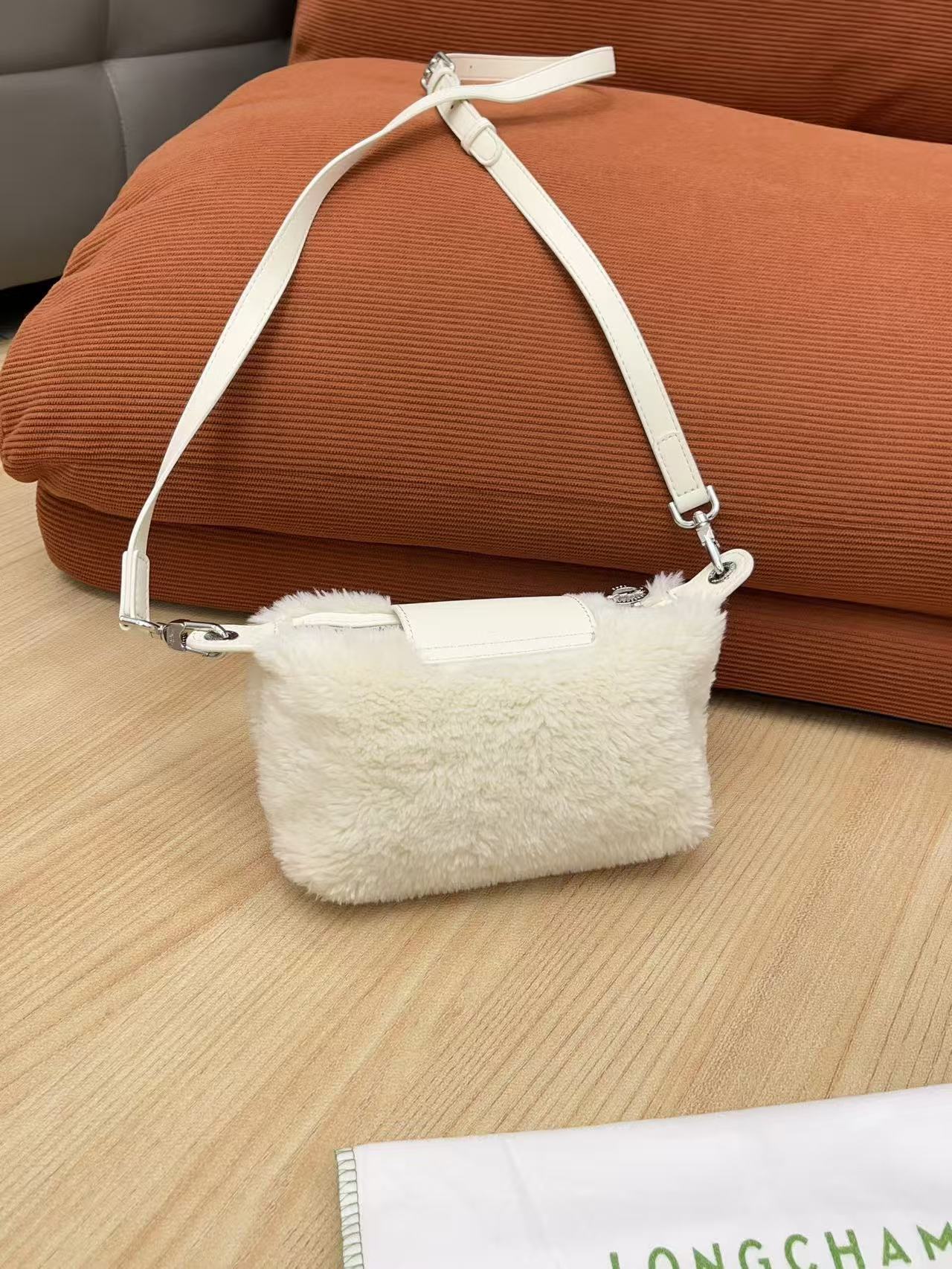 Mini 餃子包完美結合了時尚外觀和實用機能:羊羔毛萌感外觀: 包身覆蓋著柔軟的羊羔毛,充滿了秋冬的溫暖氛圍,一揹上身吸睛度滿分!