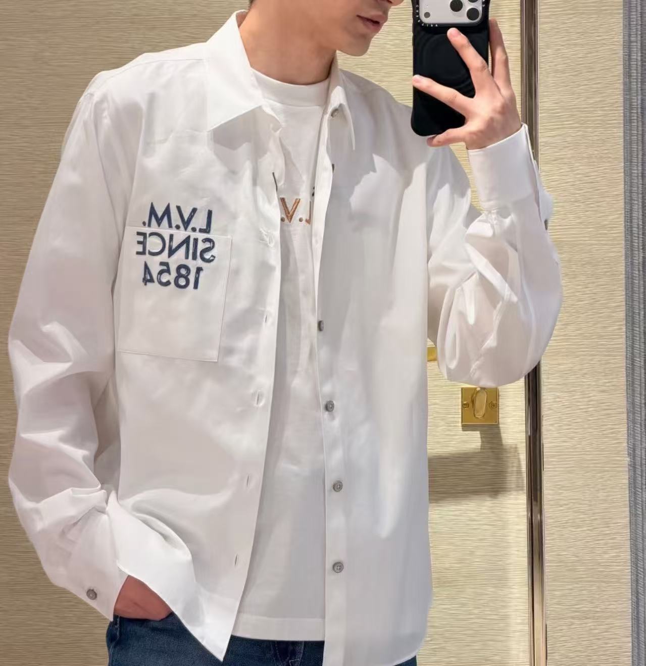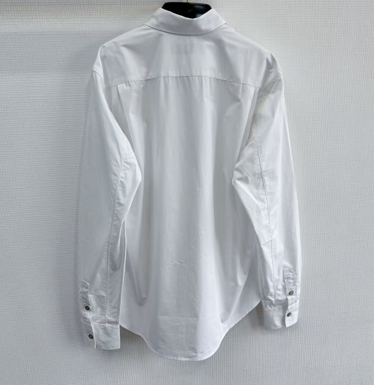 搭配具有金屬質感的珠光鈕扣,在光影流轉間低調宣告品牌身分。無論是單穿展現俐落的高級質感,或是作為外搭層次,這款襯衫都能以其細膩的細節,定義您的早春優雅風範。