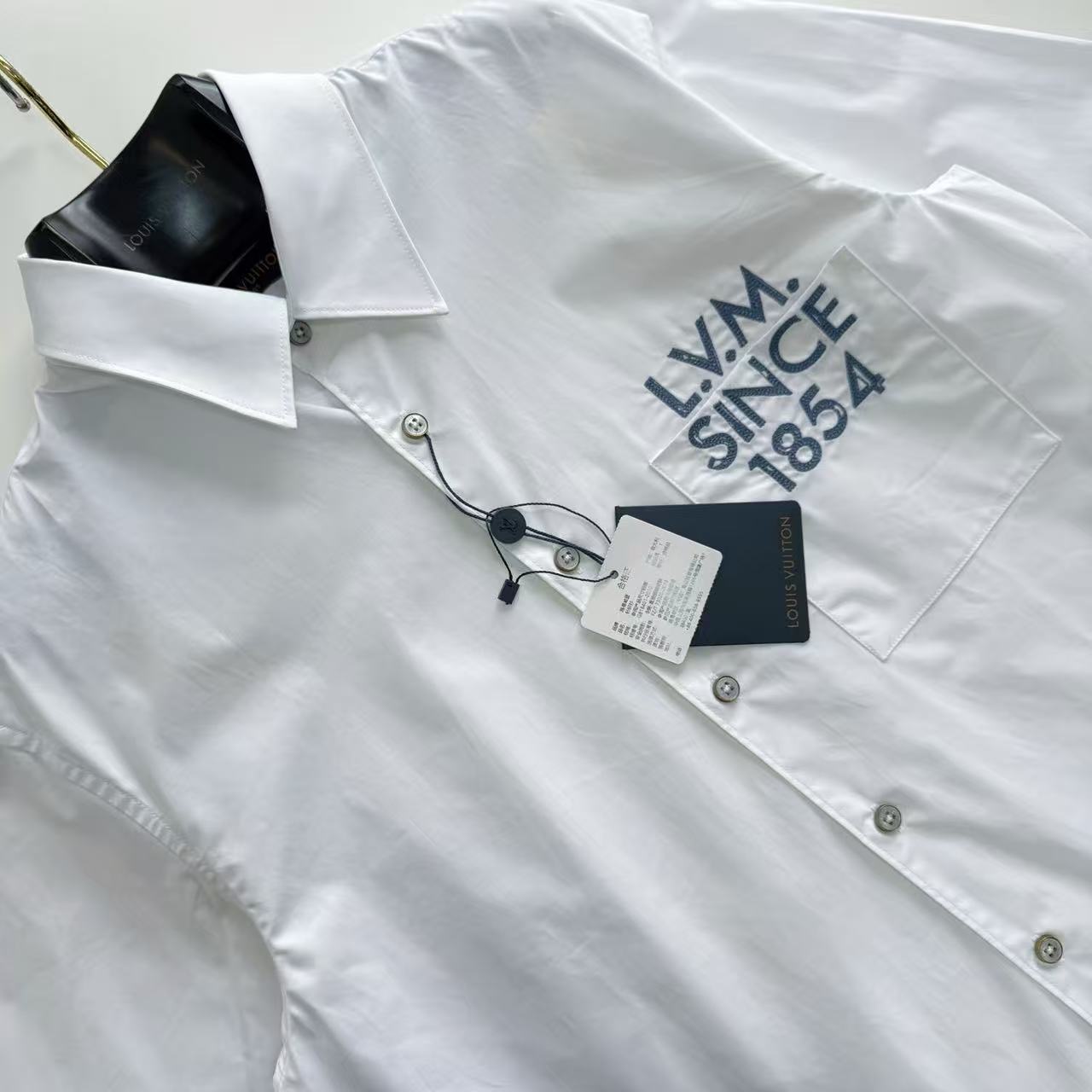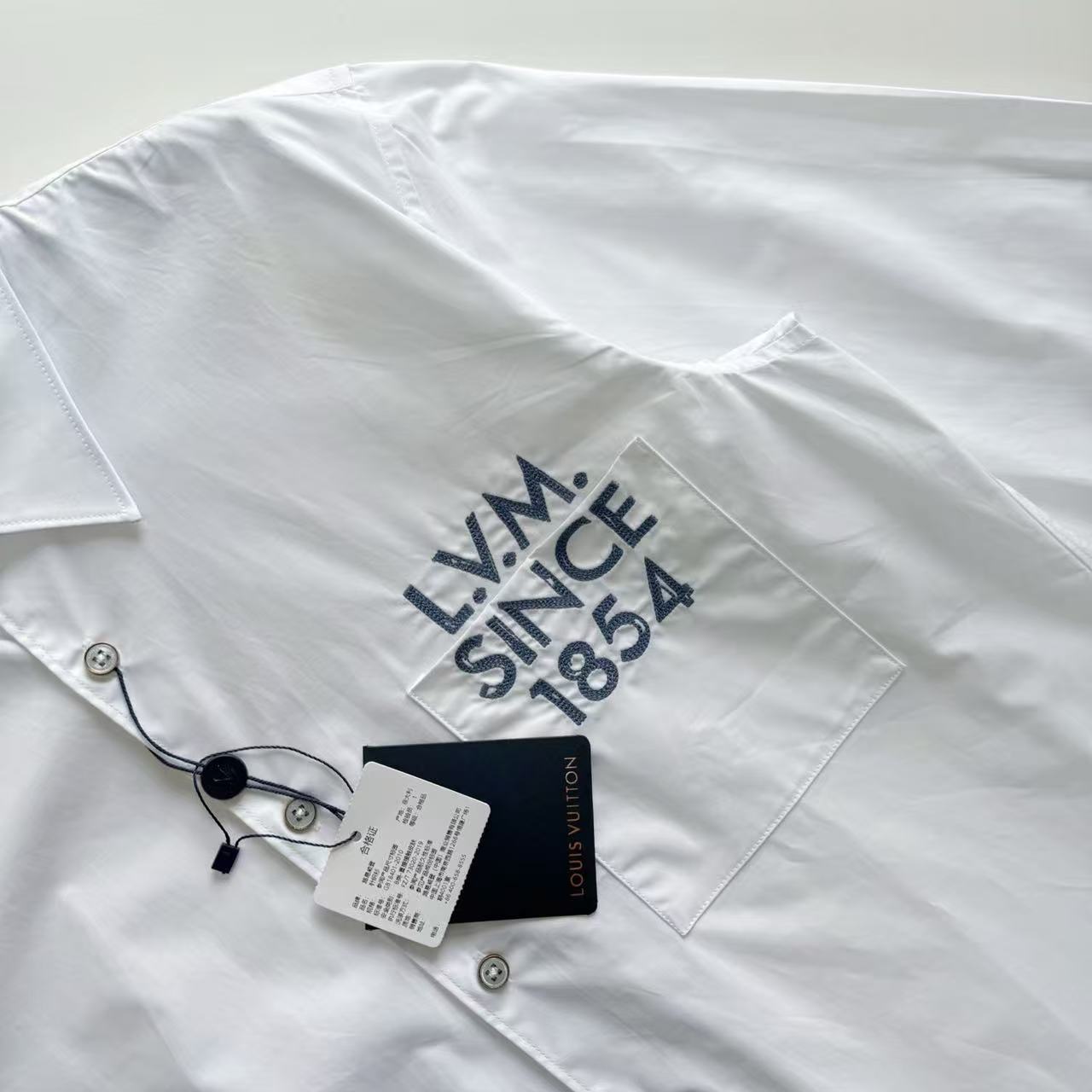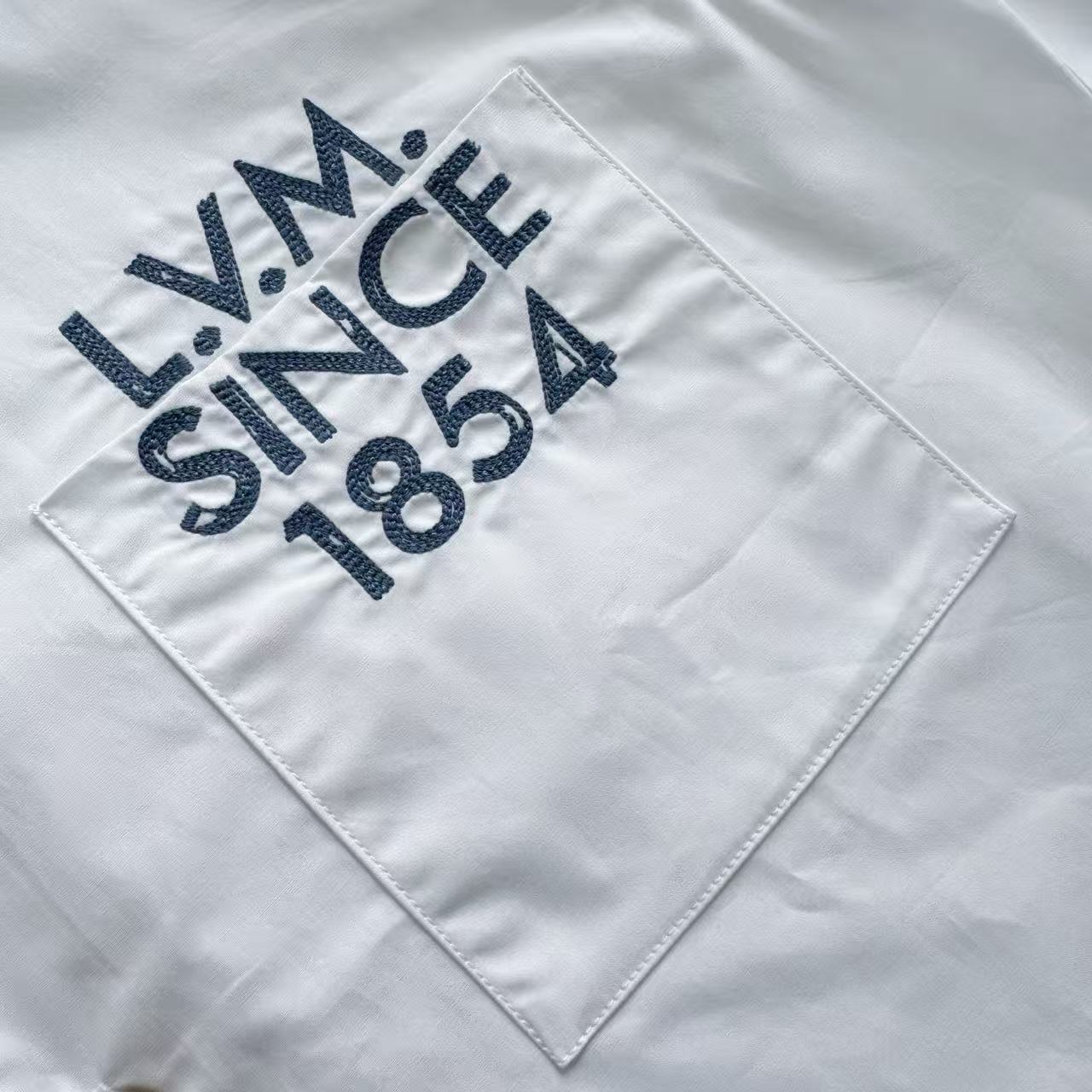 將復古的紋理與現代襯衫廓形完美揉合。整件單品的核心靈魂在於胸前精緻的 1854 標識,透過極致的日本田島(Tajima)刺繡工藝,在純白材料上展現出立體且紮實的線條感。