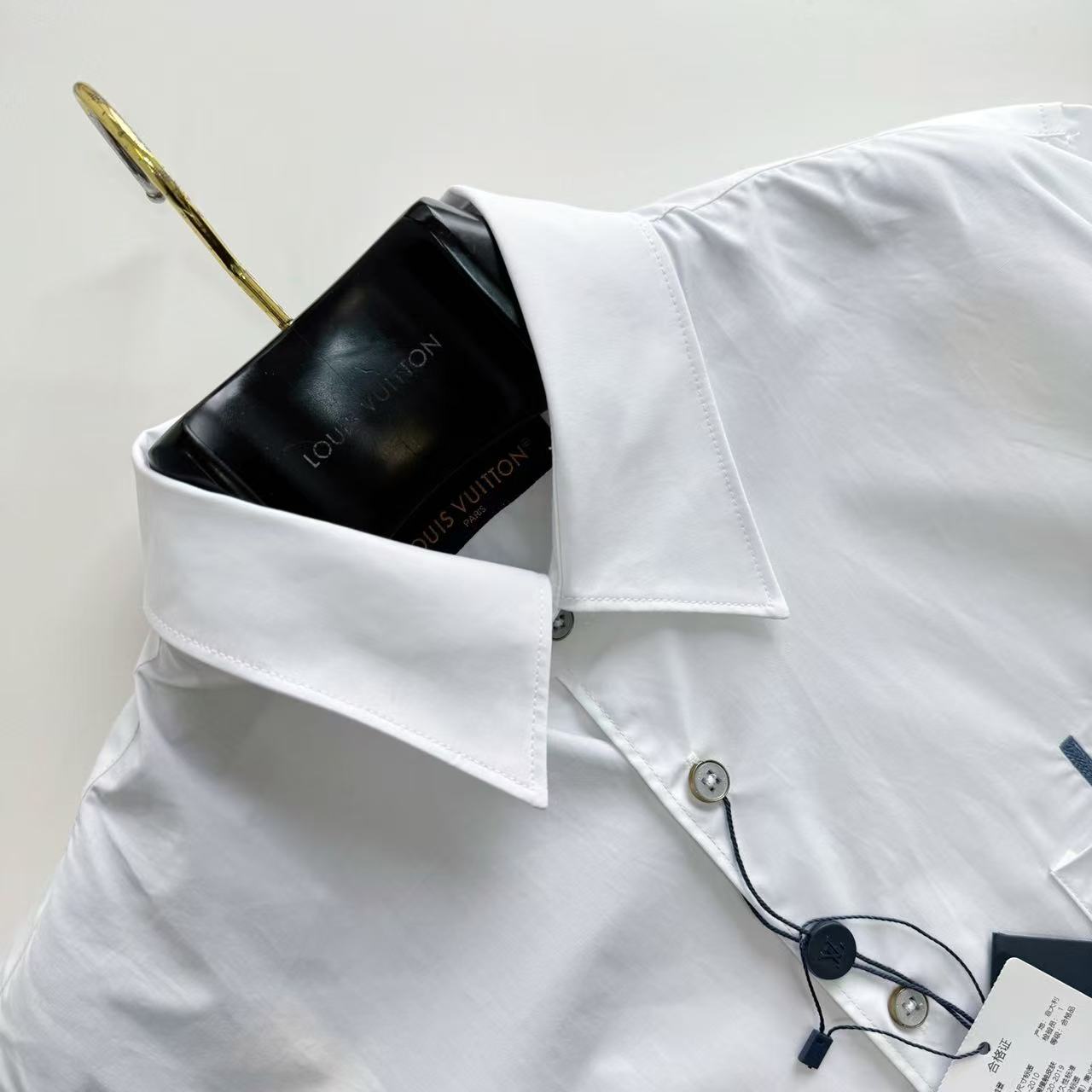 最迷人之處莫過於其鏤空繡花技術。這並非單純的平面電繡,而是在材料表面進行細膩的鏤空處理後,再根據花型圖案精準繡製,在視覺上營造出透與不透之間的豐富層次,賦予了襯衫一種宛如高級訂製服般的藝術厚度。