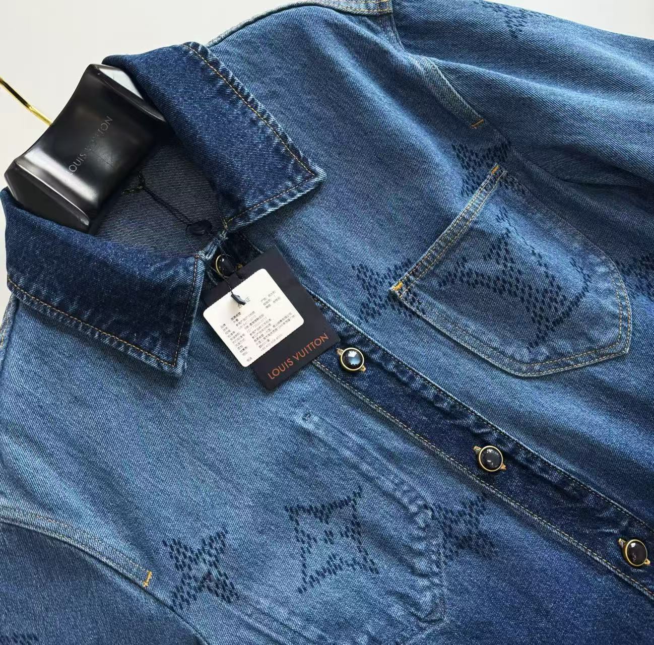 這款牛仔外套以經典翻領剪裁與直筒版型為基調,線條俐落、結構感強,輕鬆修飾身形比例。從淺至深漸變牛仔藍搭配定織Monogram老花,圖案立體細膩、層次分明;激光鐳射雕刻技術精準呈現漸變紋理,水洗工藝營造自然做舊感,毛鬚邊緣反覆對版原版,絕不突兀。專業鎖邊+疊鎖縫設計,耐穿不散邊,細節處處彰顯工藝。無論單穿還是內搭毛衣,這件外套都能為你的造型注入滿滿的復古老花街頭風!