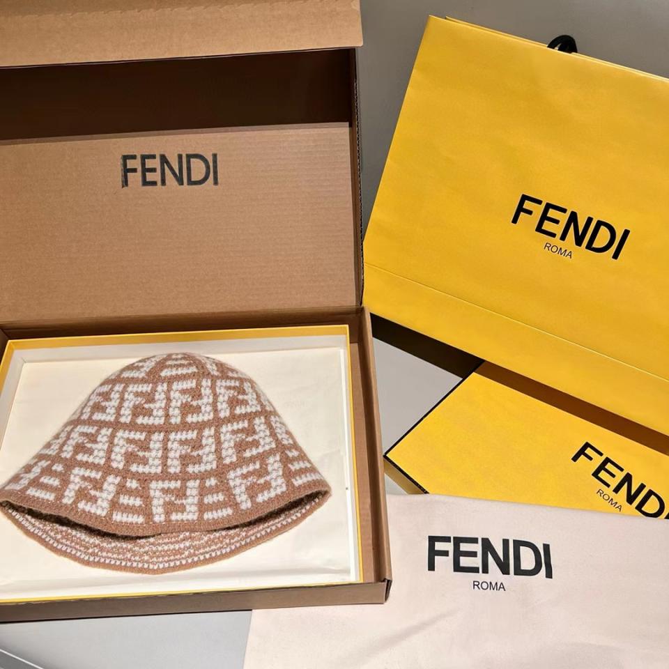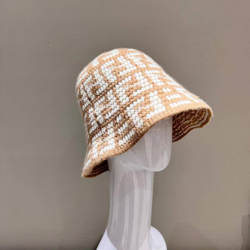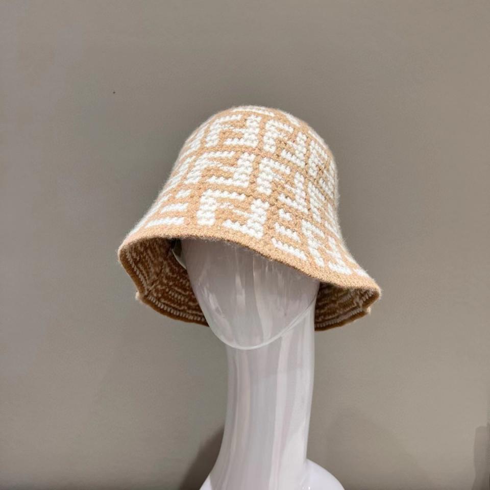2023秋冬 F家滿版雙F針織漁夫帽 奶茶配色超溫柔