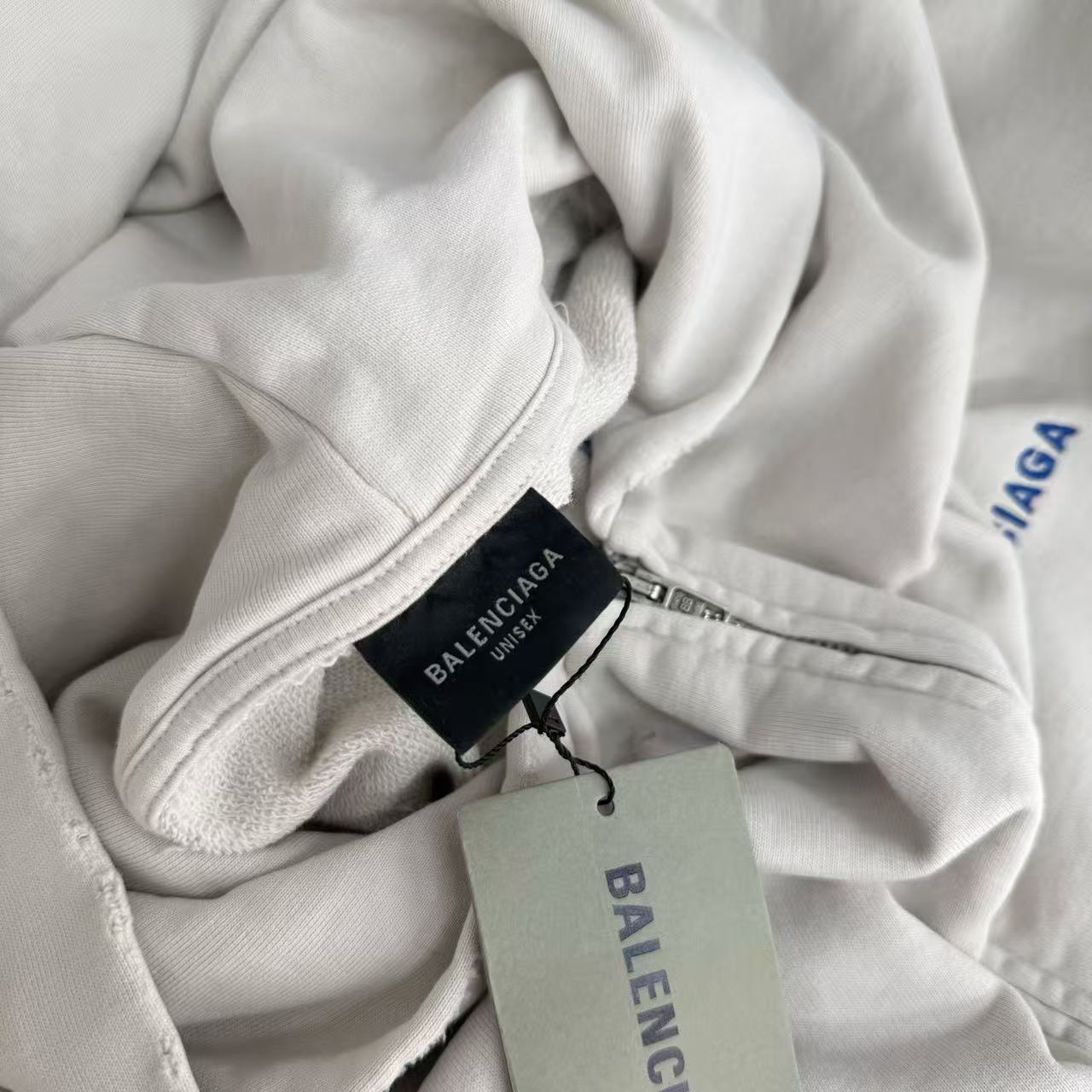 這件帽衫的材質真的非常講究!它使用了 420g 定染的奶白色布料,摸起來手感超級好,而且非常挺括,穿起來版型超好!最棒的是,面料還經過重工洗水處理,讓它呈現出自然泛白的紋理感,就像是穿了三年一樣,充滿了歲月感和故事性。
