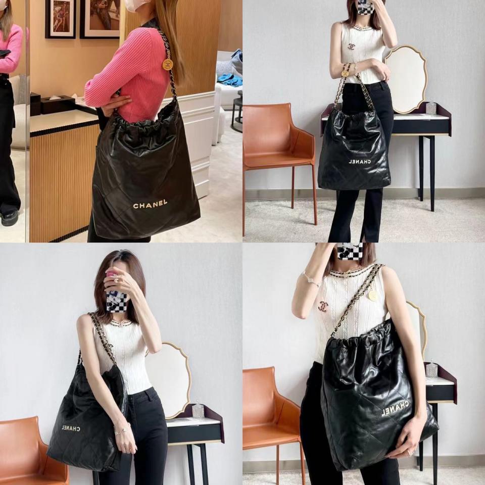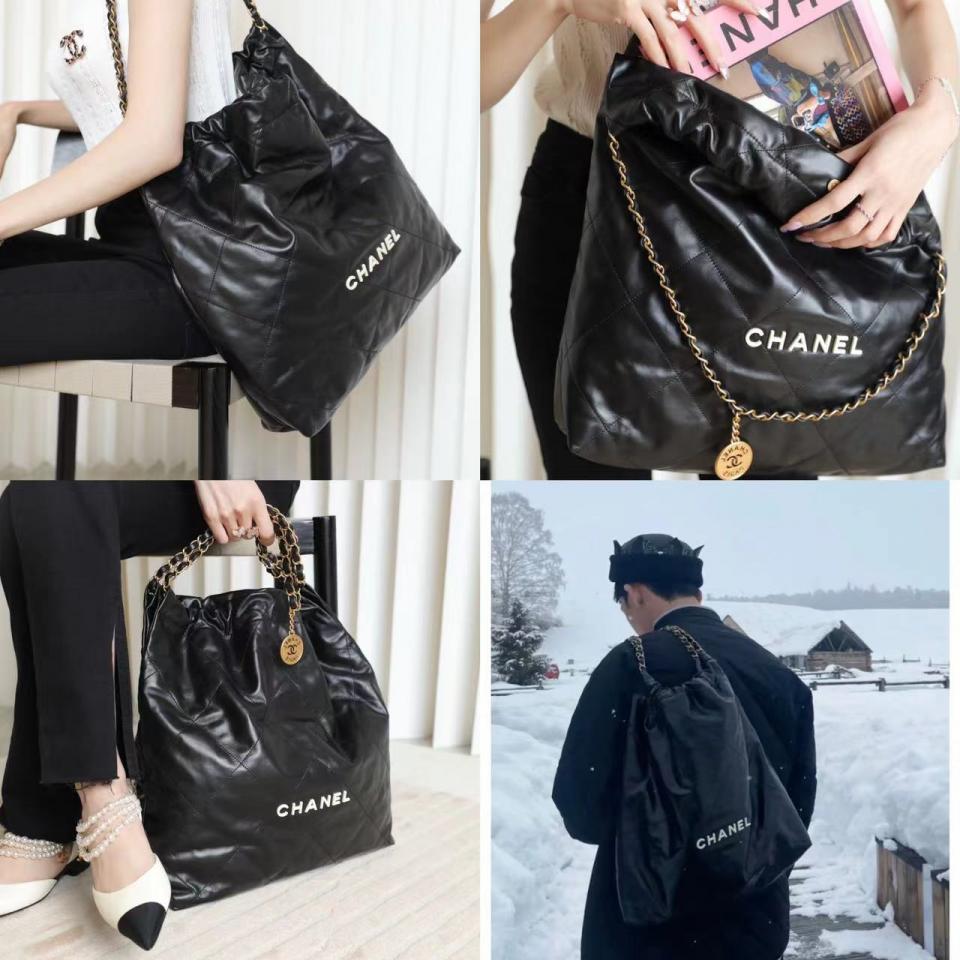 2022春夏新品 超級火爆款 22bag字母單肩購物袋 黑色白字(大號)