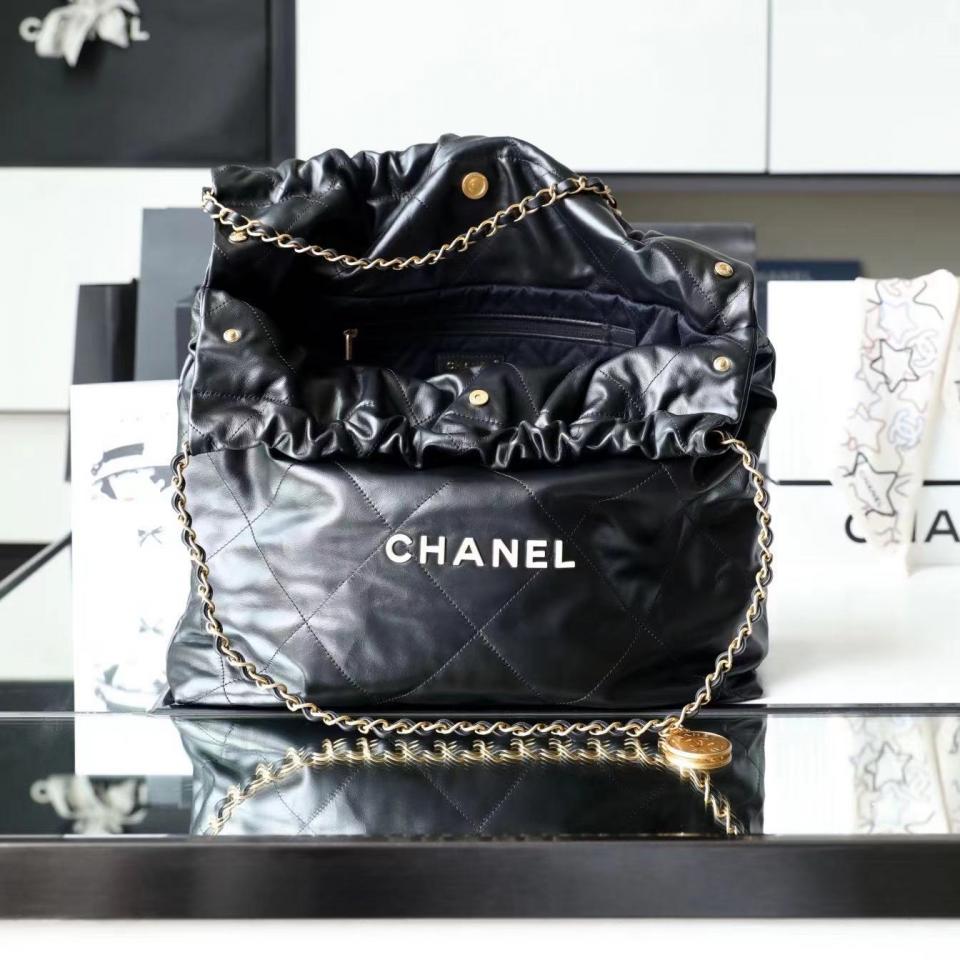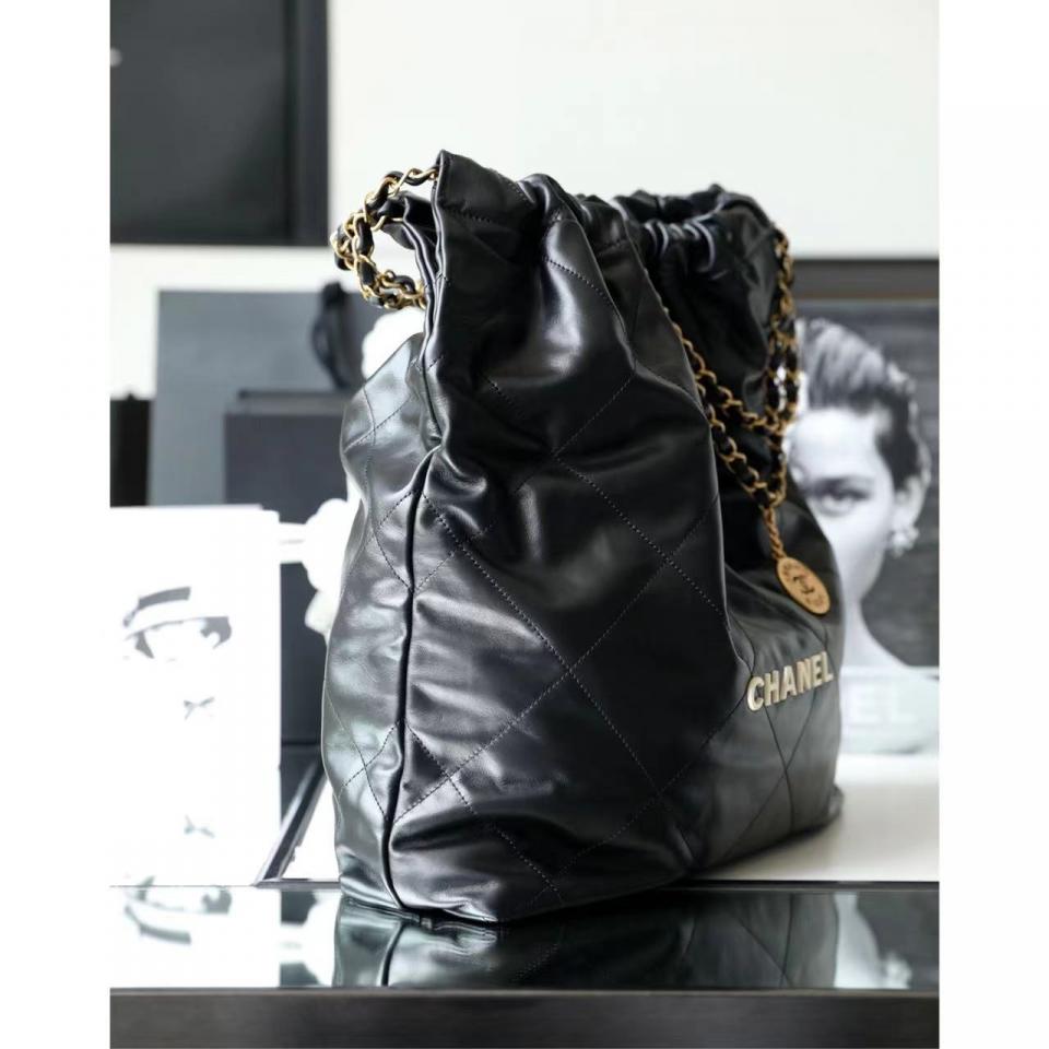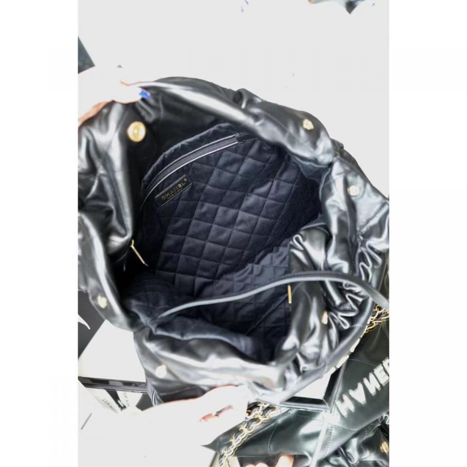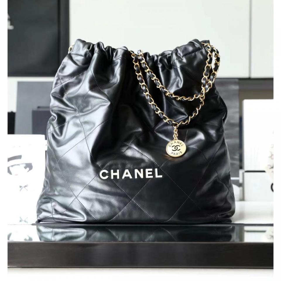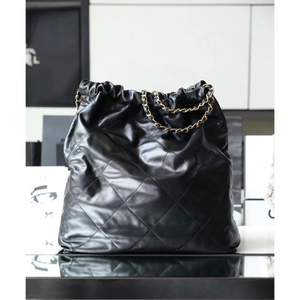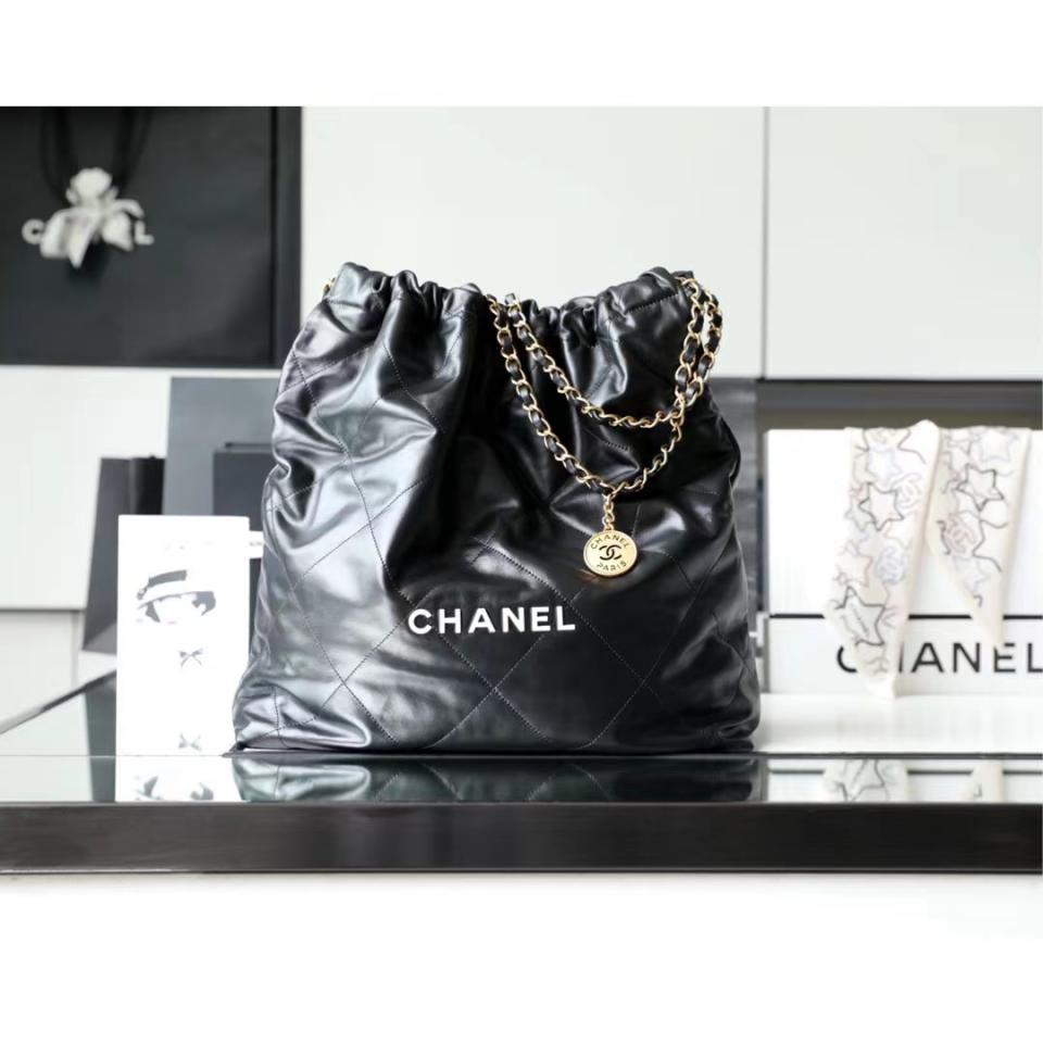 C家22bag字母單肩購物袋 黑色白字(大號)