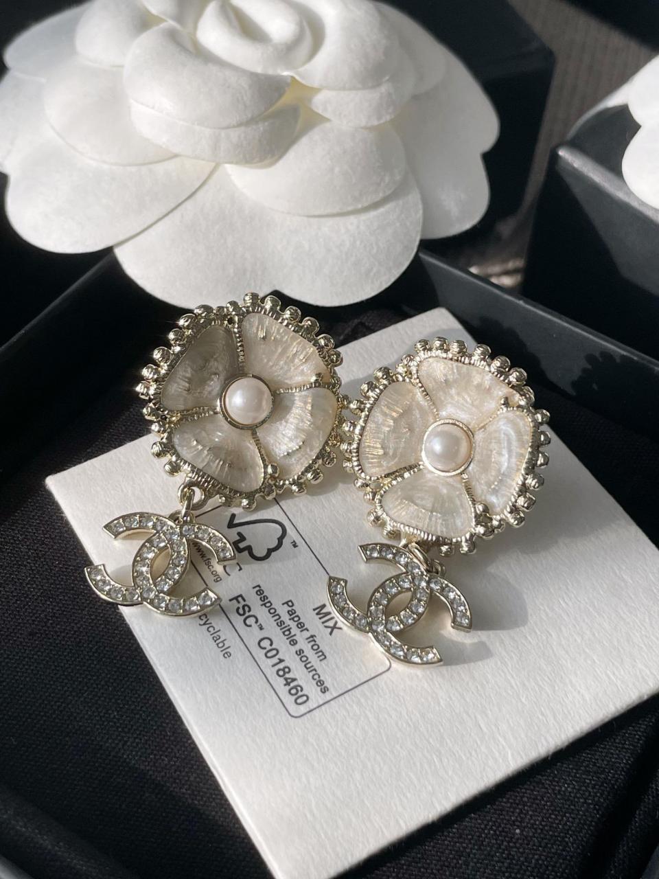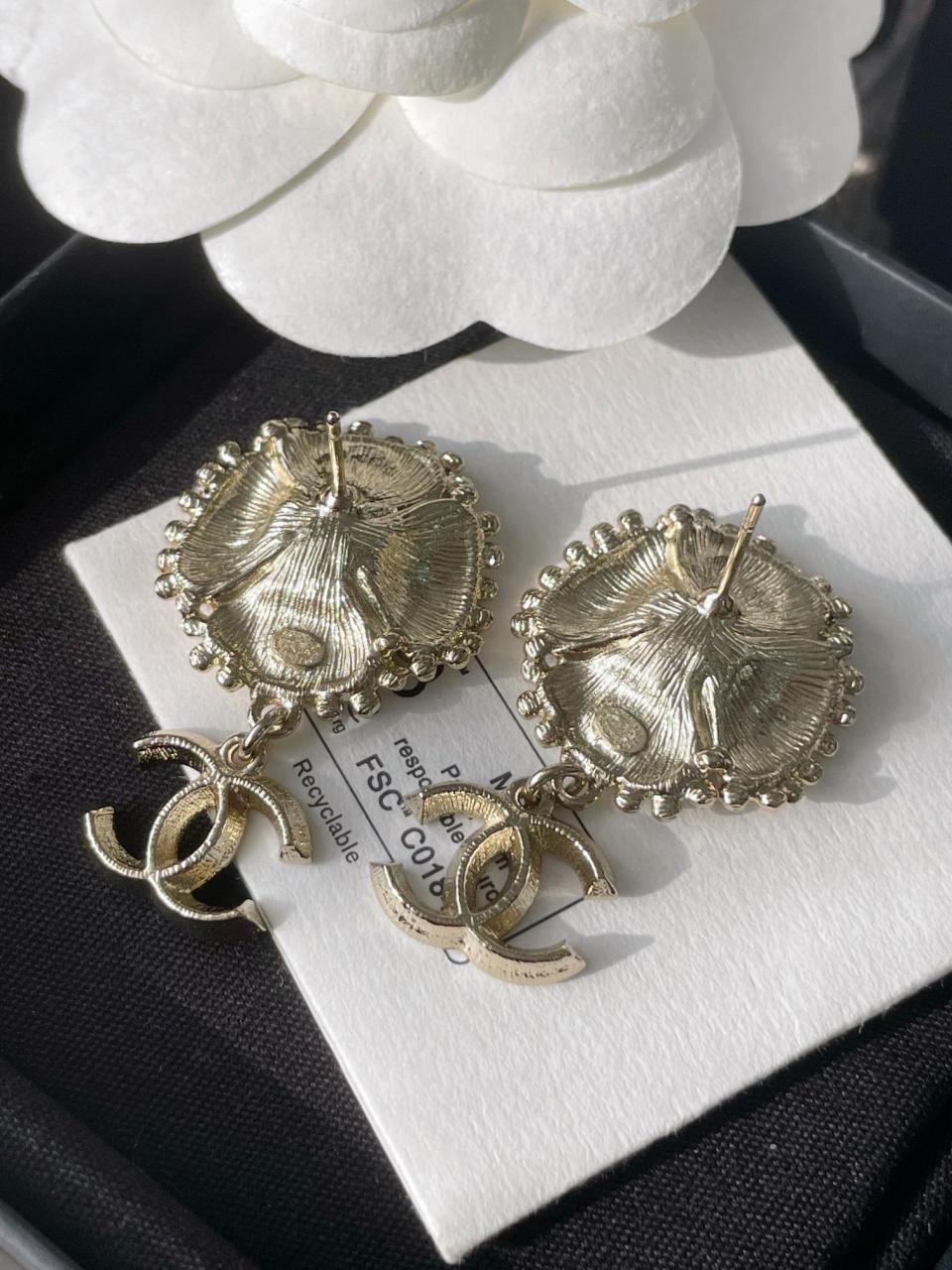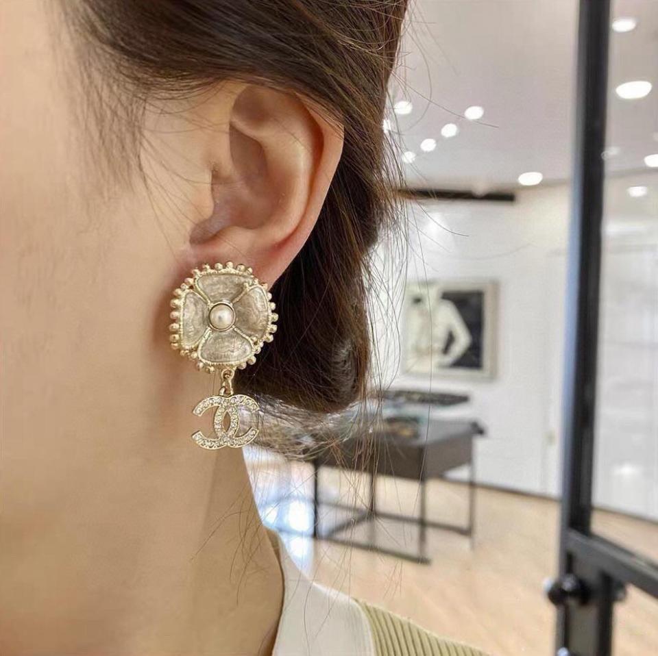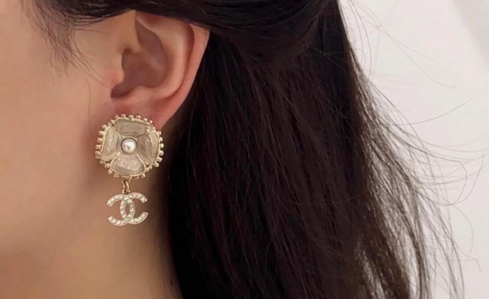 《尺寸規格》耳環高約3.8CM,山茶花寬約2.4CM,雙C寬約1.6CM