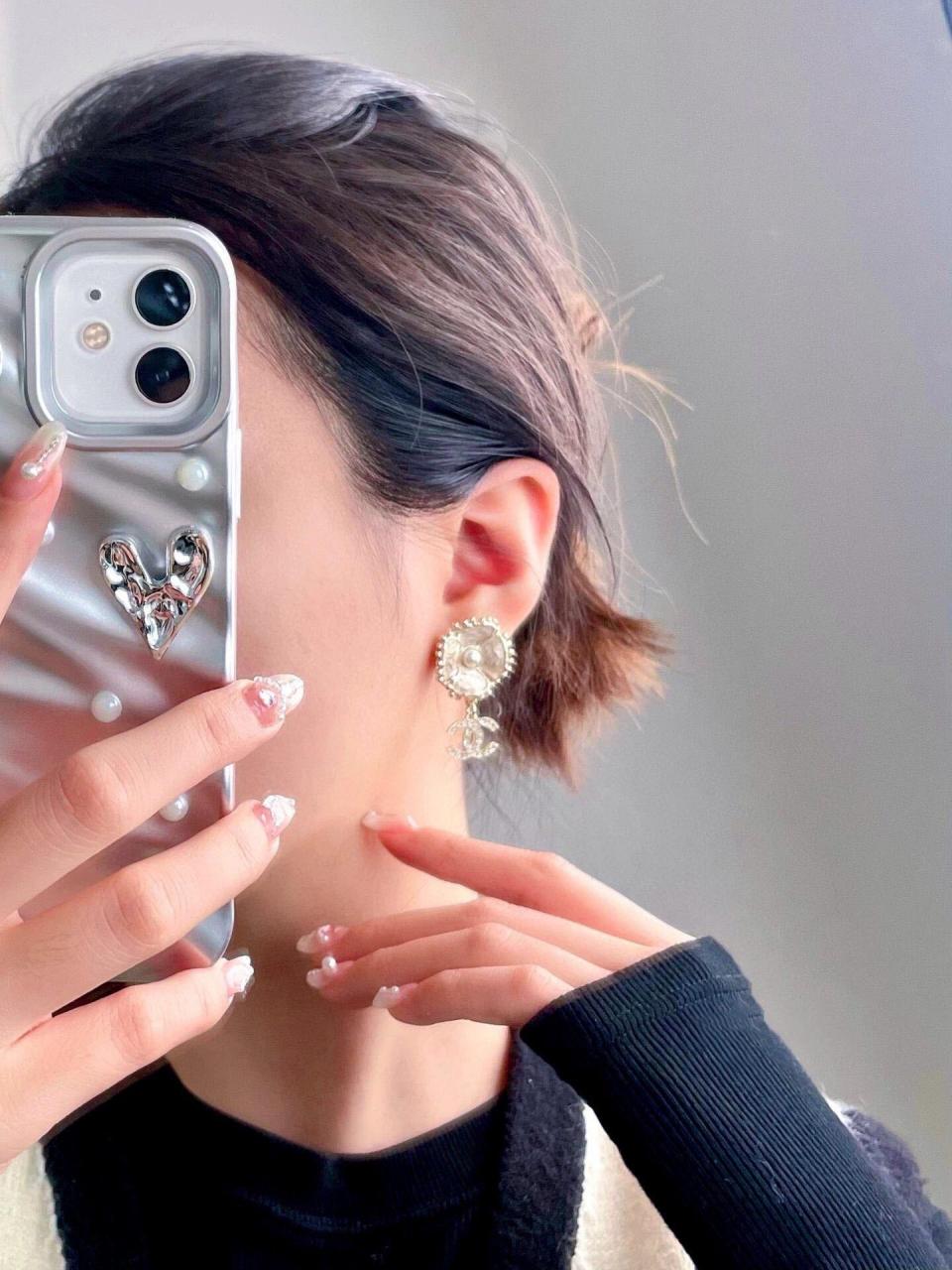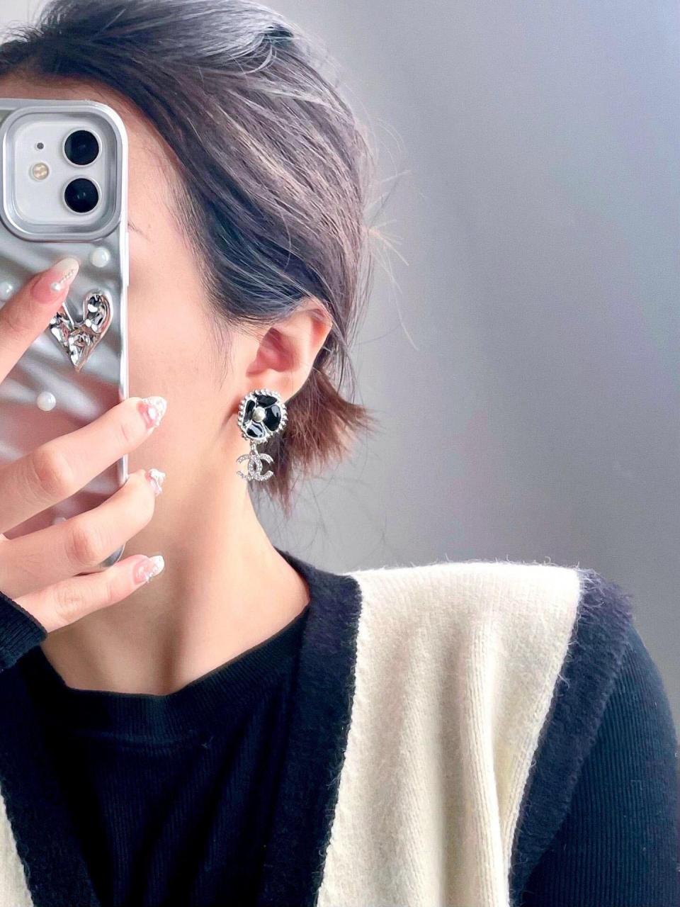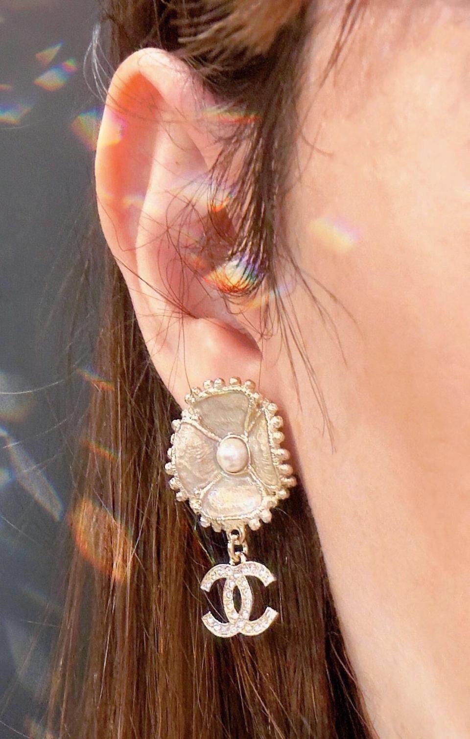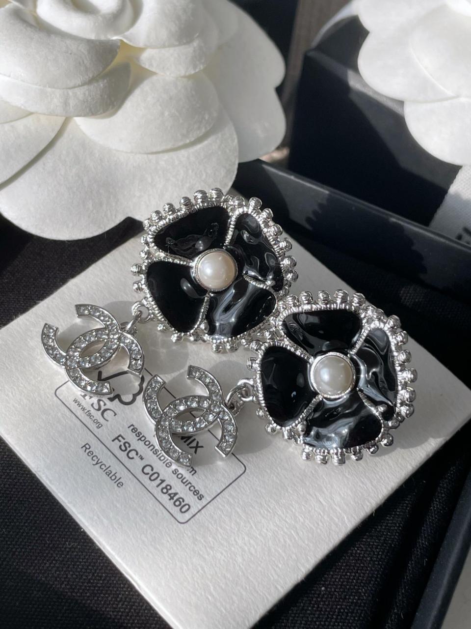 《尺寸規格》耳環高約3.8CM,山茶花寬約2.4CM,雙C寬約1.6CM