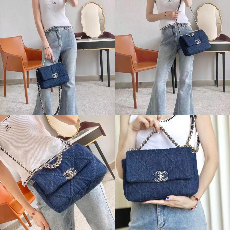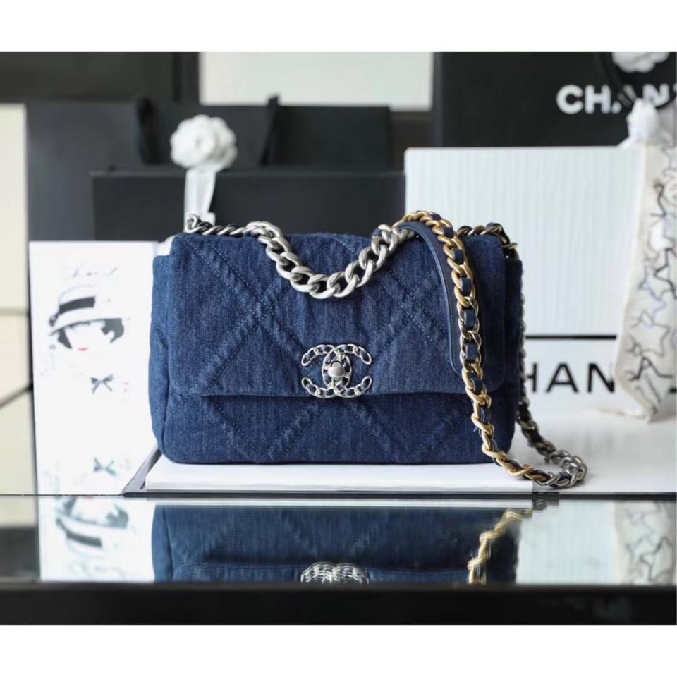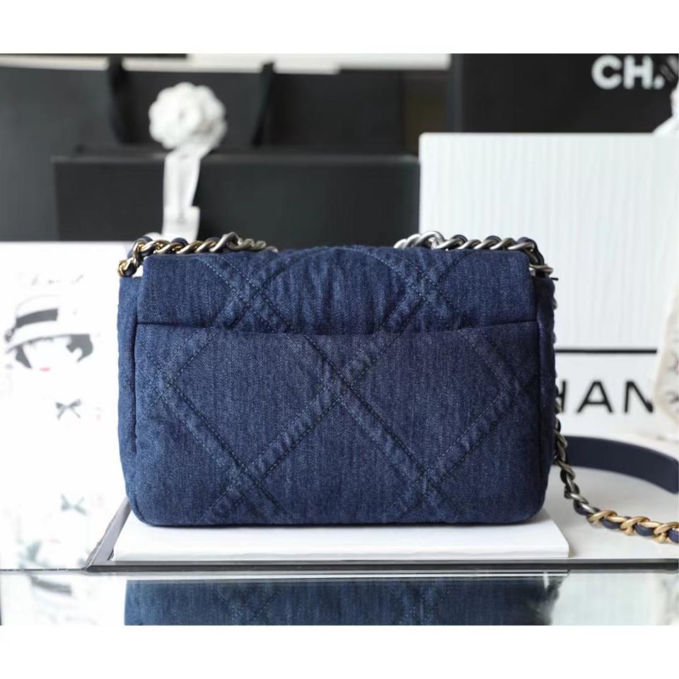 2022春夏新款 19bag丹寧牛仔系列口蓋包 小號(深色) 砂銀扣設計
