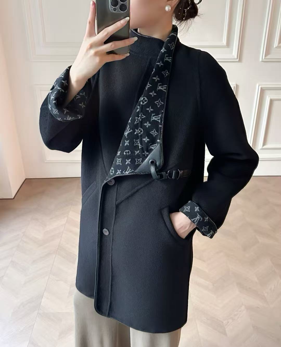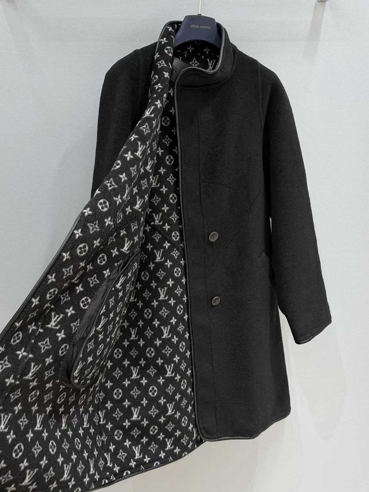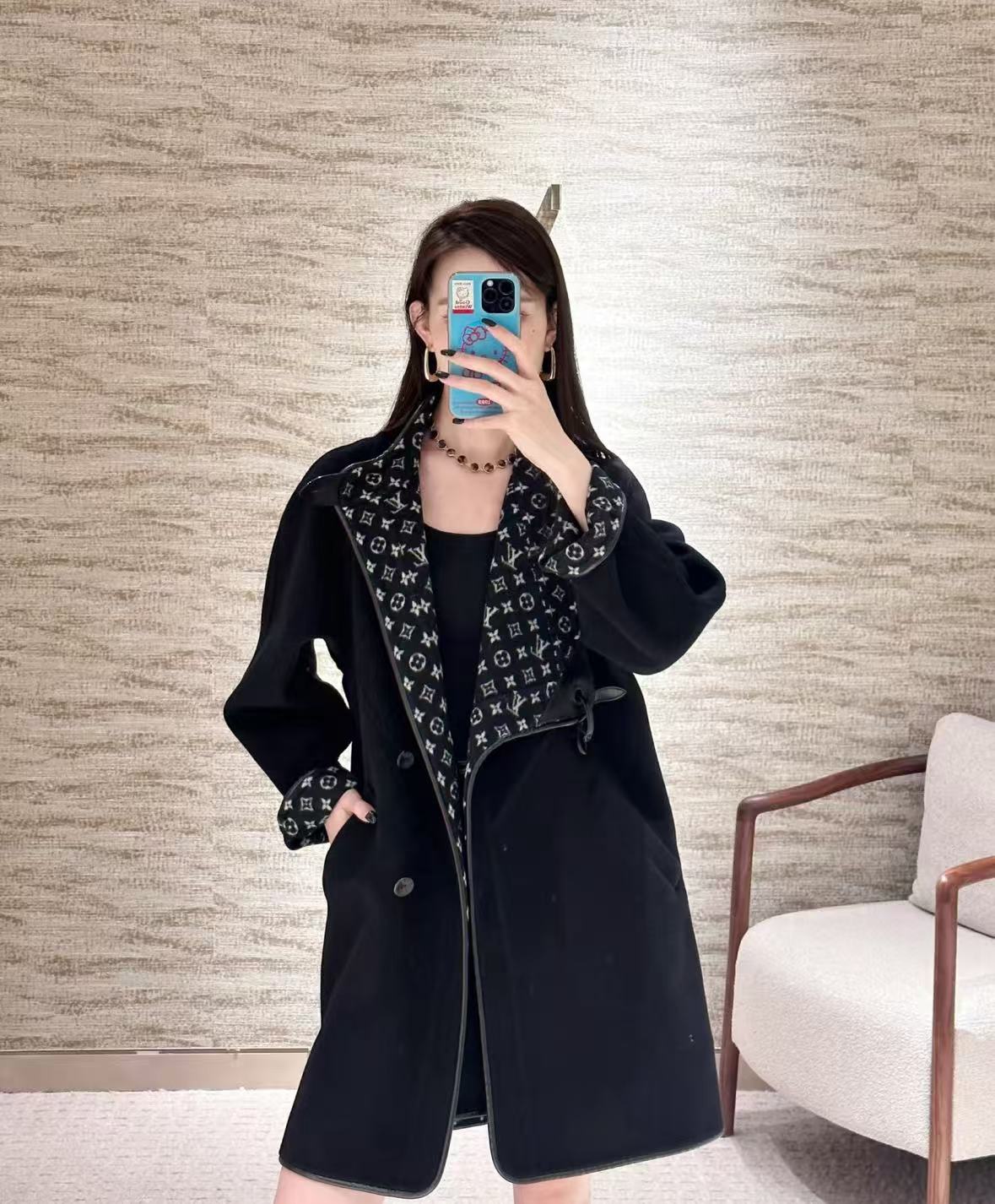一面是超級有氣場的純黑羊毛呢,低調又殺氣十足,翻過來直接變滿版經典老花字母印花,復古潮感瞬間拉滿,出街回頭率直接100%!