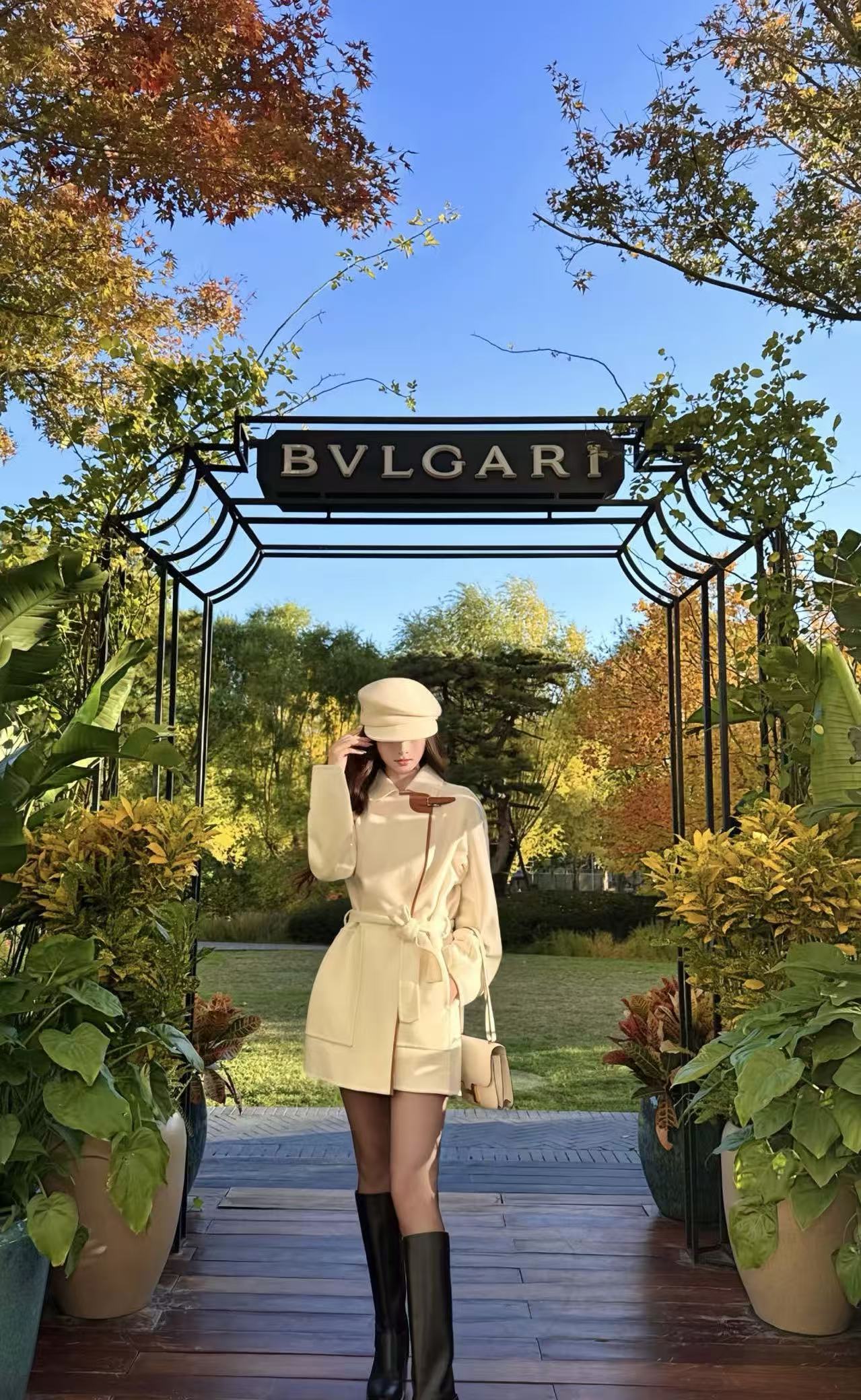 搭配定制小羊皮扣,經過CAD精準制圖與德國進口設備剪裁,觸感輕盈卻有骨感,穿上身完全不臃腫。