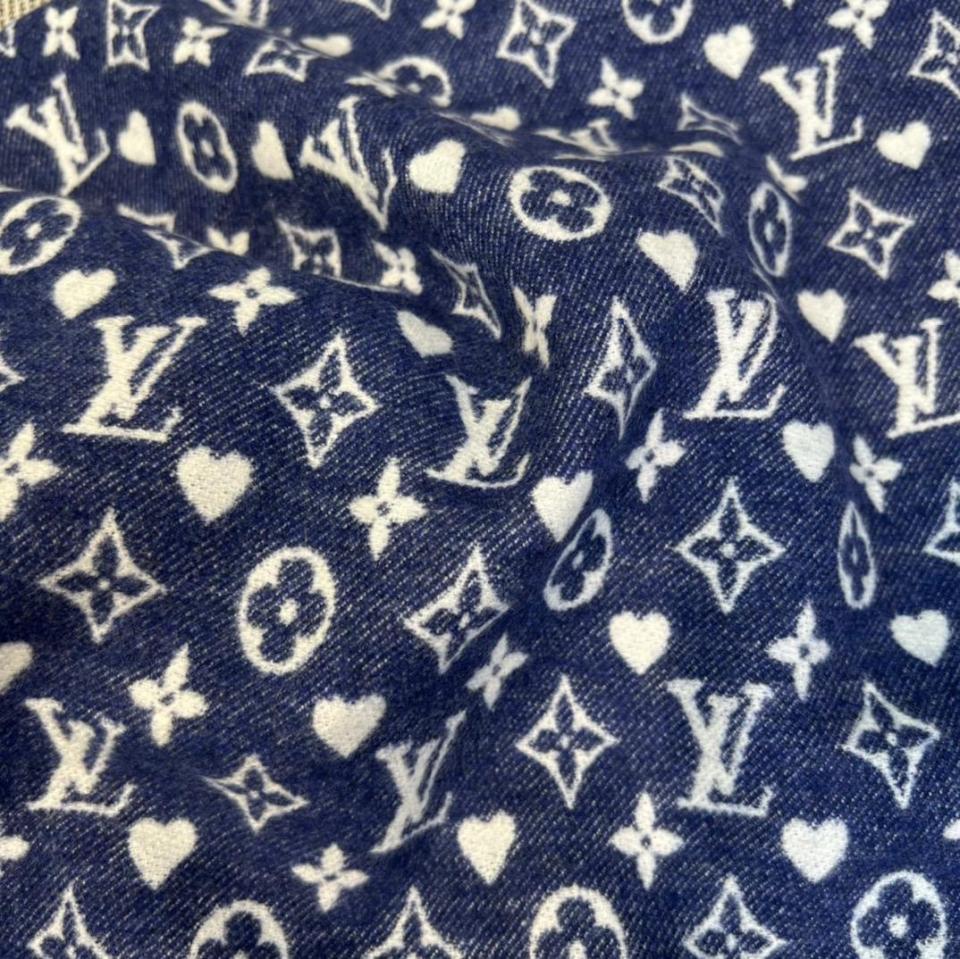L家滿版老花愛心圖案圍巾(牛仔藍)