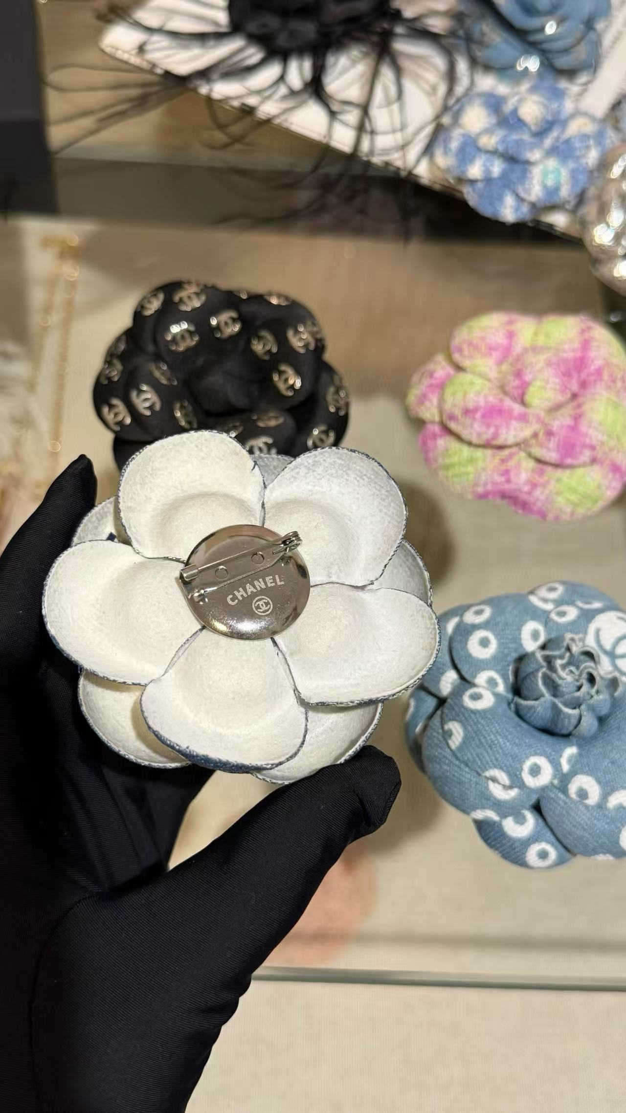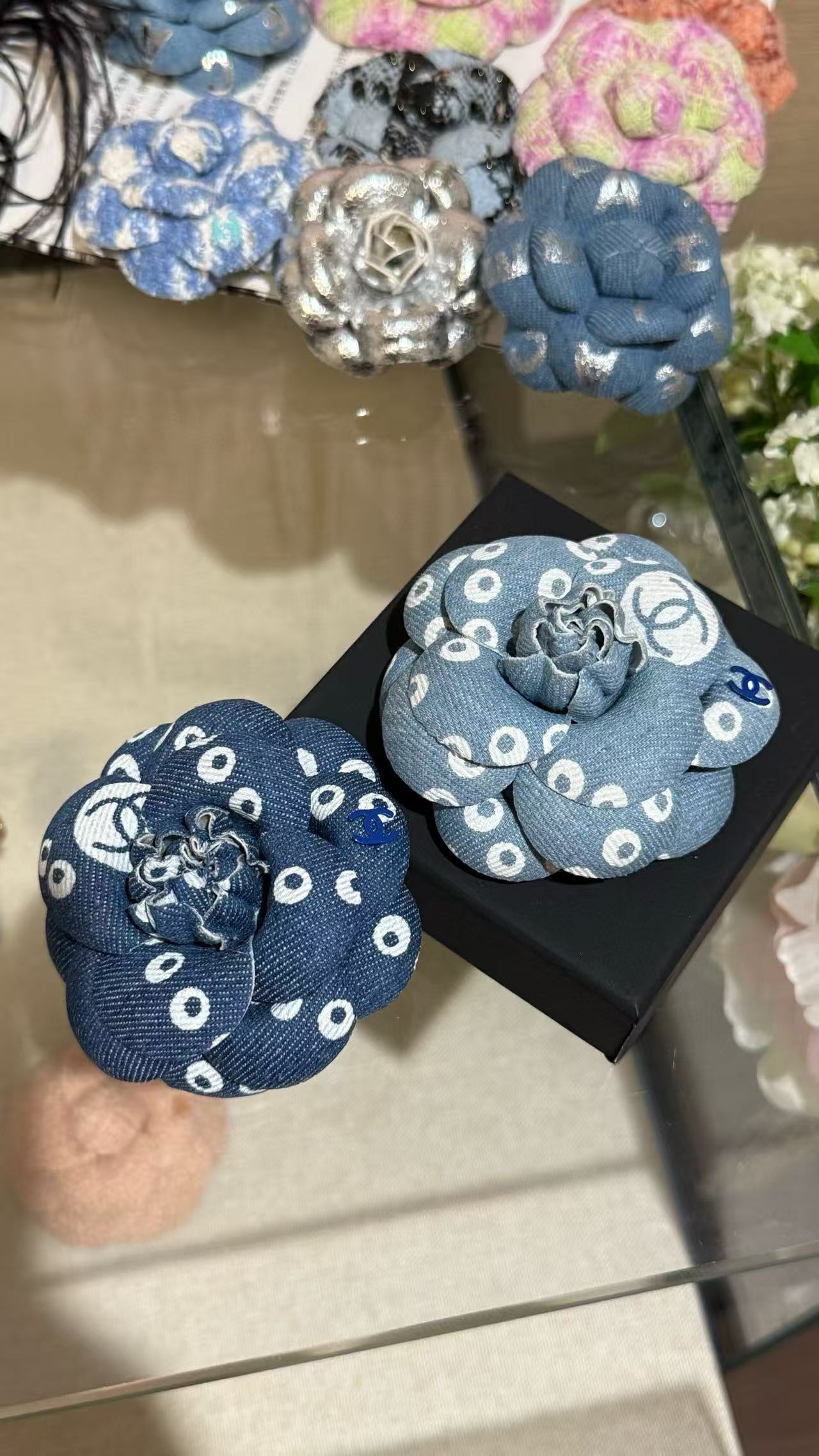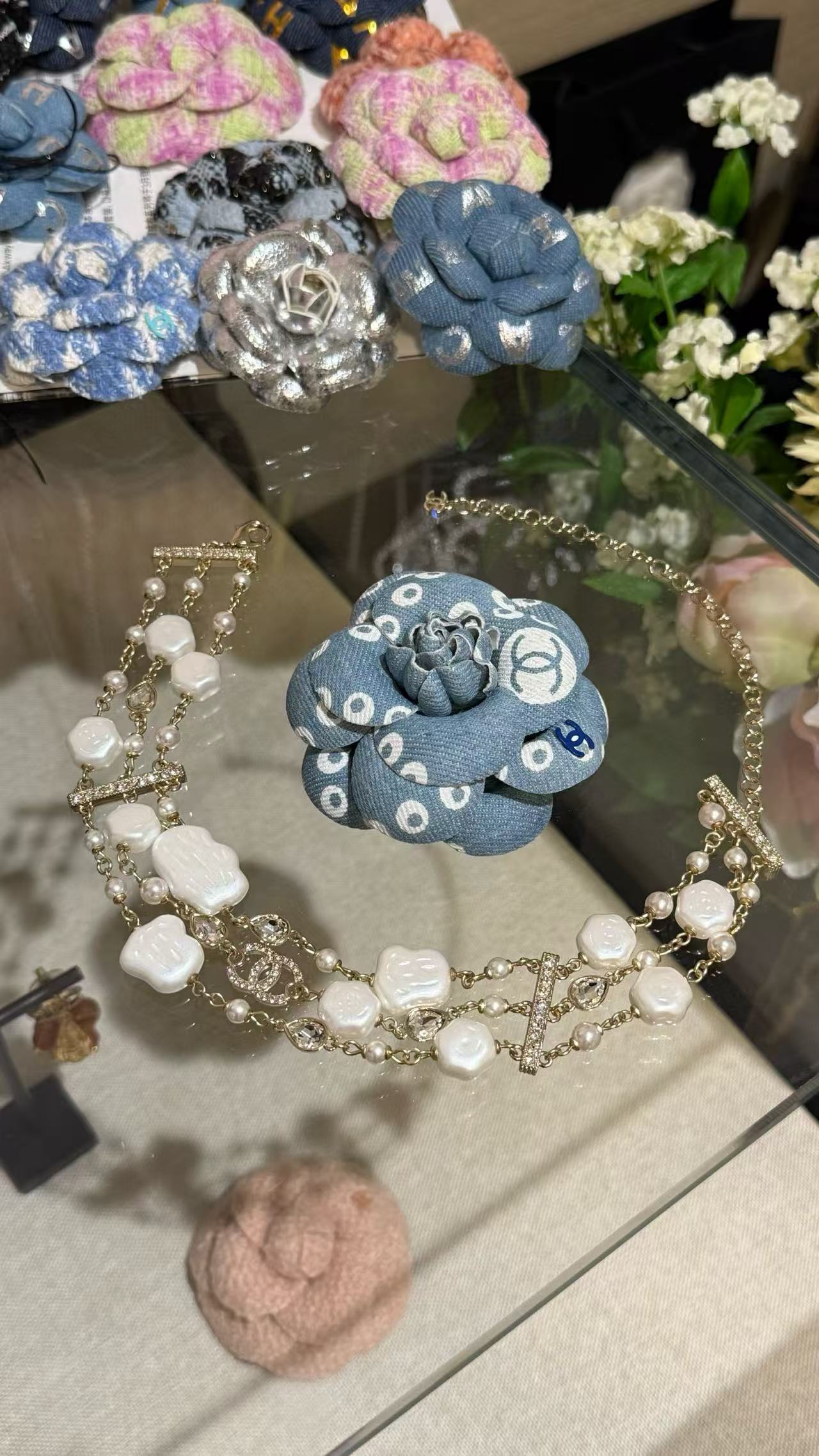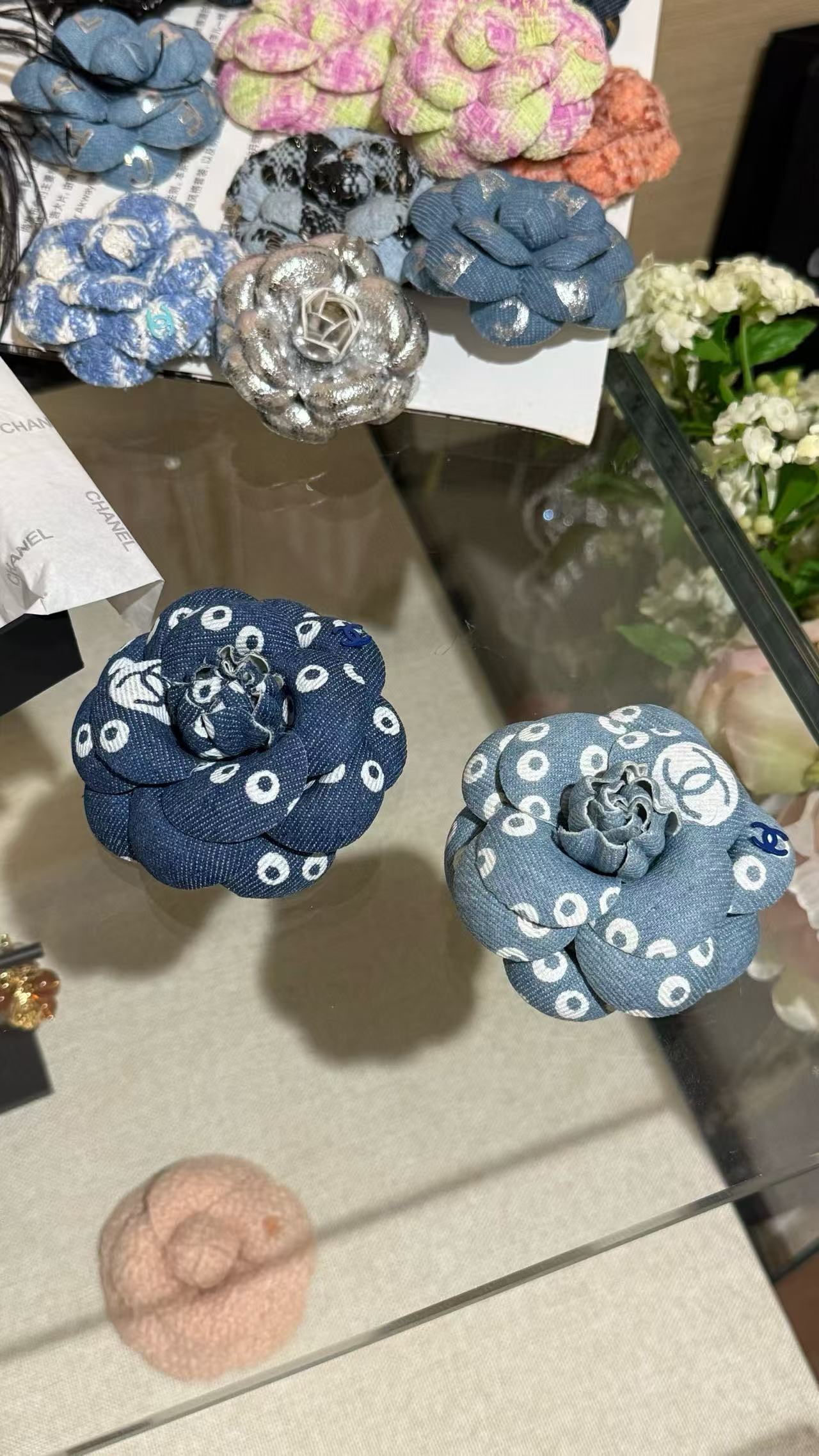 2025早秋  C家 丹寧牛仔珍珠山茶花胸針