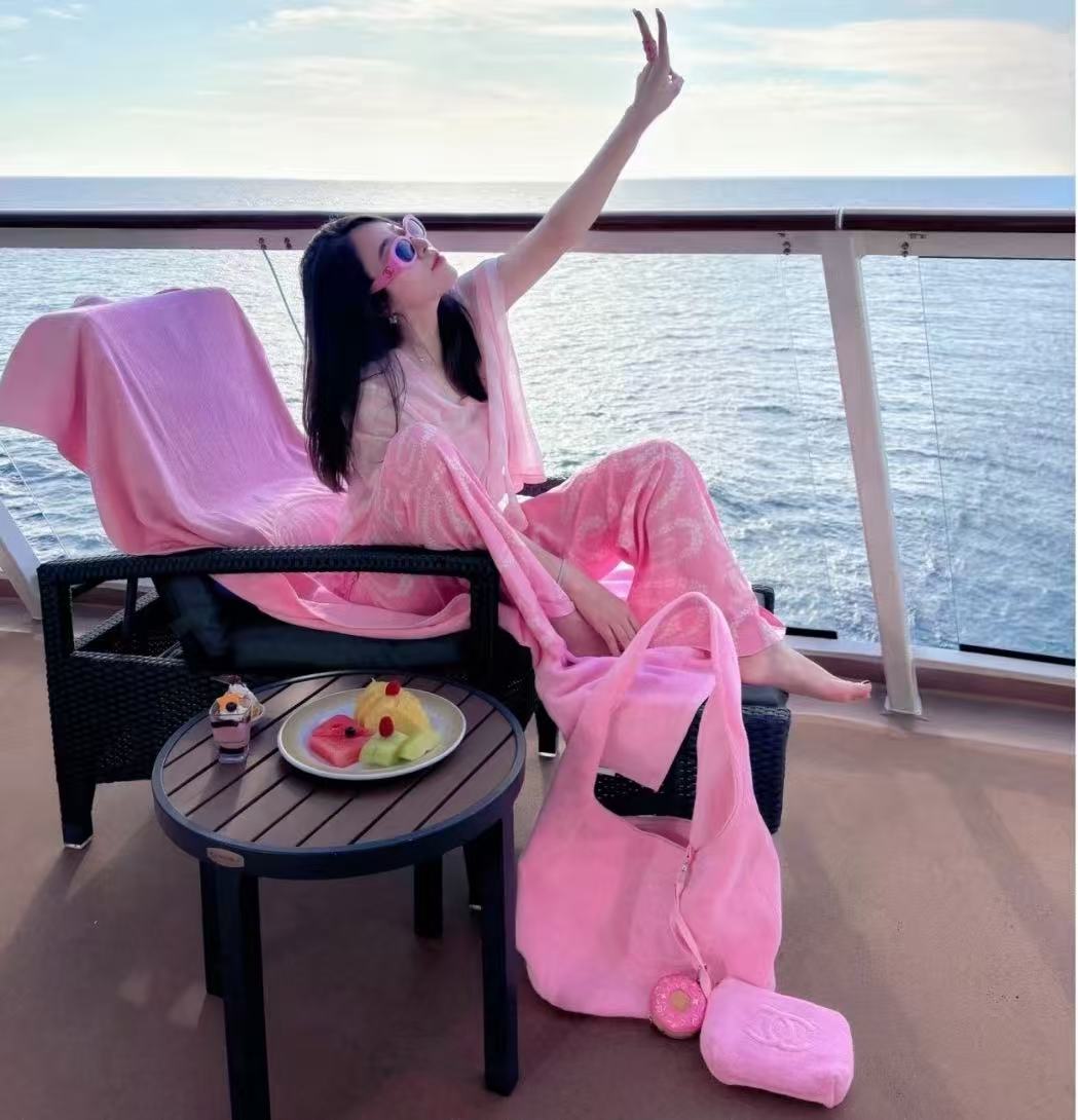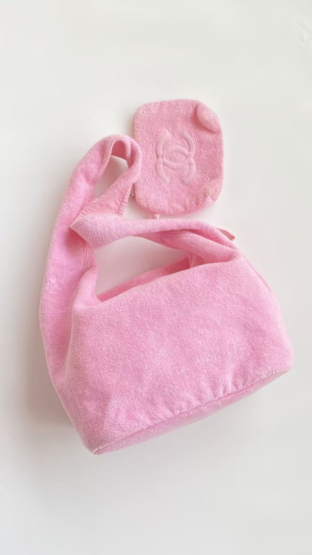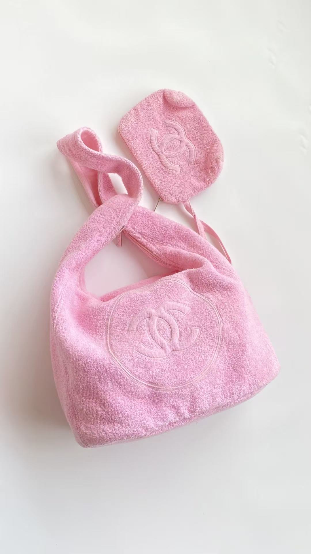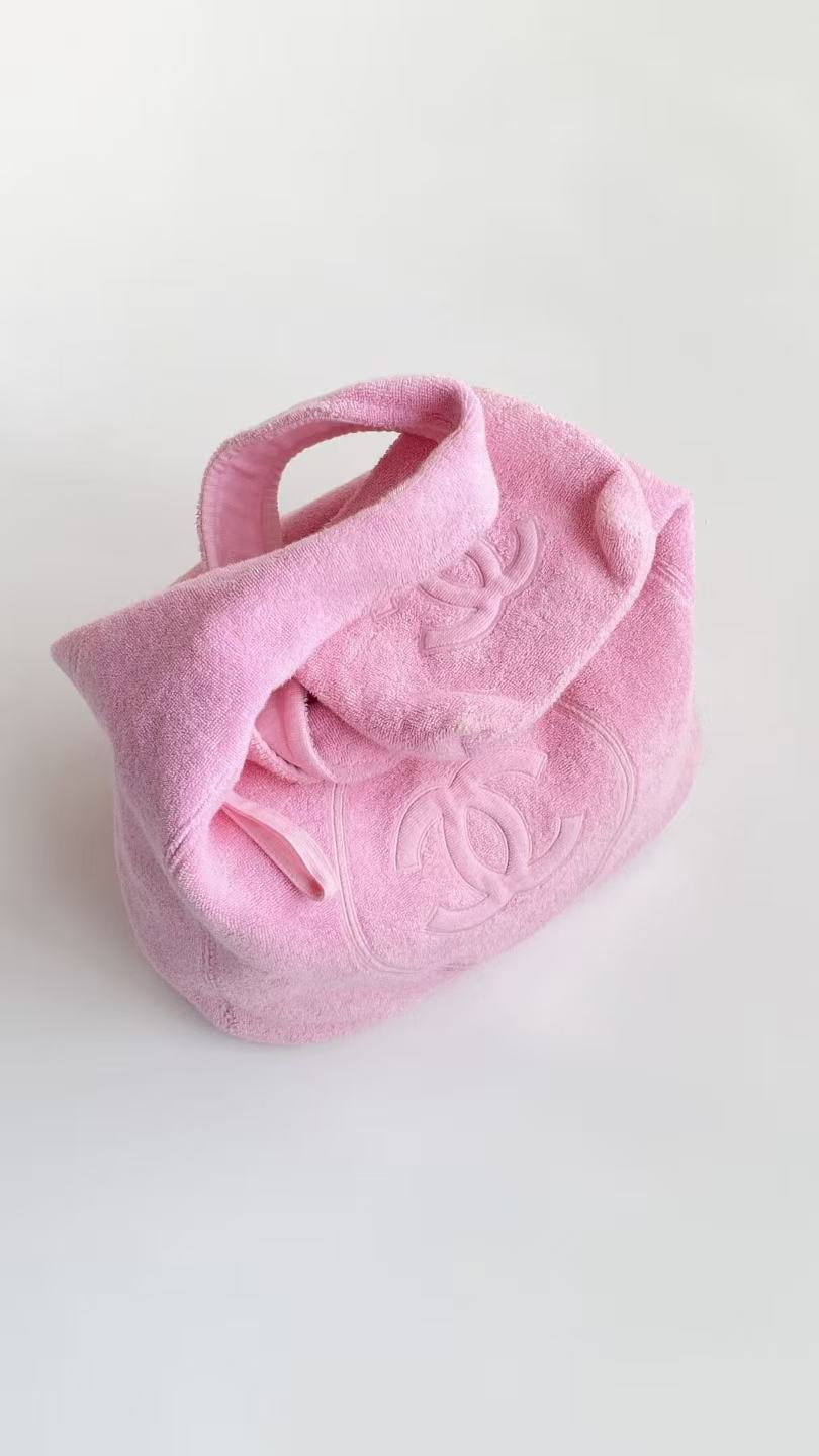 設計的核心在於那抹充滿少女感的柔嫩粉色,搭配溫潤的純棉織紋,在陽光下展現出極致的視覺層次,讓這款沙灘包不僅是度假配件,更是早春時節最具張力的時尚單品。