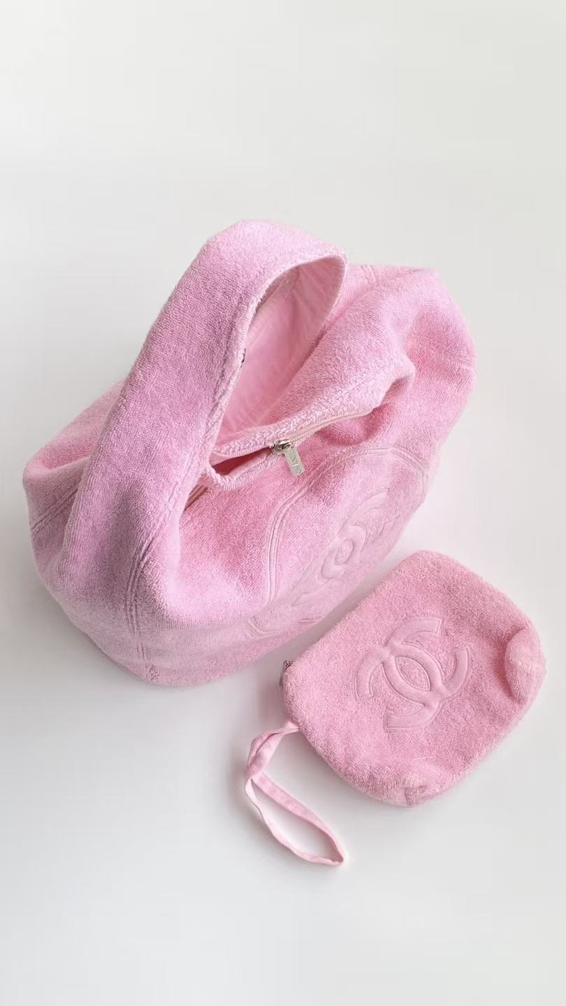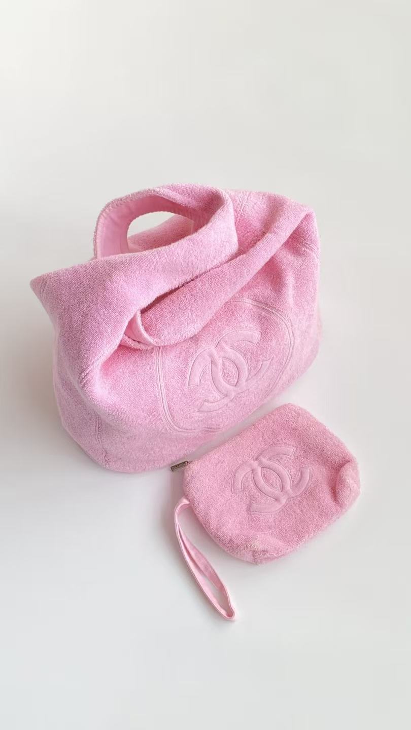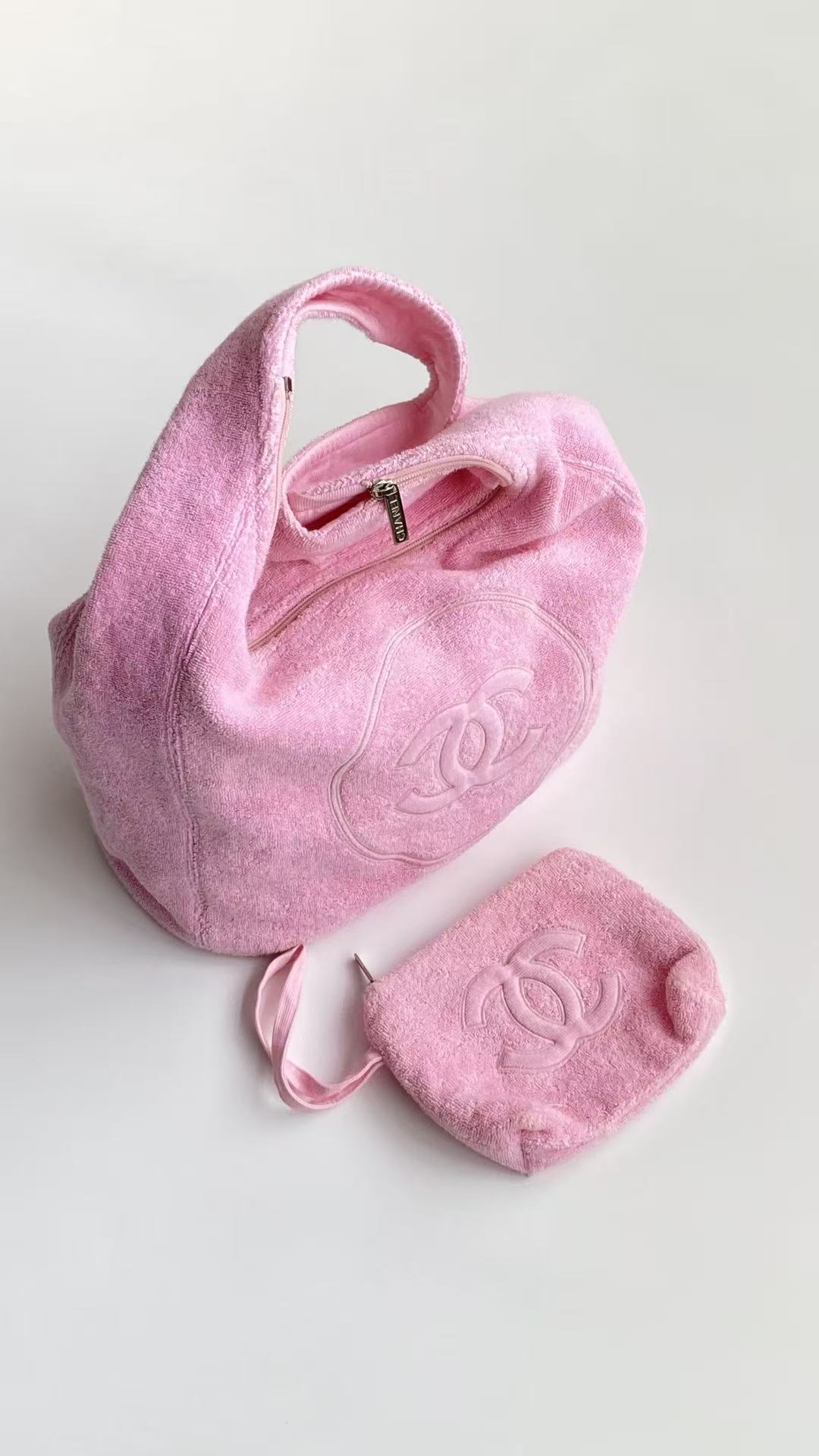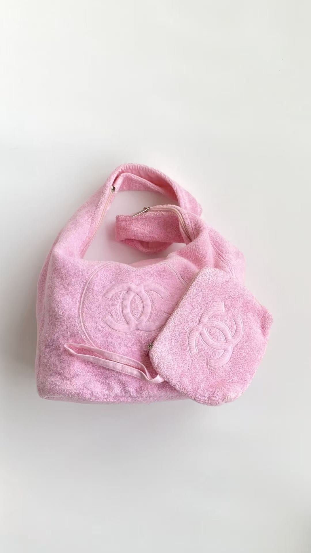 設計的核心在於那抹充滿少女感的柔嫩粉色,搭配溫潤的純棉織紋,在陽光下展現出極致的視覺層次,讓這款沙灘包不僅是度假配件,更是早春時節最具張力的時尚單品。