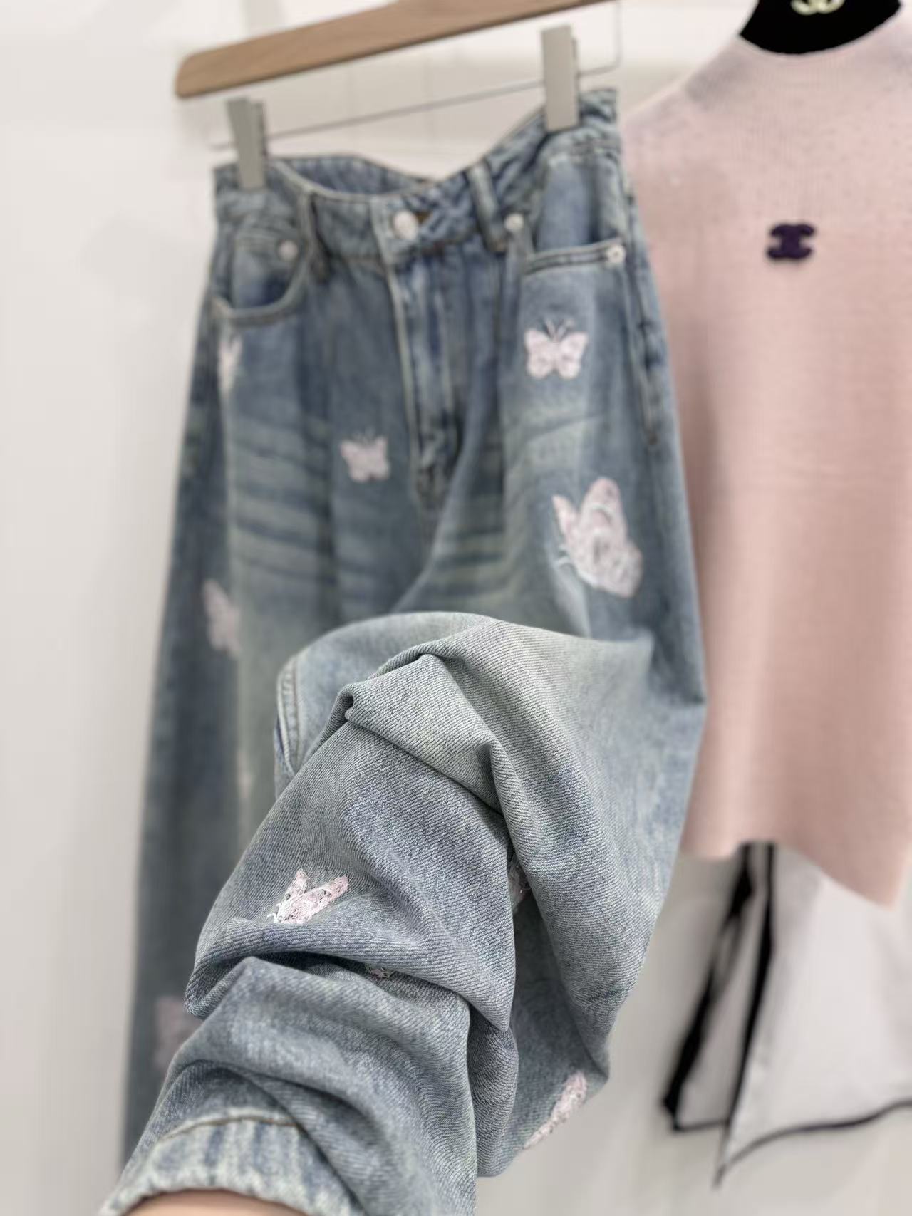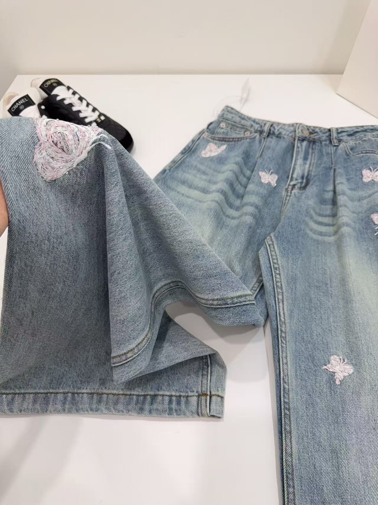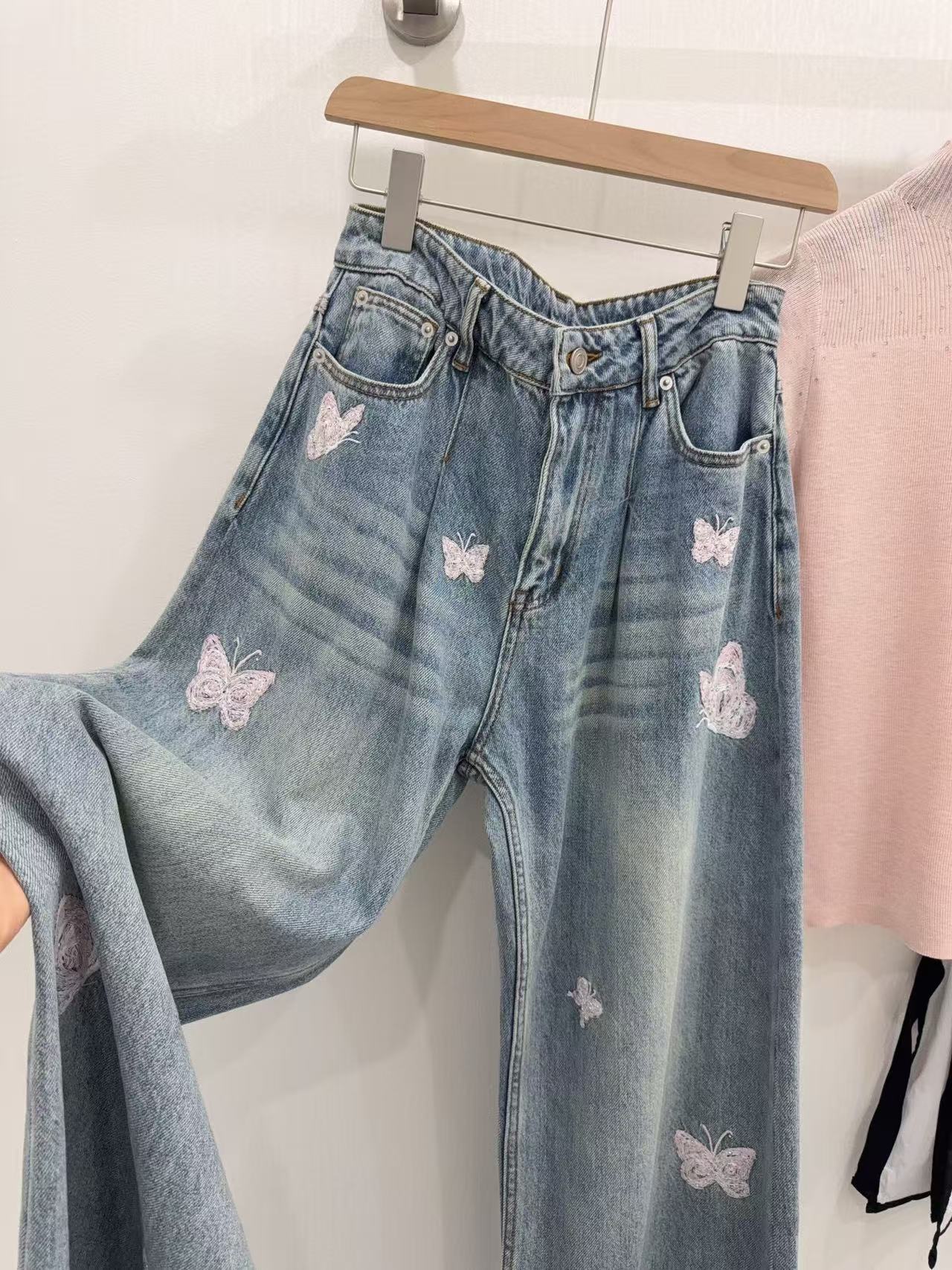 2026早春新品 Ann家 蝴蝶釘珠刺繡彎刀牛仔褲