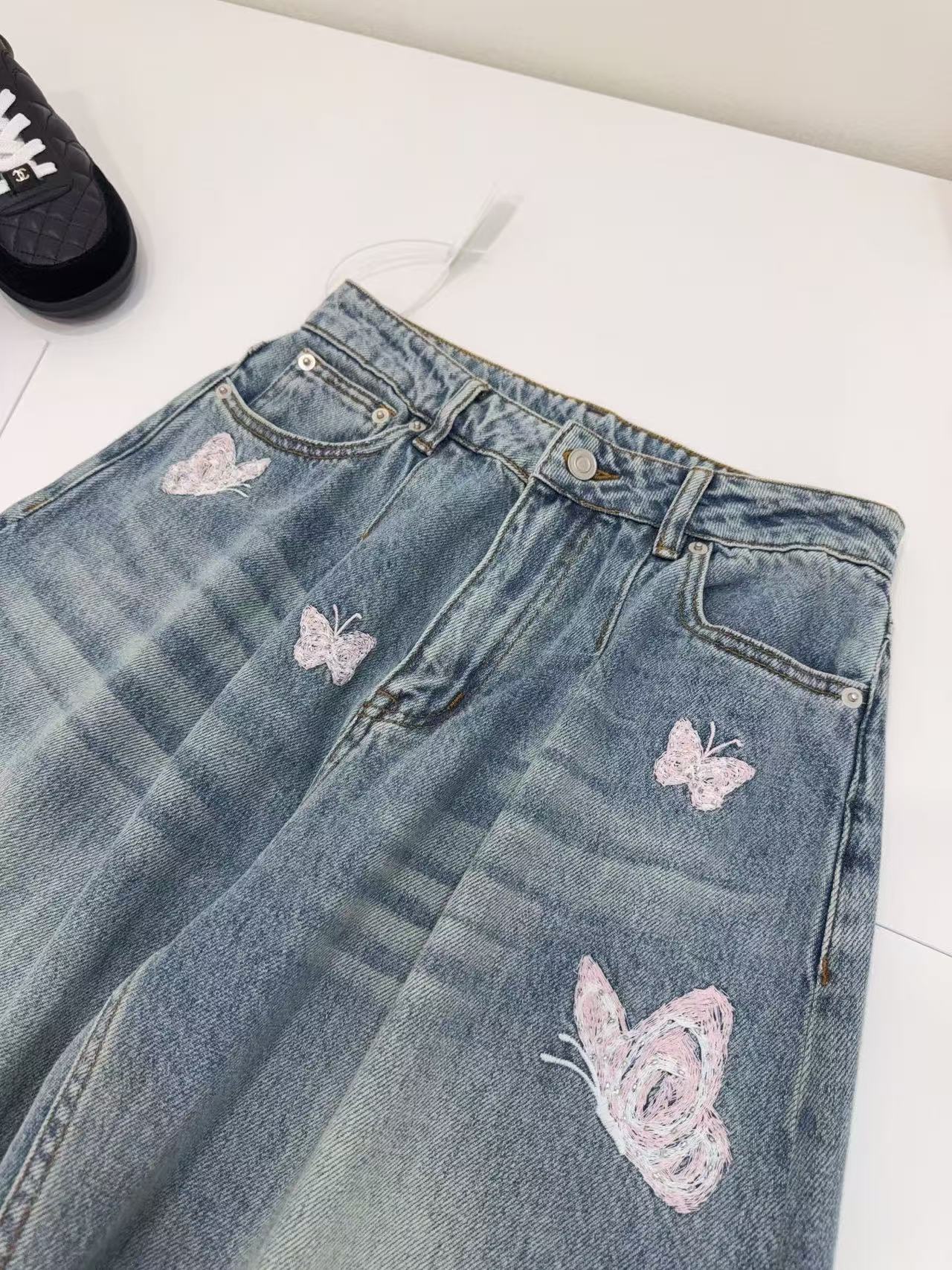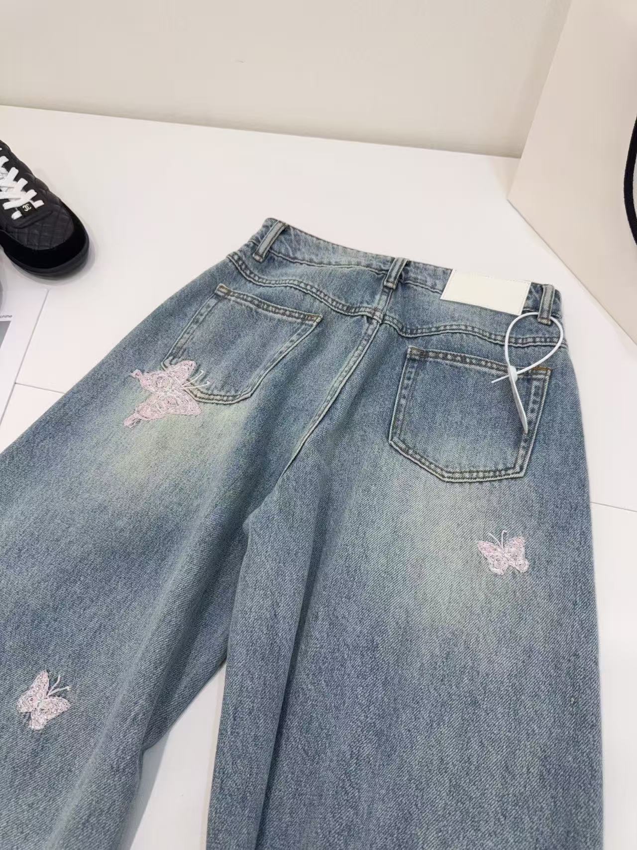 AN 系列:定義當代丹寧美學!解析「蝴蝶釘珠刺繡」彎刀闊腿褲的修飾神力