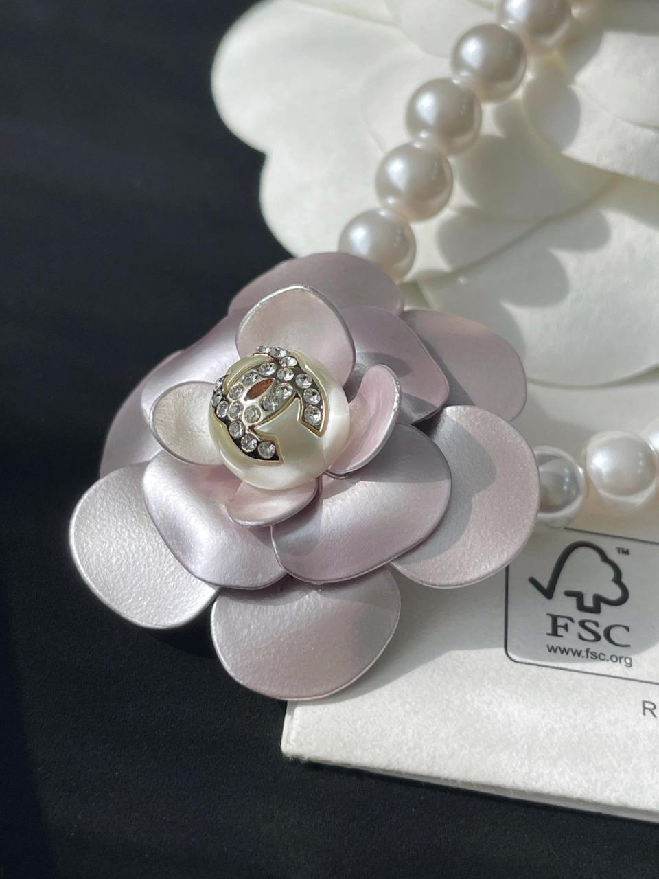 經典山茶花+雙C+珍珠,特別是上邊的細節,花朵的形狀,再到花瓣的顏色都非常美!