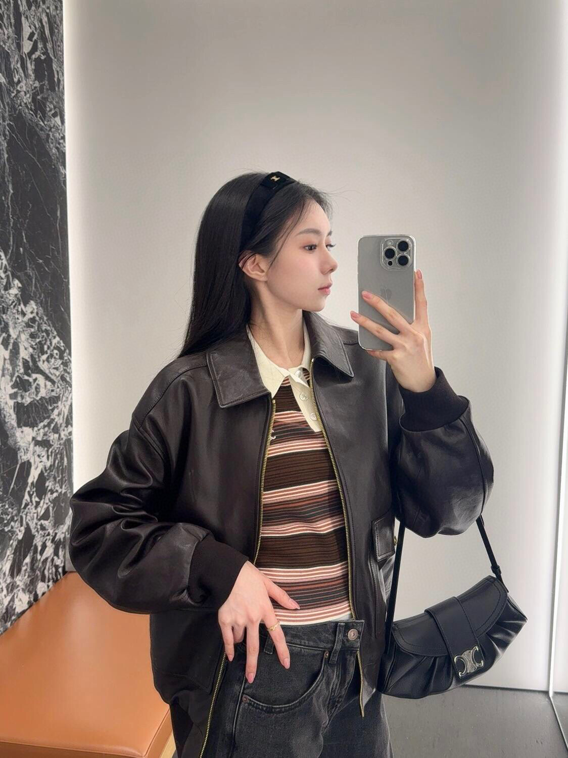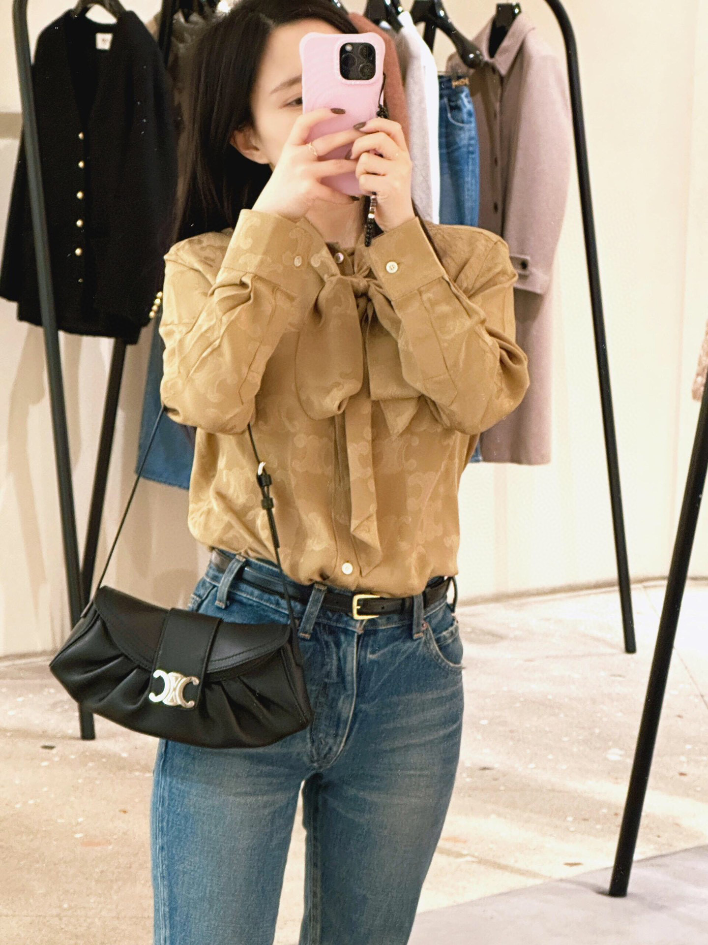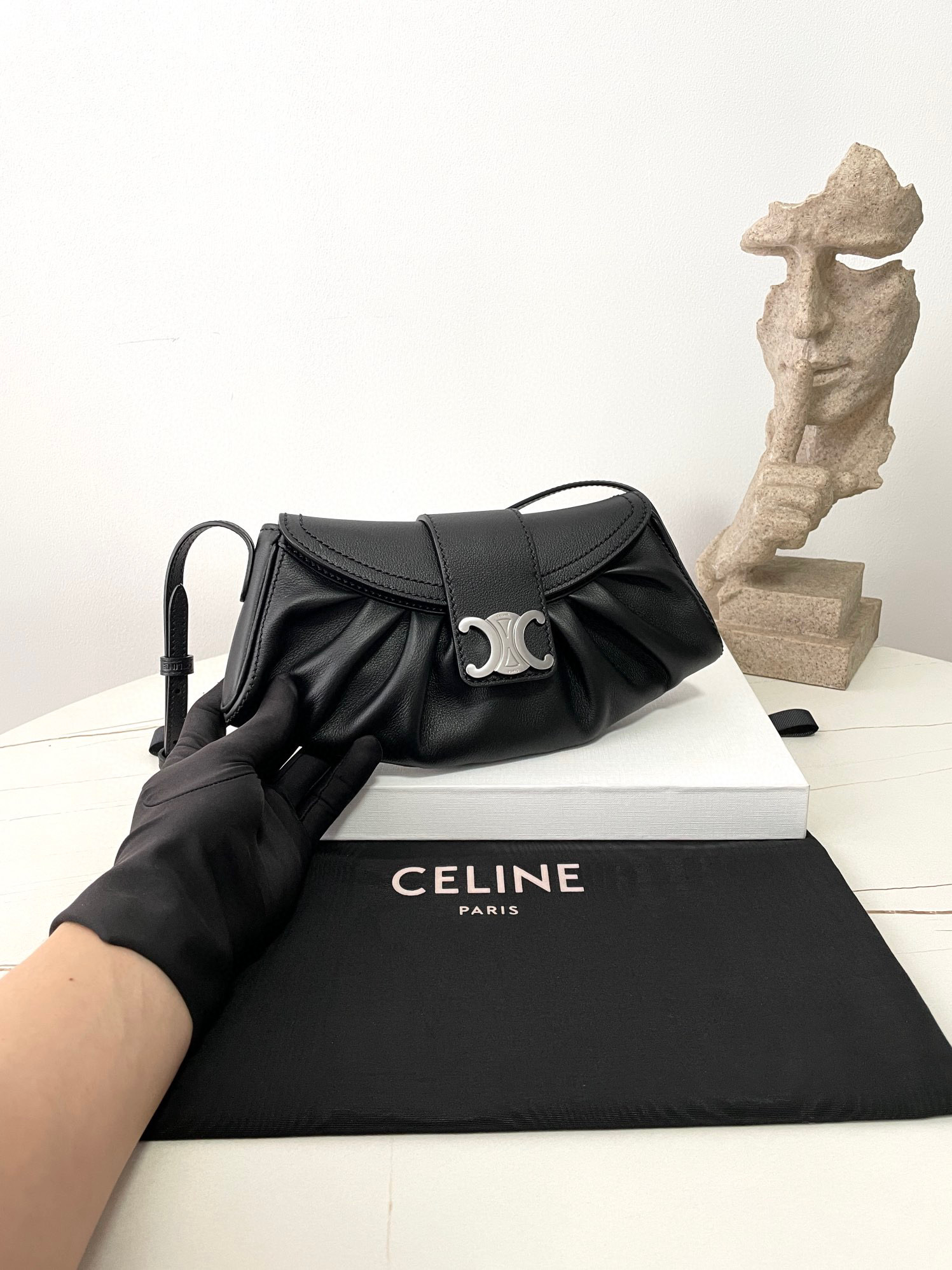 尺寸剛剛好,出門逛街或上班帶都很方便,完全不佔空間。軟糯的粒面牛皮材質,摸起來手感超好,而且包包的線條走得非常流暢自然,將復古和高級感完美結合。