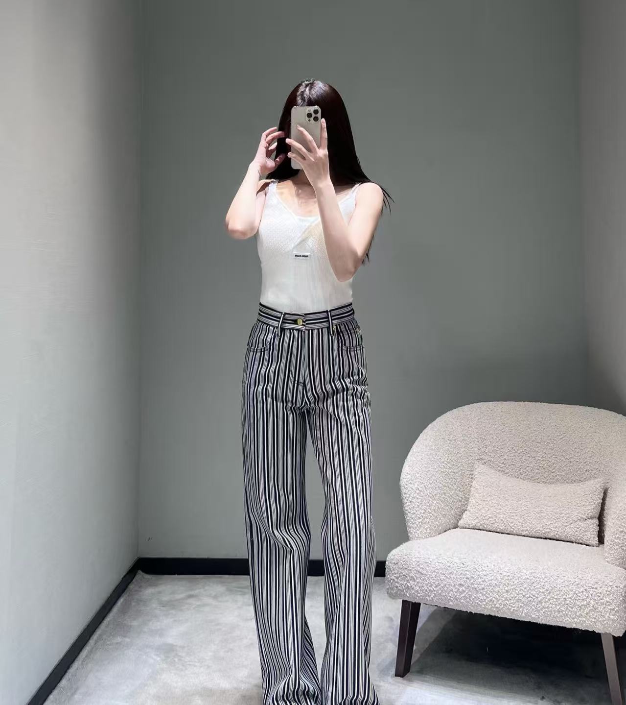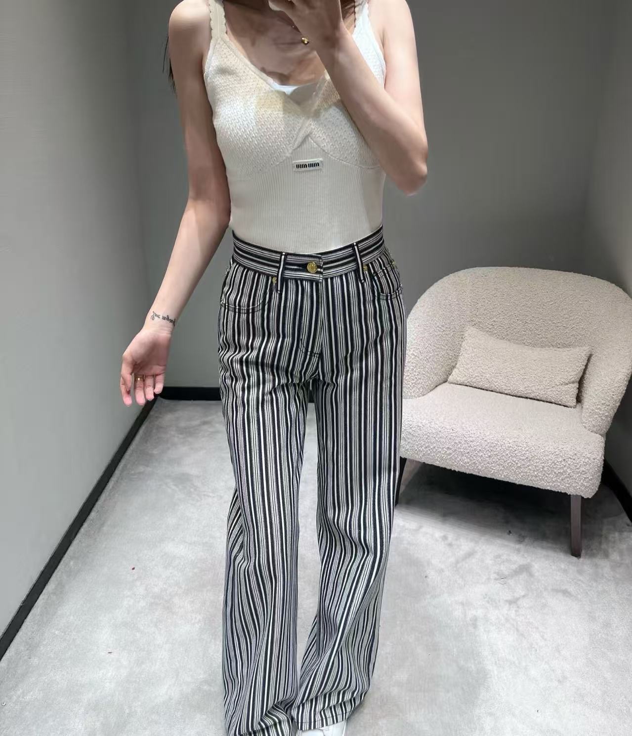 早春重磅特惠福利-CE家 黑白條紋闊腿褲