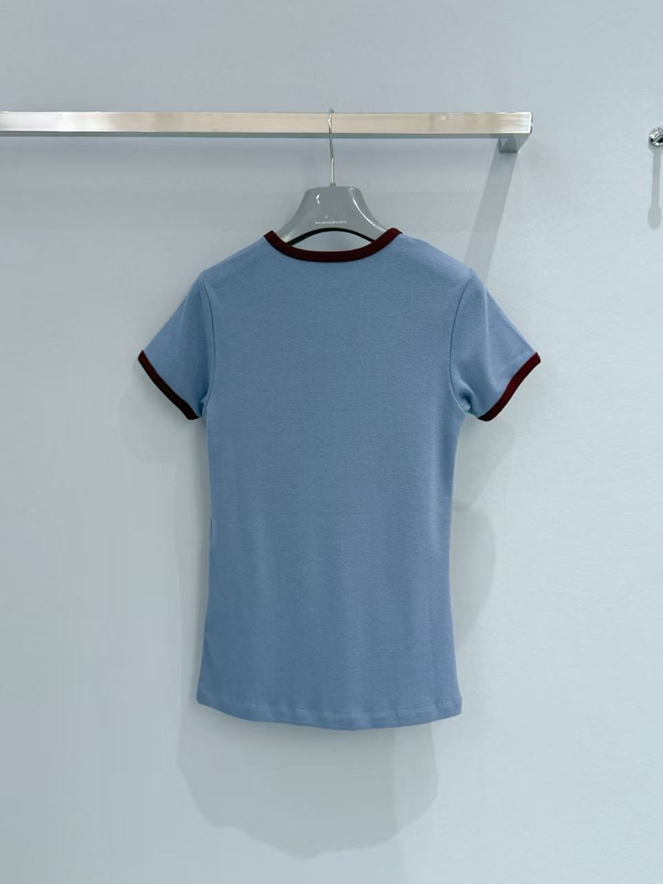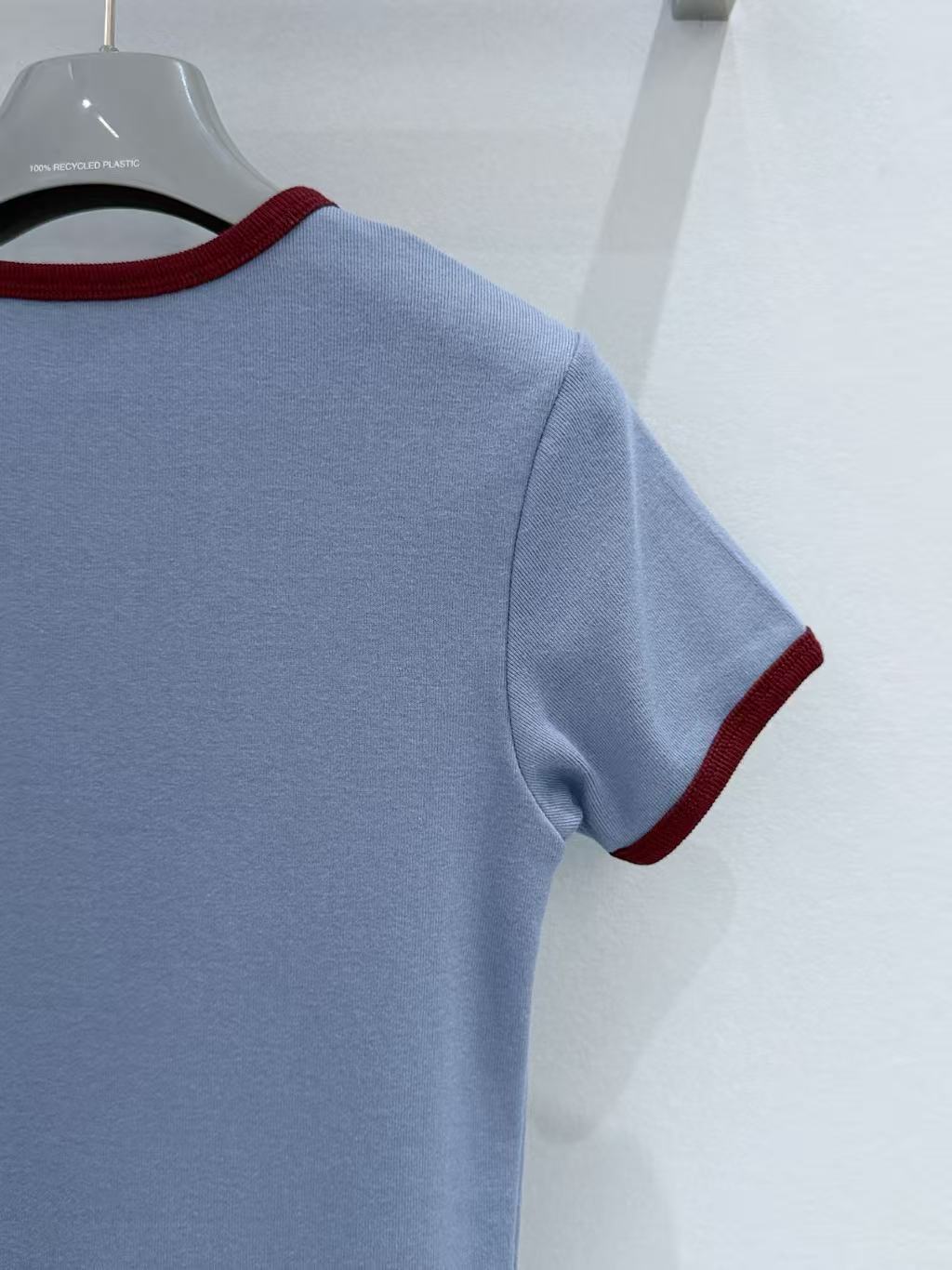 細緻的針織肌理結合修身剪裁,能穿出最迷人的「薄脆感」。左胸前點綴了標誌性的金屬倒三角徽標,在溫柔的針織基底上注入了一份硬朗的高級感。