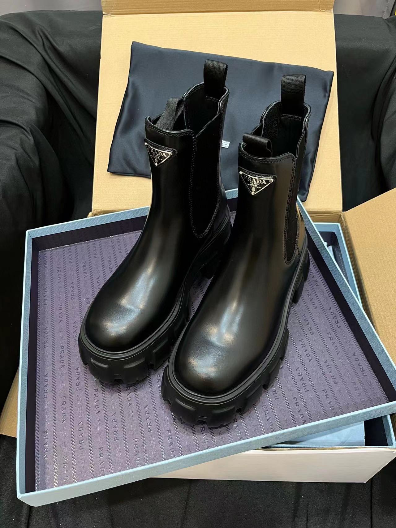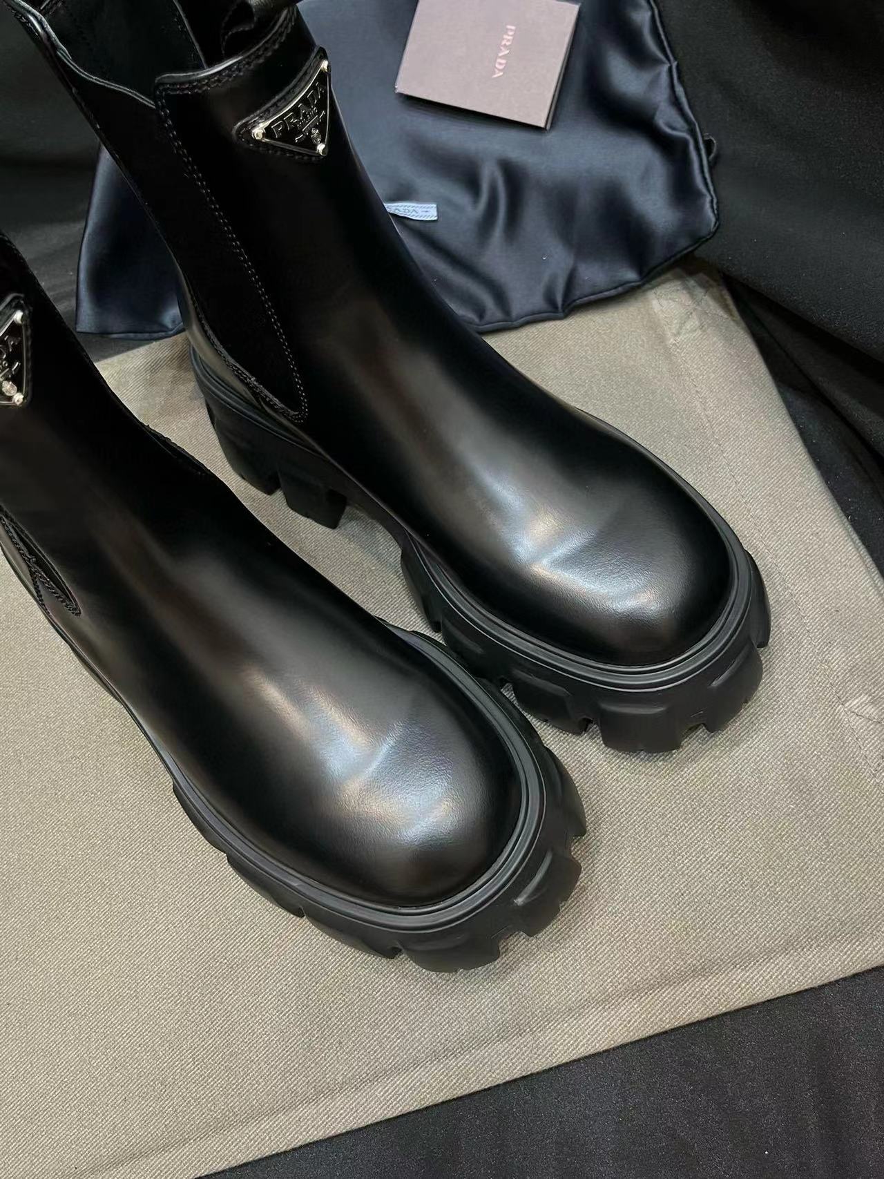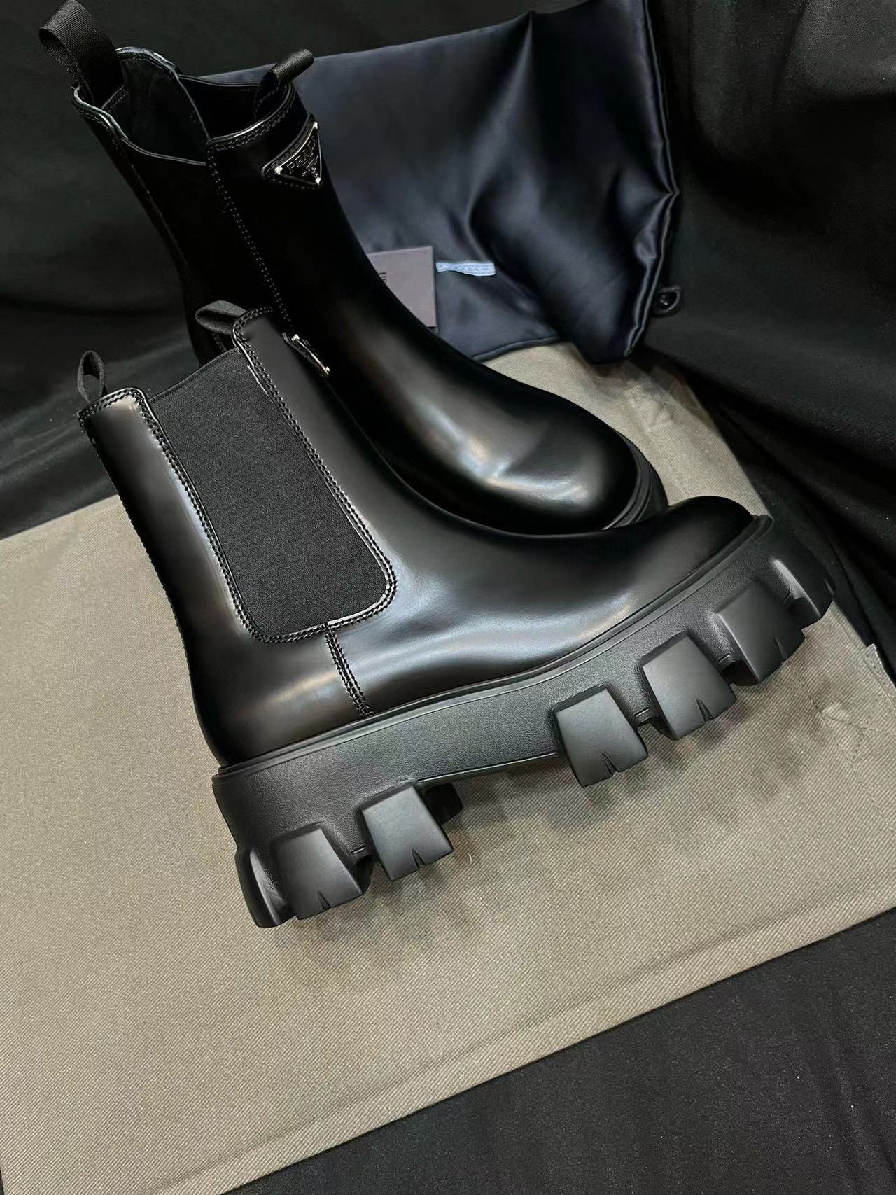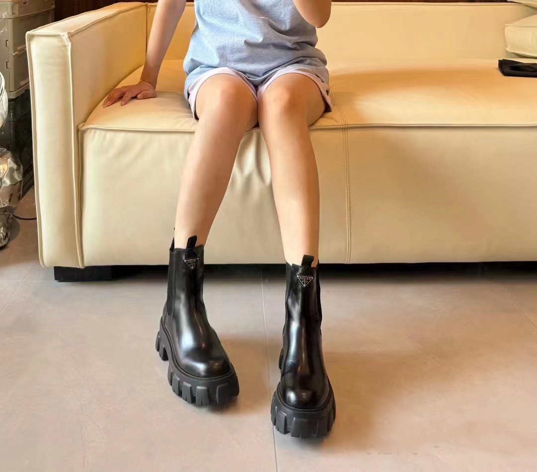 2024早秋經典款 P家三角標logo輪胎底靴子 拉長腿型
