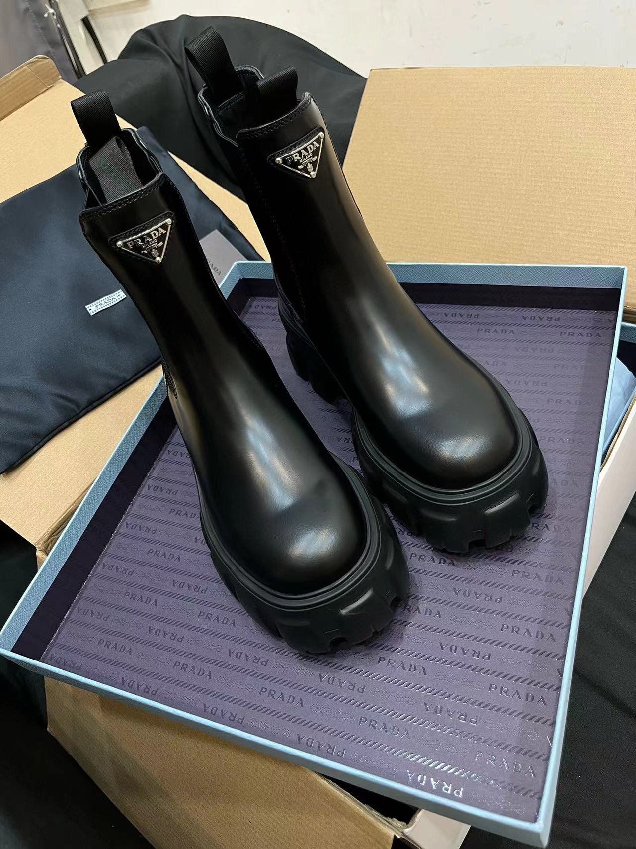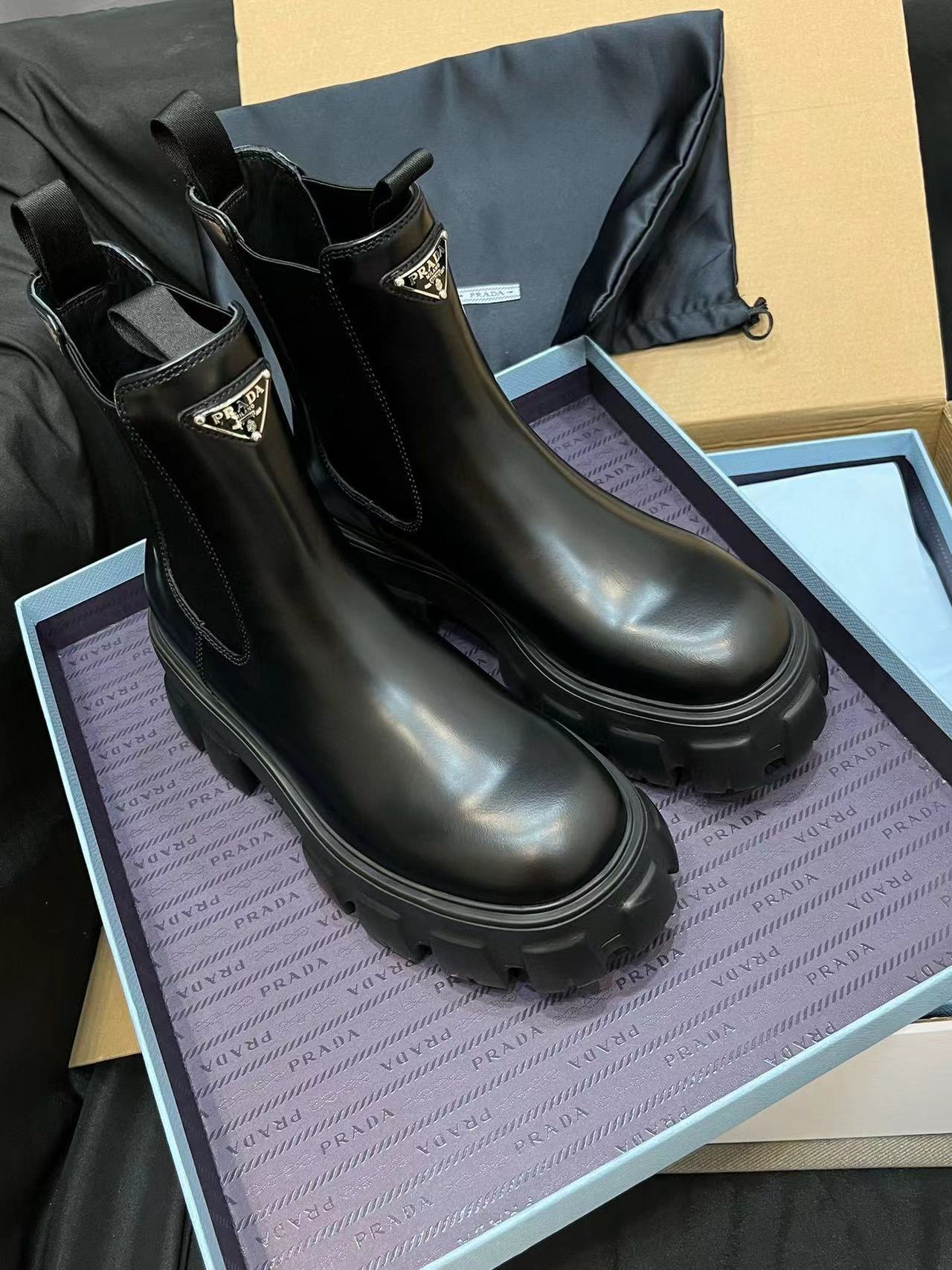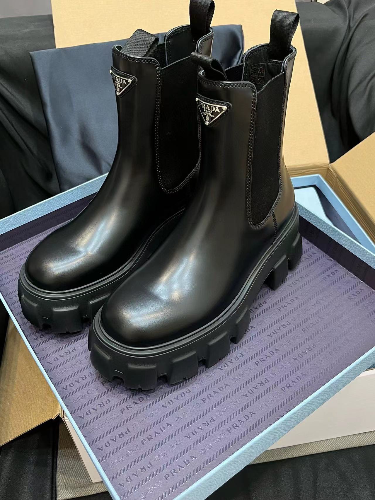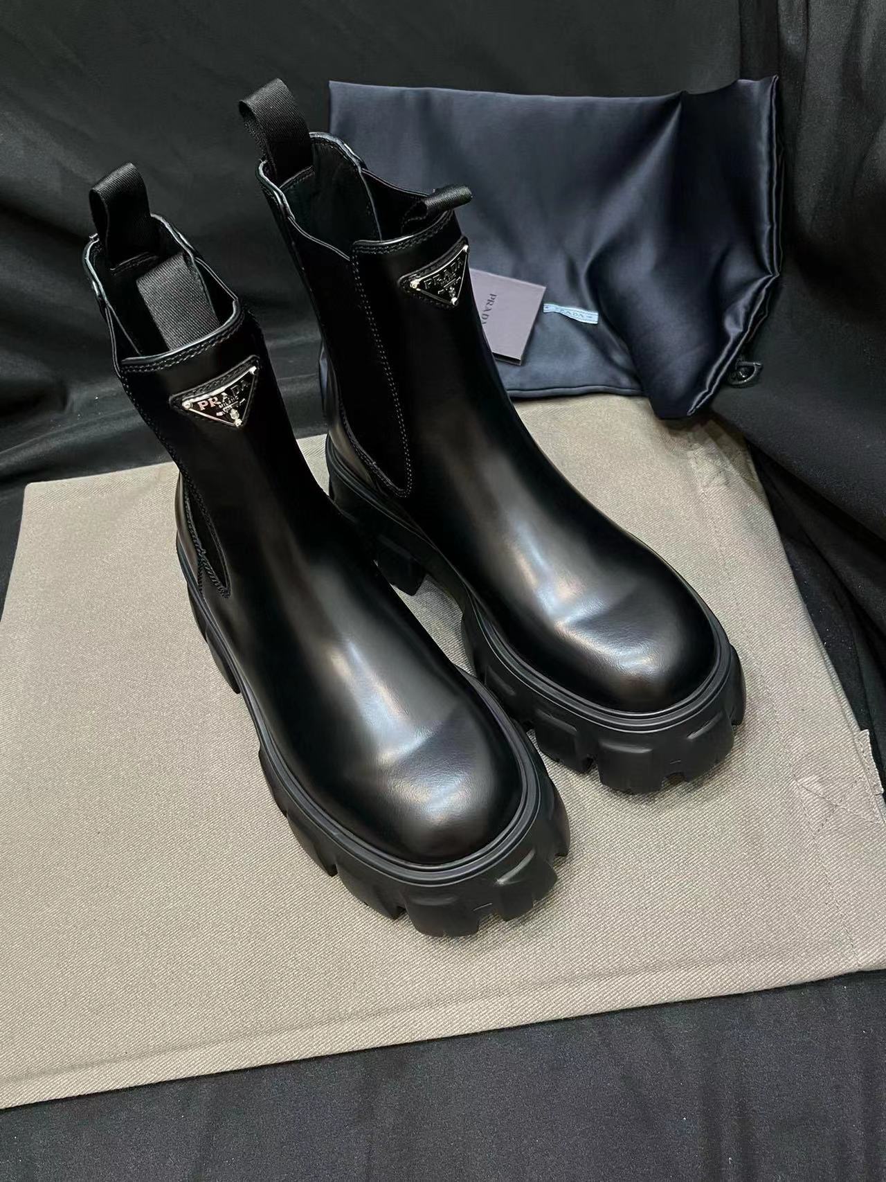 2024早秋經典款 P家三角標logo輪胎底靴子 拉長腿型