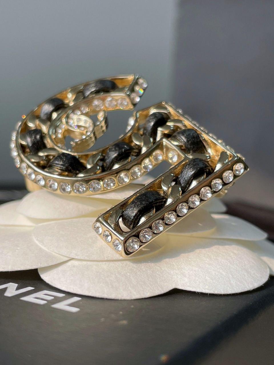 經典的5號元素!工藝非常的細膩,兩邊五金是鏈條純手工穿皮,個性時尚又高級!邊緣圍著一圈施華洛鑽的設計,整體造型讓人過目不忘!