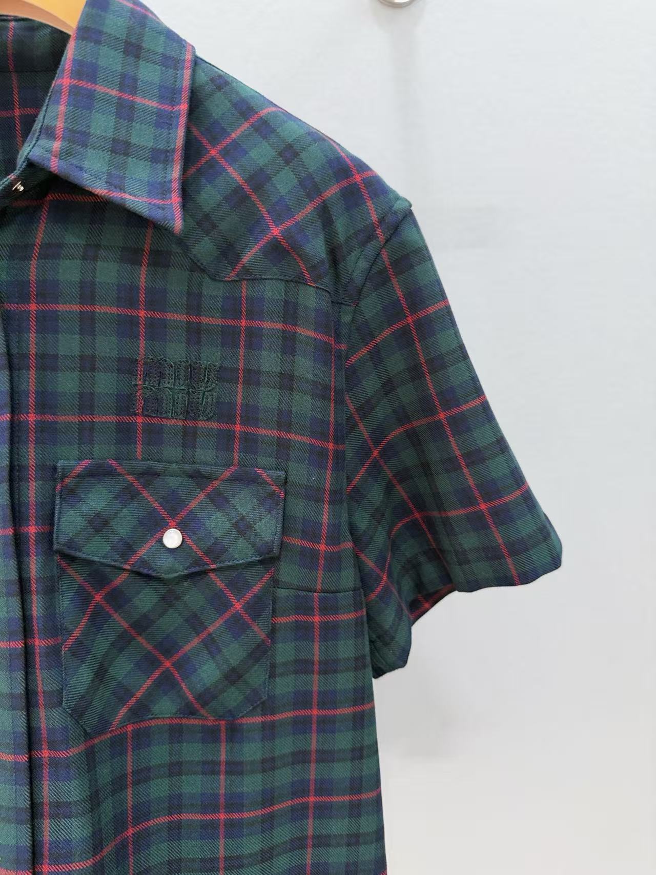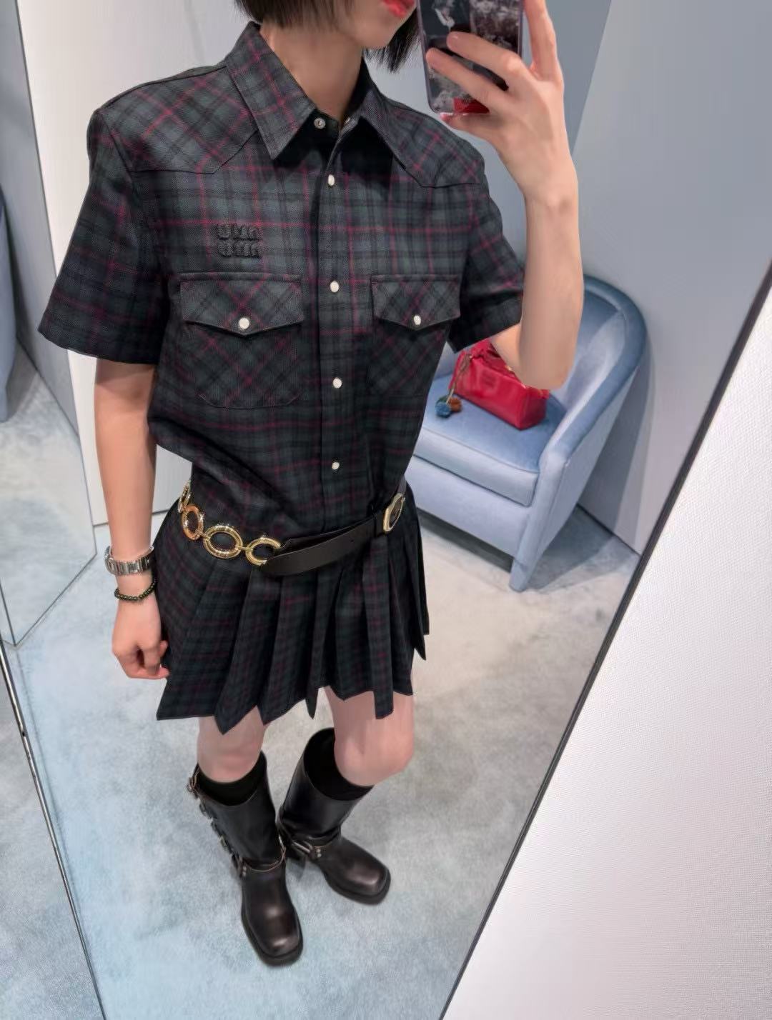 2025早秋 Miu家 徽標字母格紋襯衫百褶裙