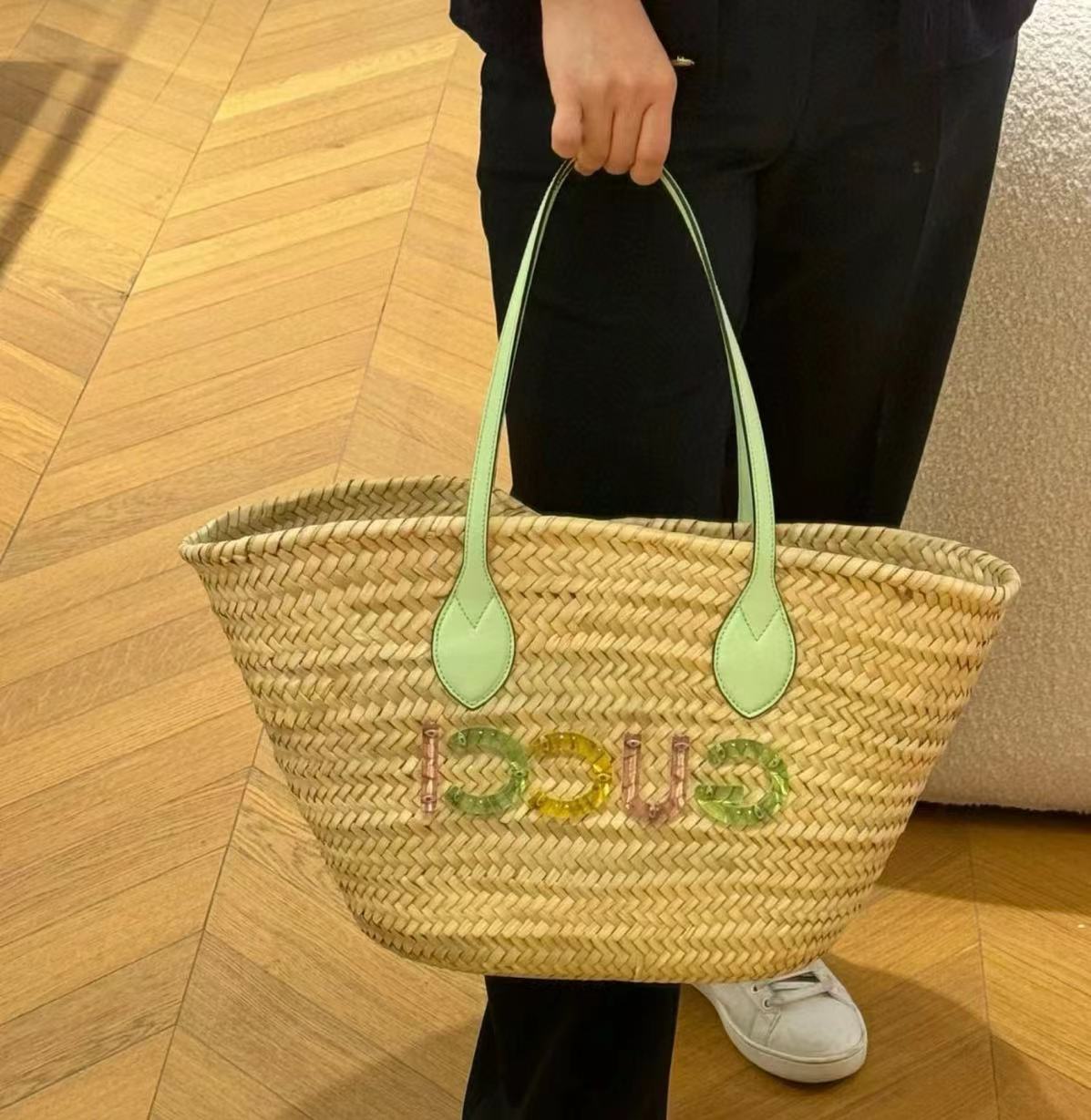 2024夏季限定新品 G家拉菲草編織包(大號) 時髦單品