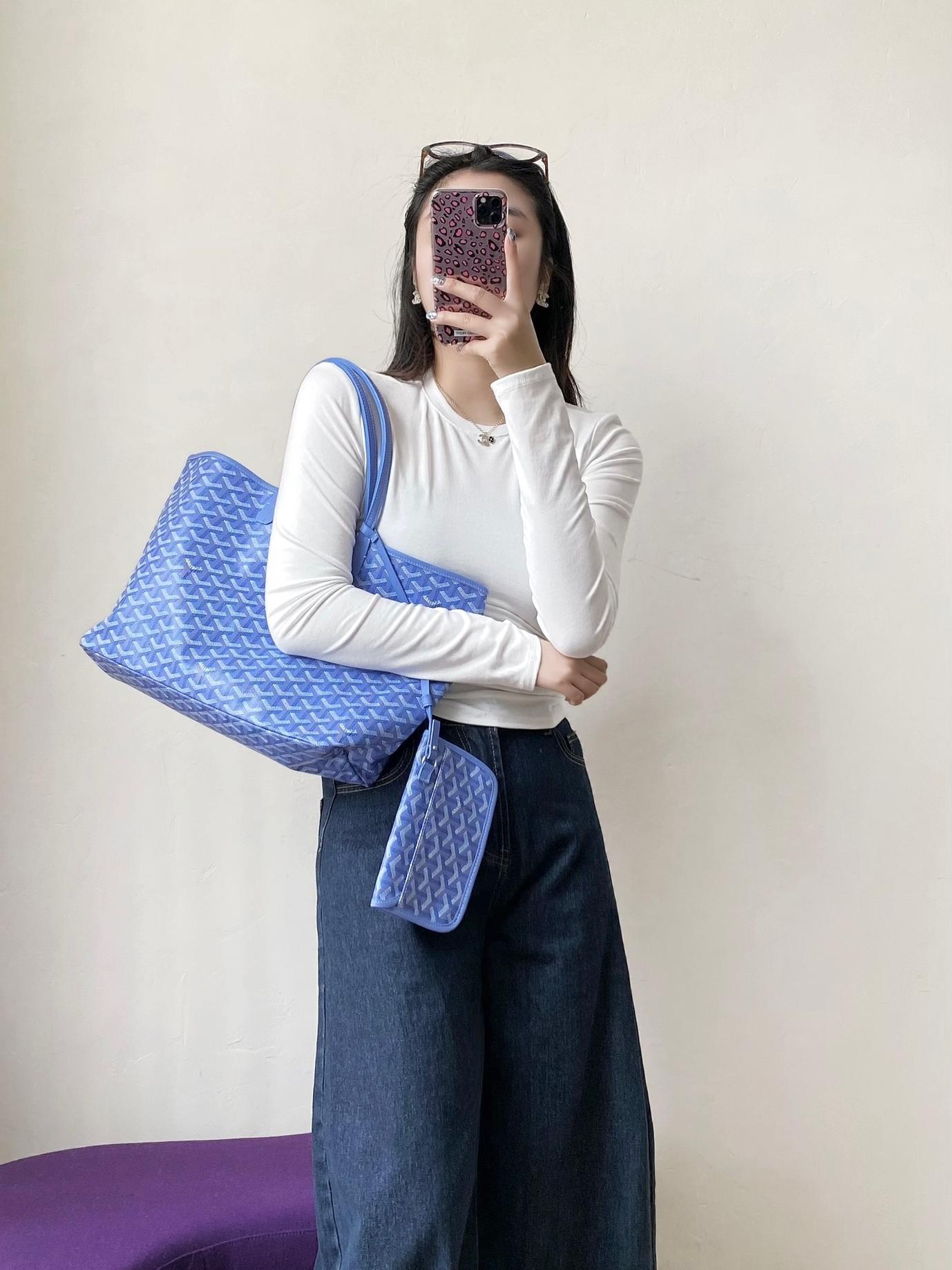 ・外層選用 Goyard 經典 PVC 塗層帆布,耐磨、輕盈、防潑水,日常通勤旅行都超實用。