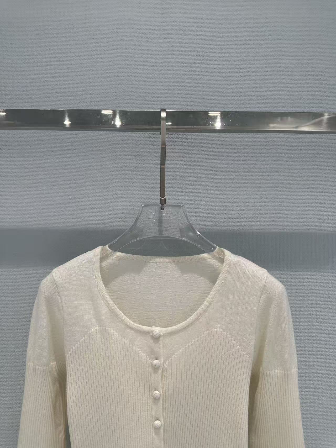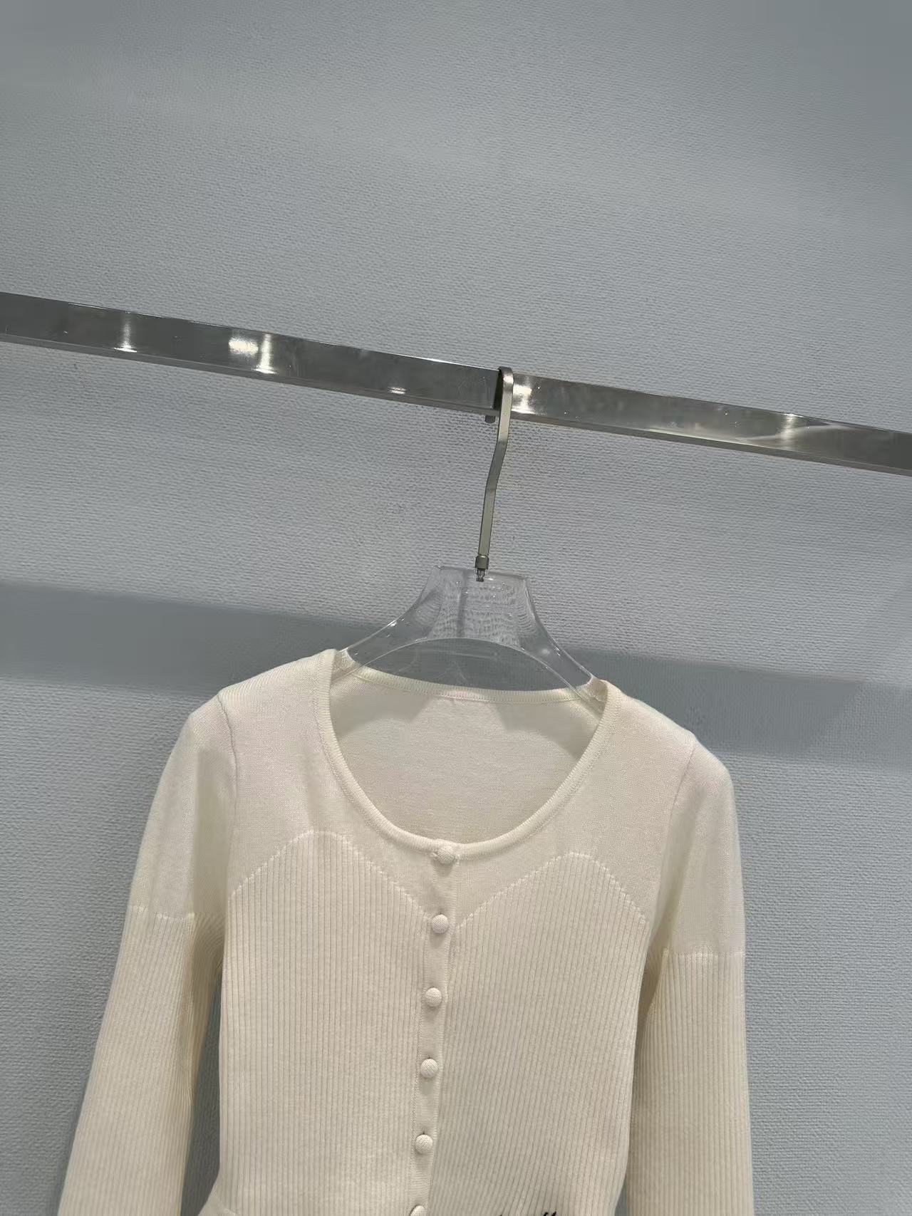 這次分享的 2026 早春系列針織衫,選用了極具知性美感的奶油白色調,平衡了品牌一貫的冷冽,轉而呈現出一種優雅且富有張力的陰柔美。
