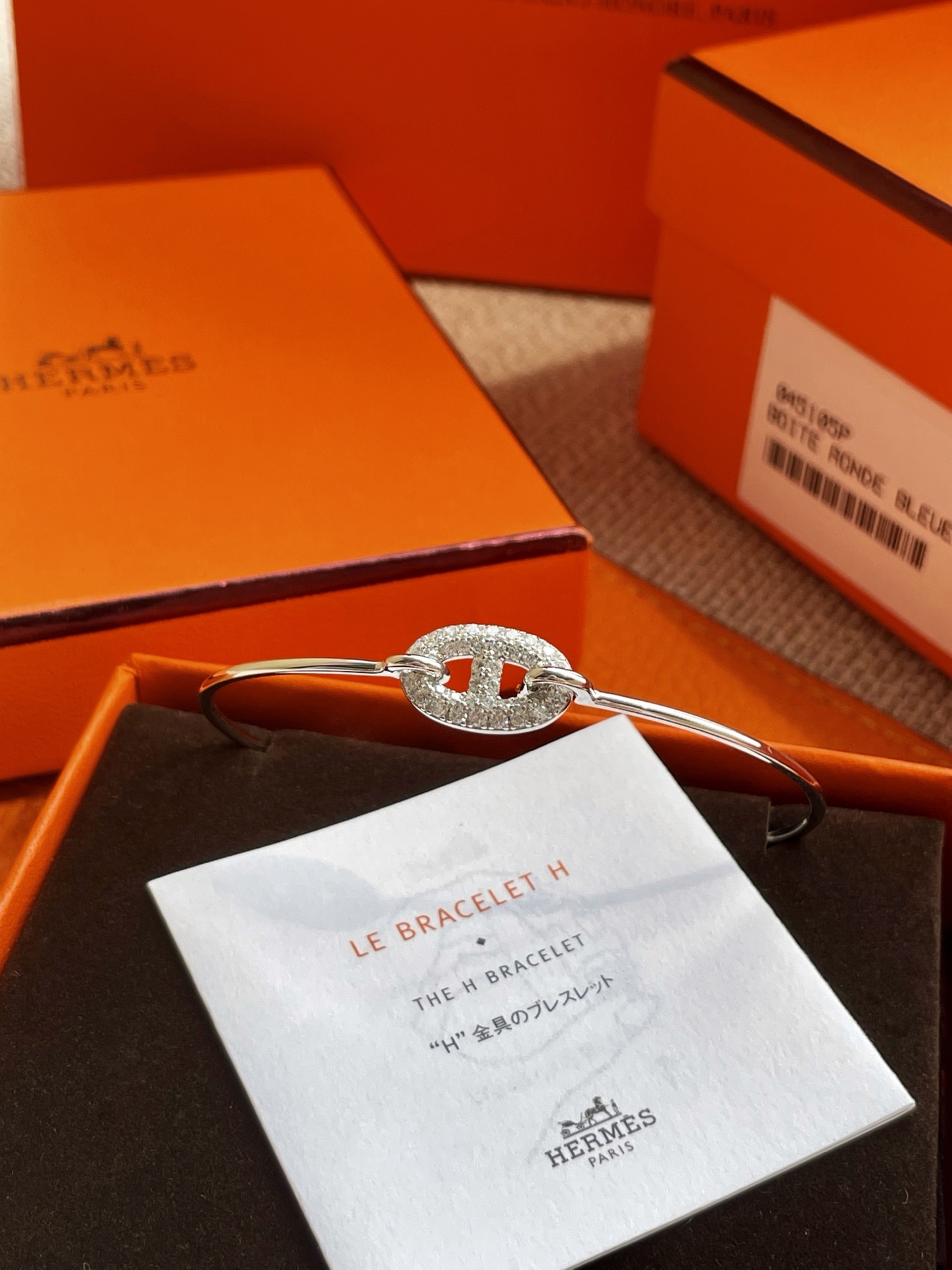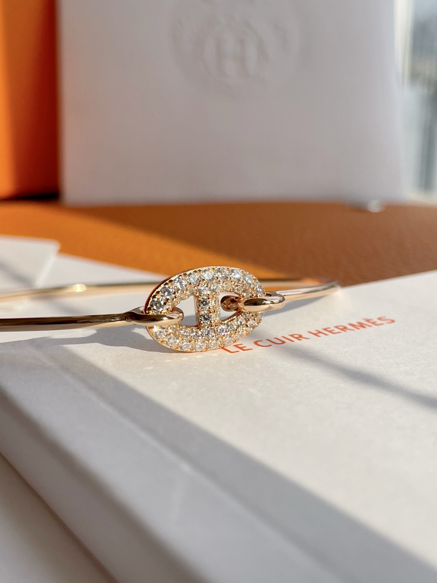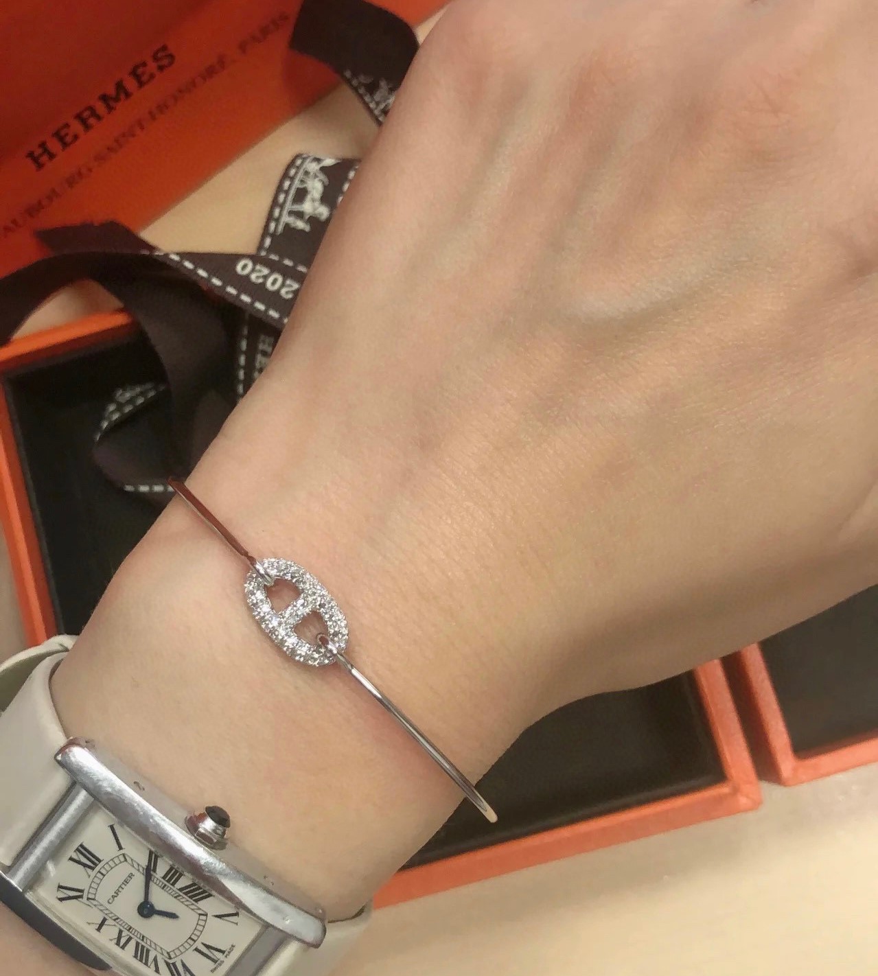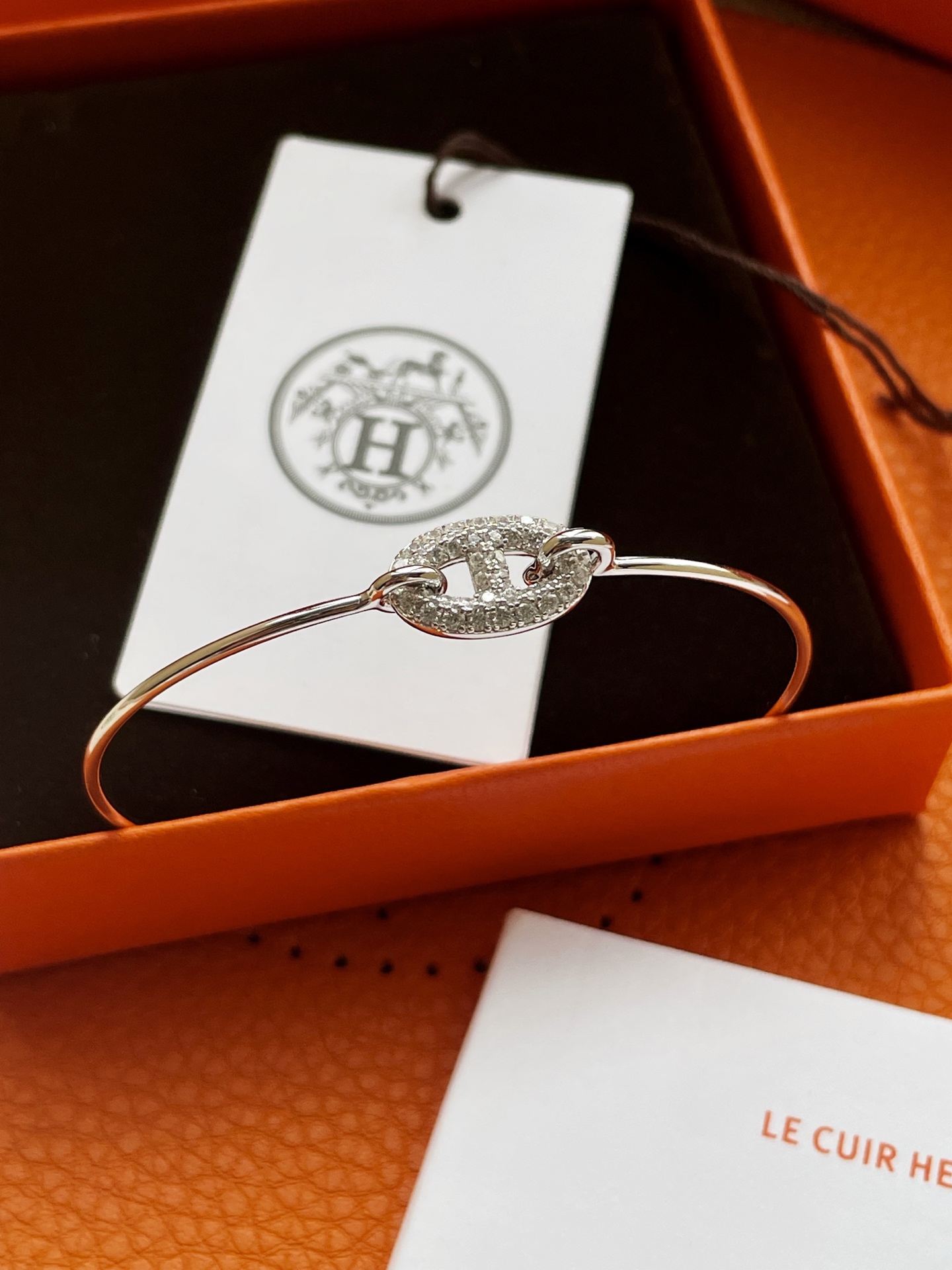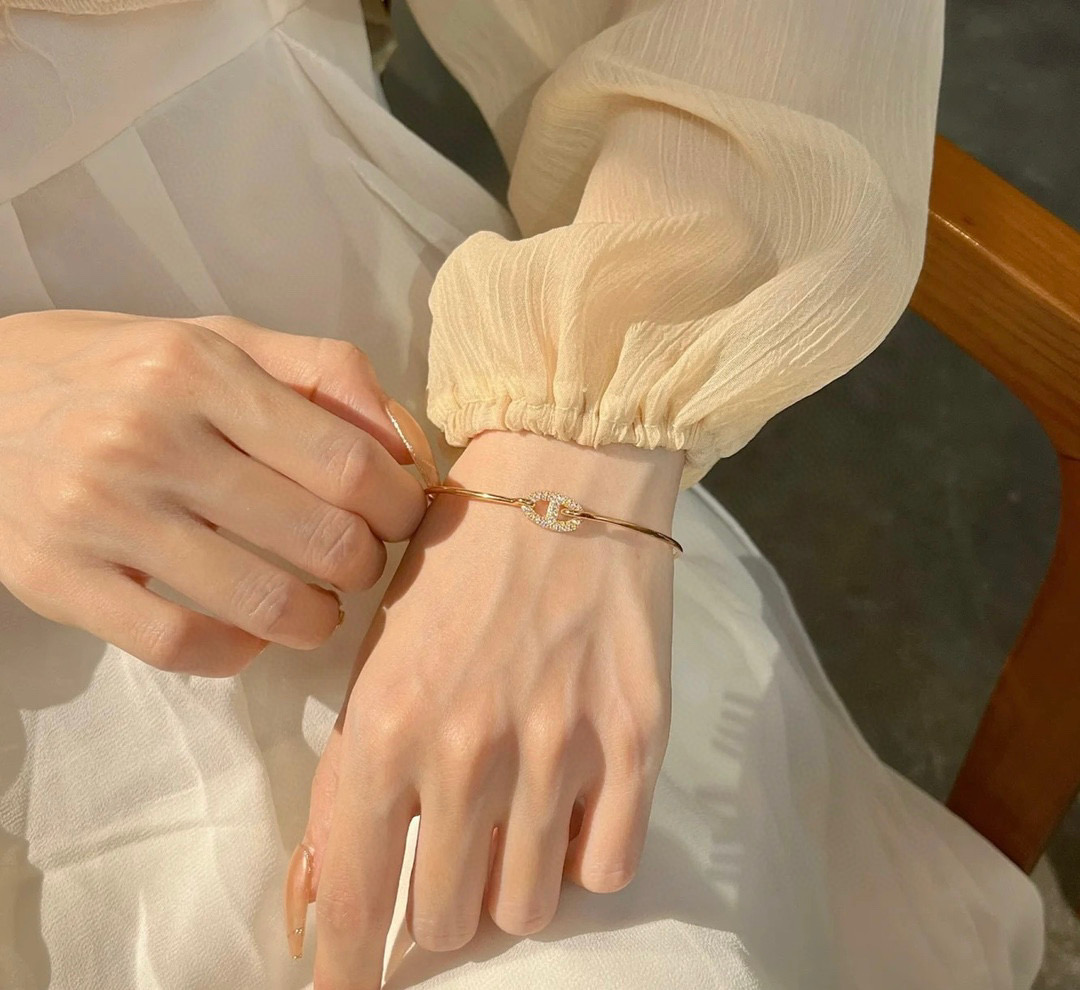 2025春夏新品 H家 滿鑽單豬鼻細圈手鐲 極簡高級的日常質感穿搭首選