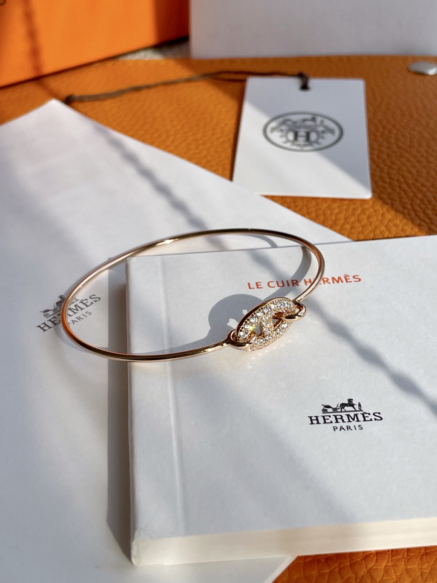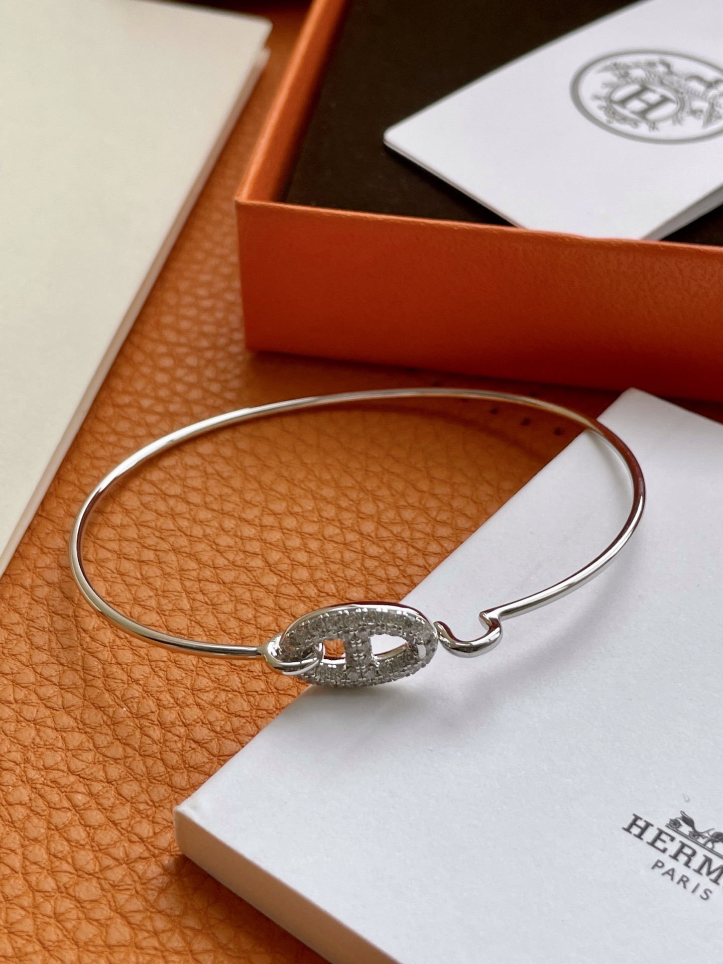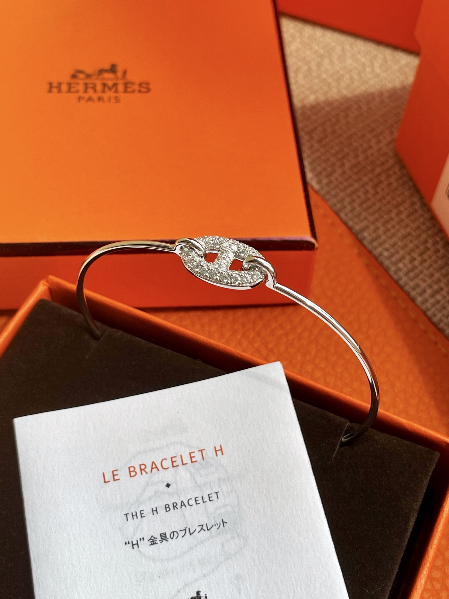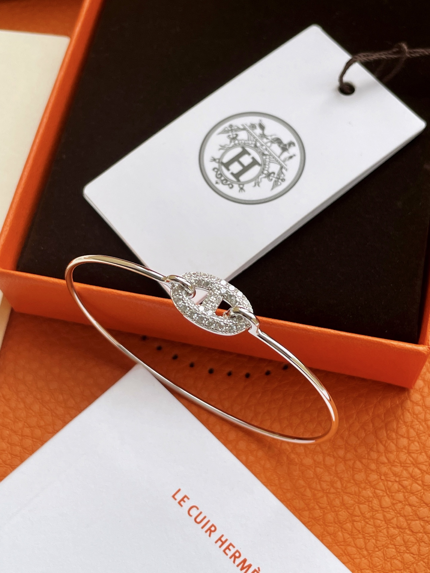 2025春夏新品 H家 滿鑽單豬鼻細圈手鐲 極簡高級的日常質感穿搭首選