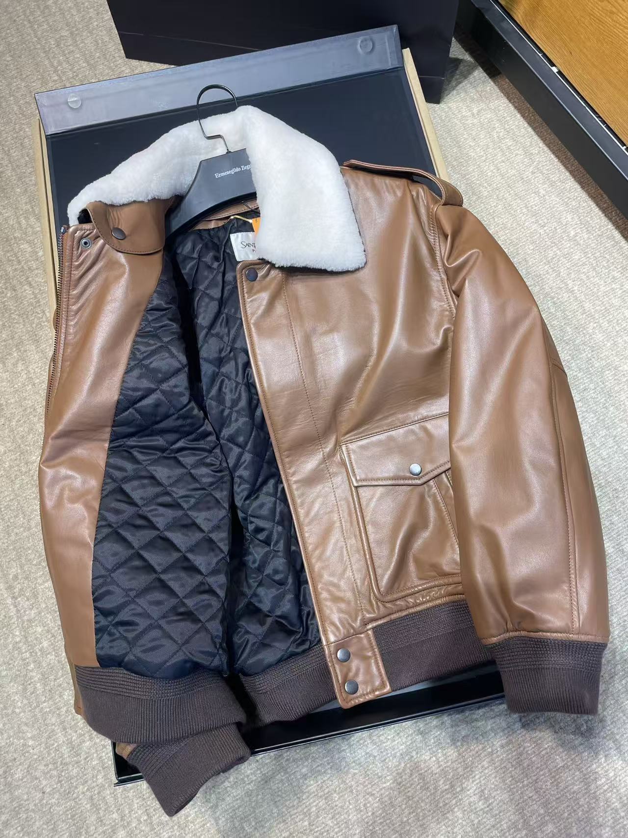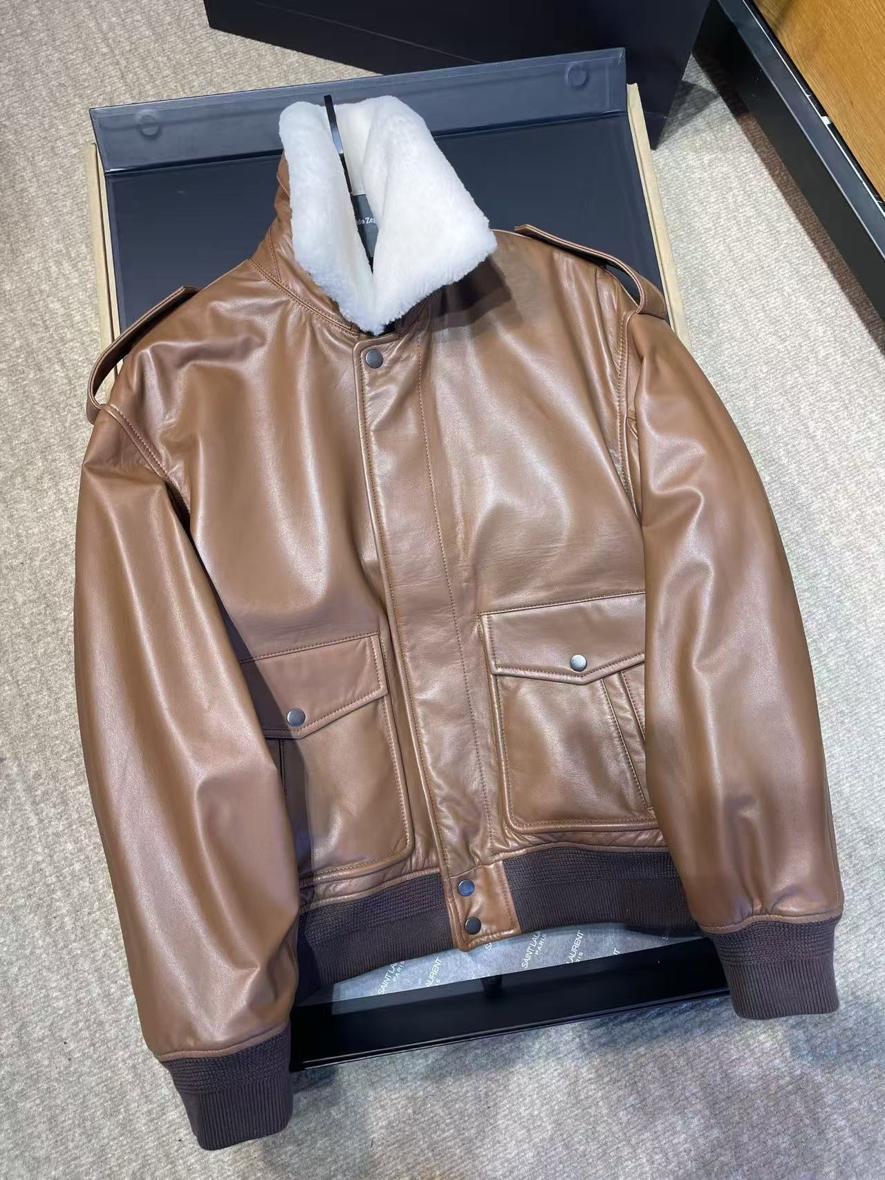 格調滿分: 俐落的線條與高級的皮質,讓這件皮衣的格調感瞬間拉滿,質感非市場貨可比。