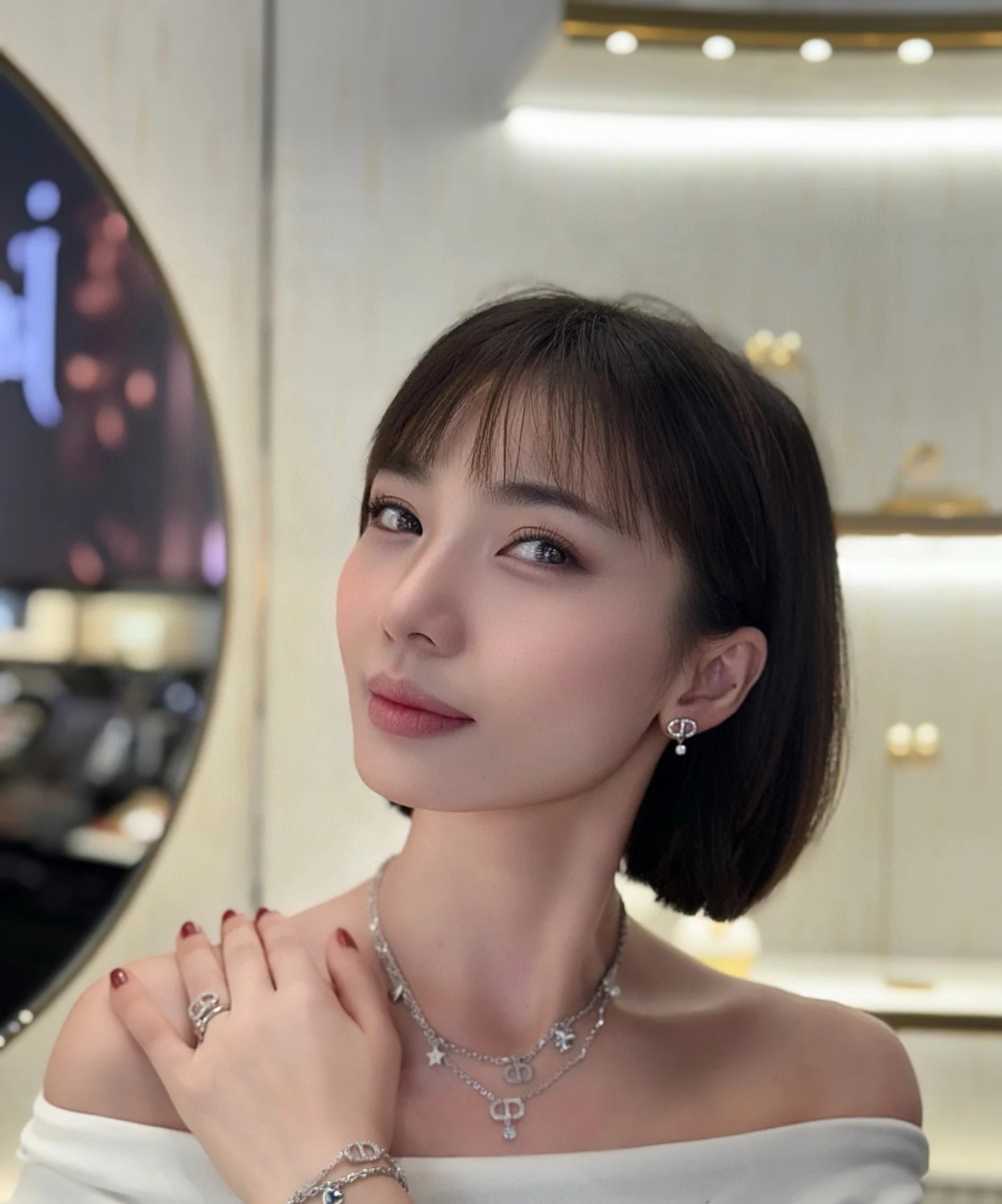 整體以經典 CD 標誌為主體,上方鑲嵌不同規格的水鑽,細節滿滿、閃耀奪目。銀色調清冷高雅,佩戴格外出眾,不論是搭配日常造型還是晚宴穿搭,都能瞬間提升整體氣質。