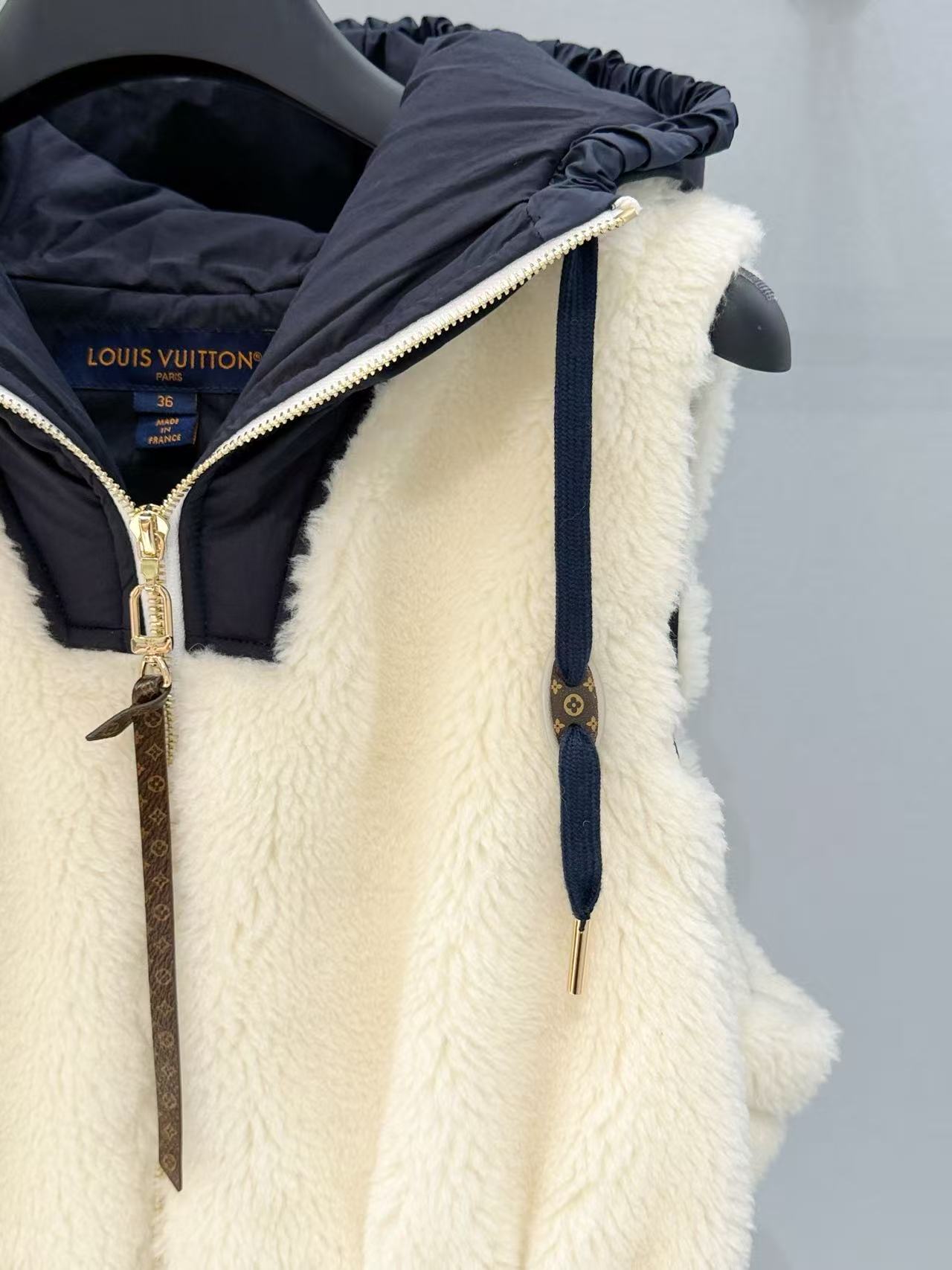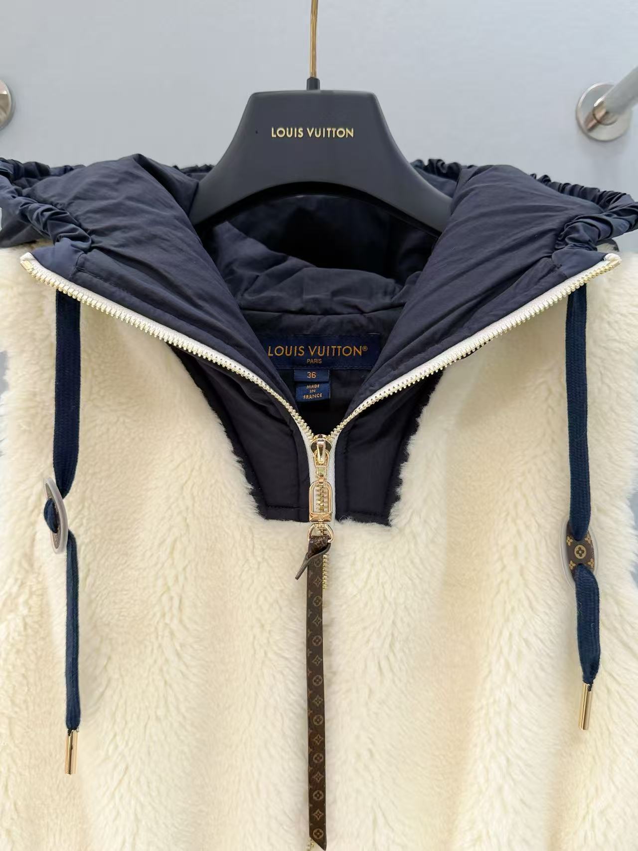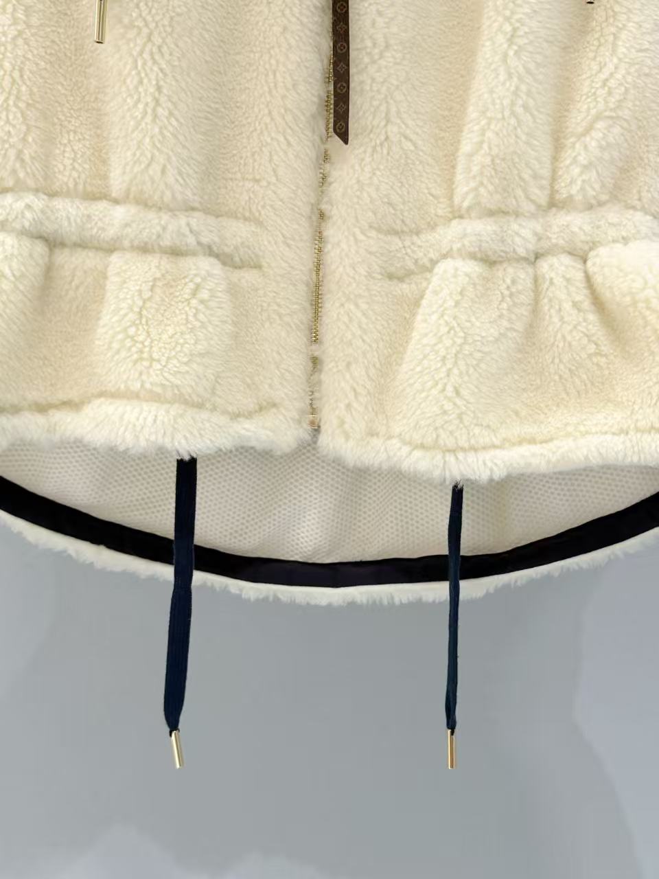 白色主體搭配黑色連帽內襯,設計簡約卻充滿奢華感,金色拉鏈的點綴讓整體細節更加精緻,真的滿分!