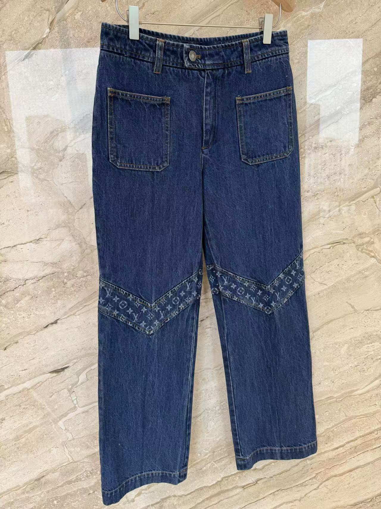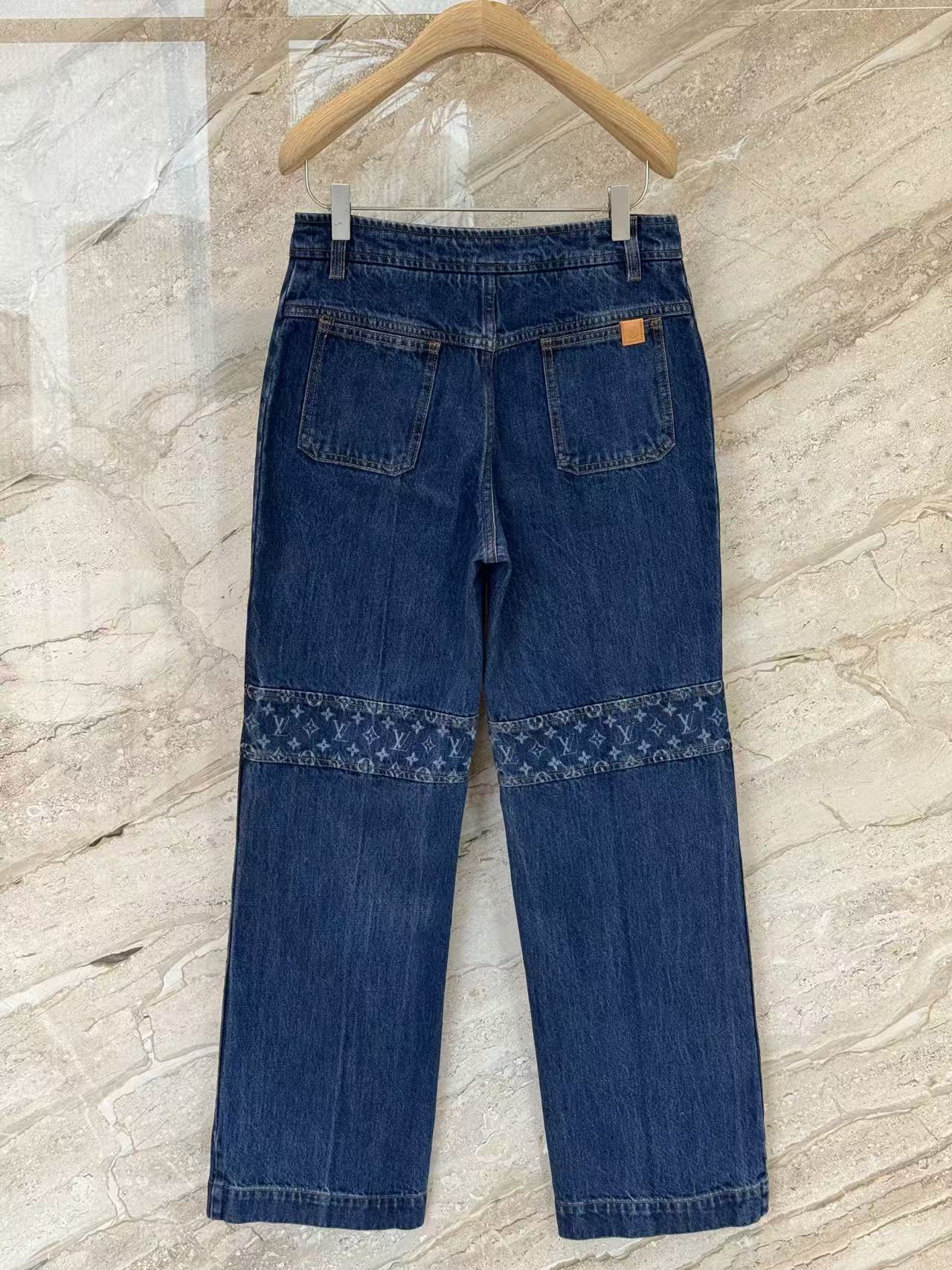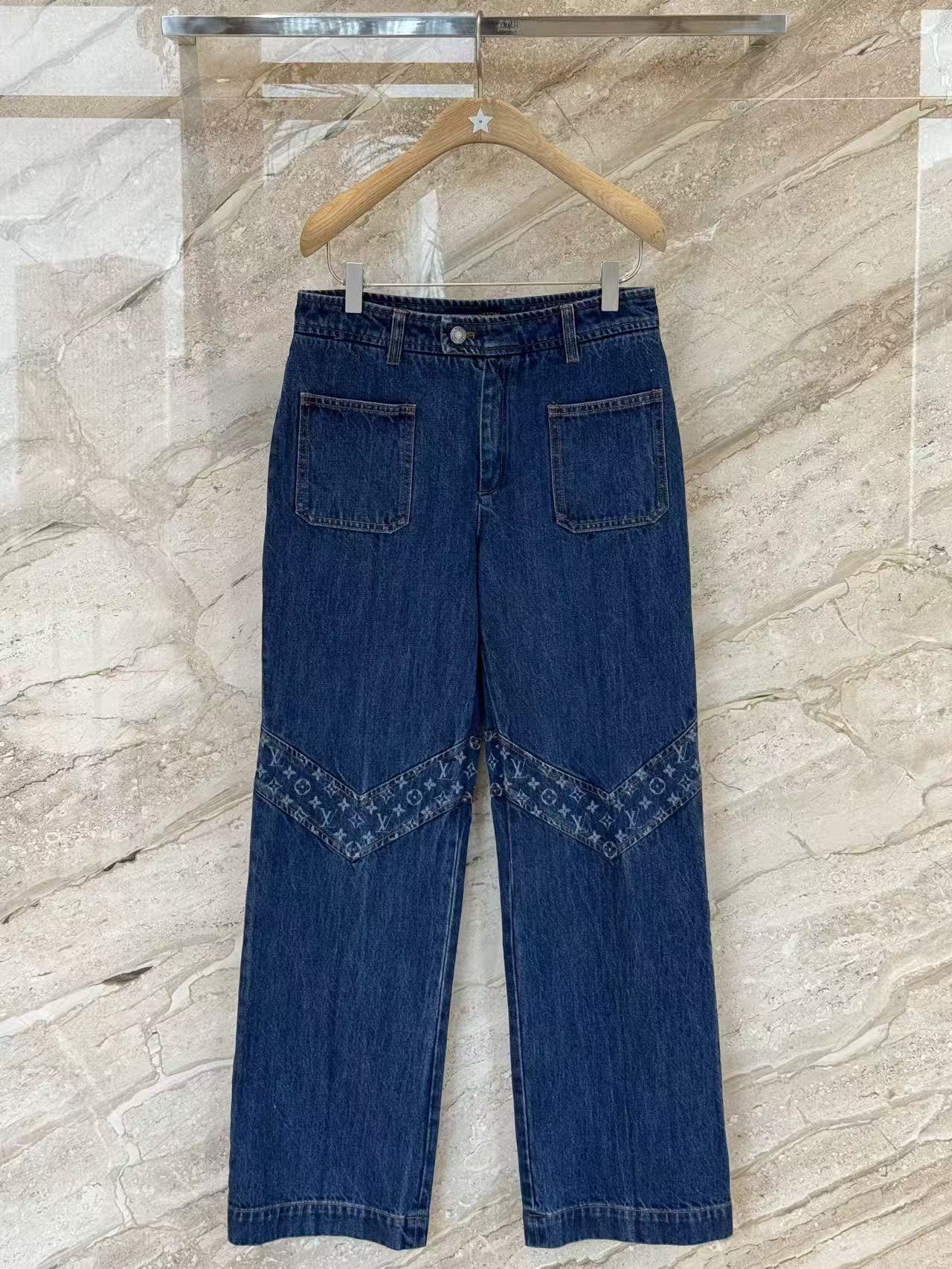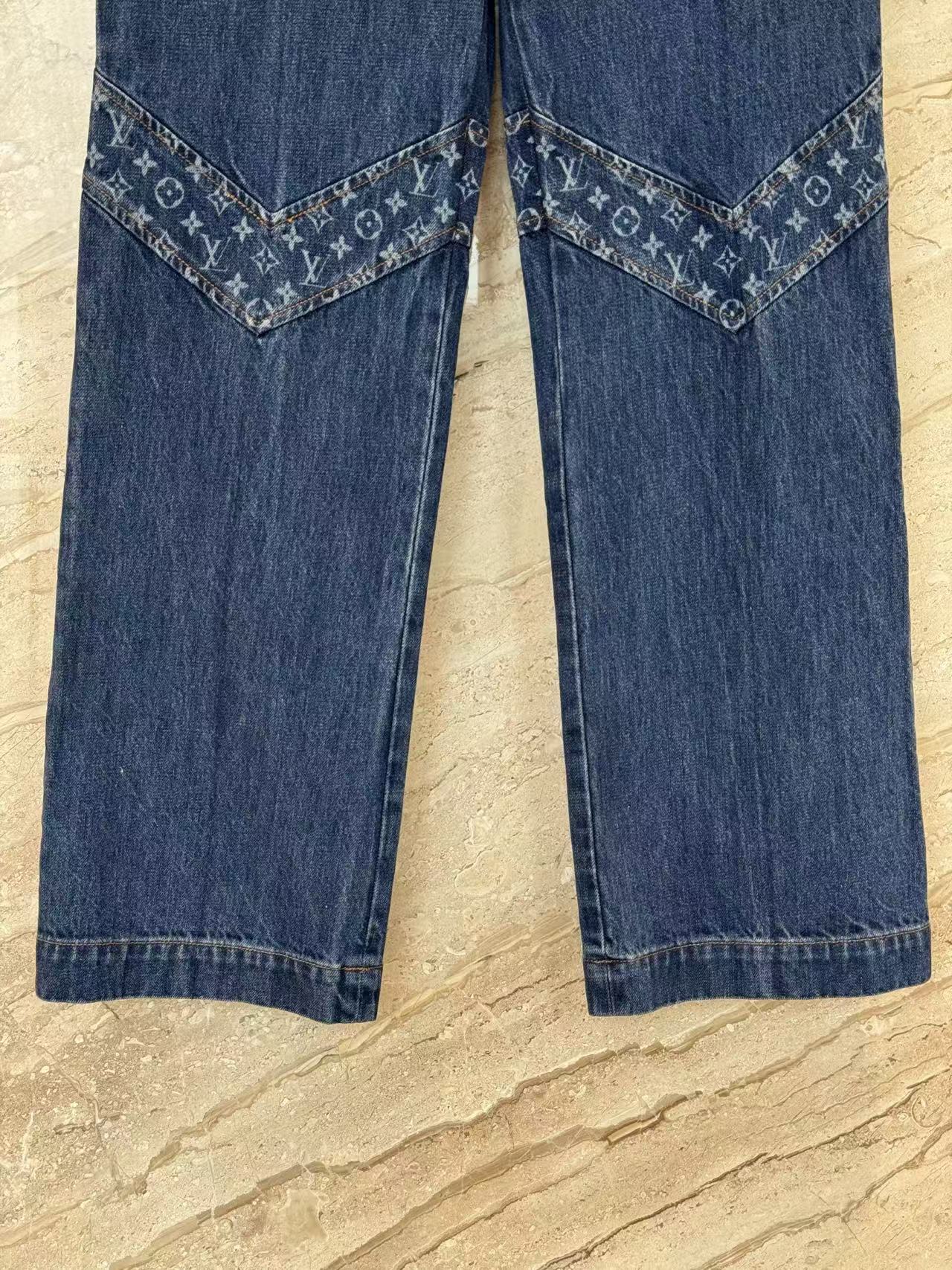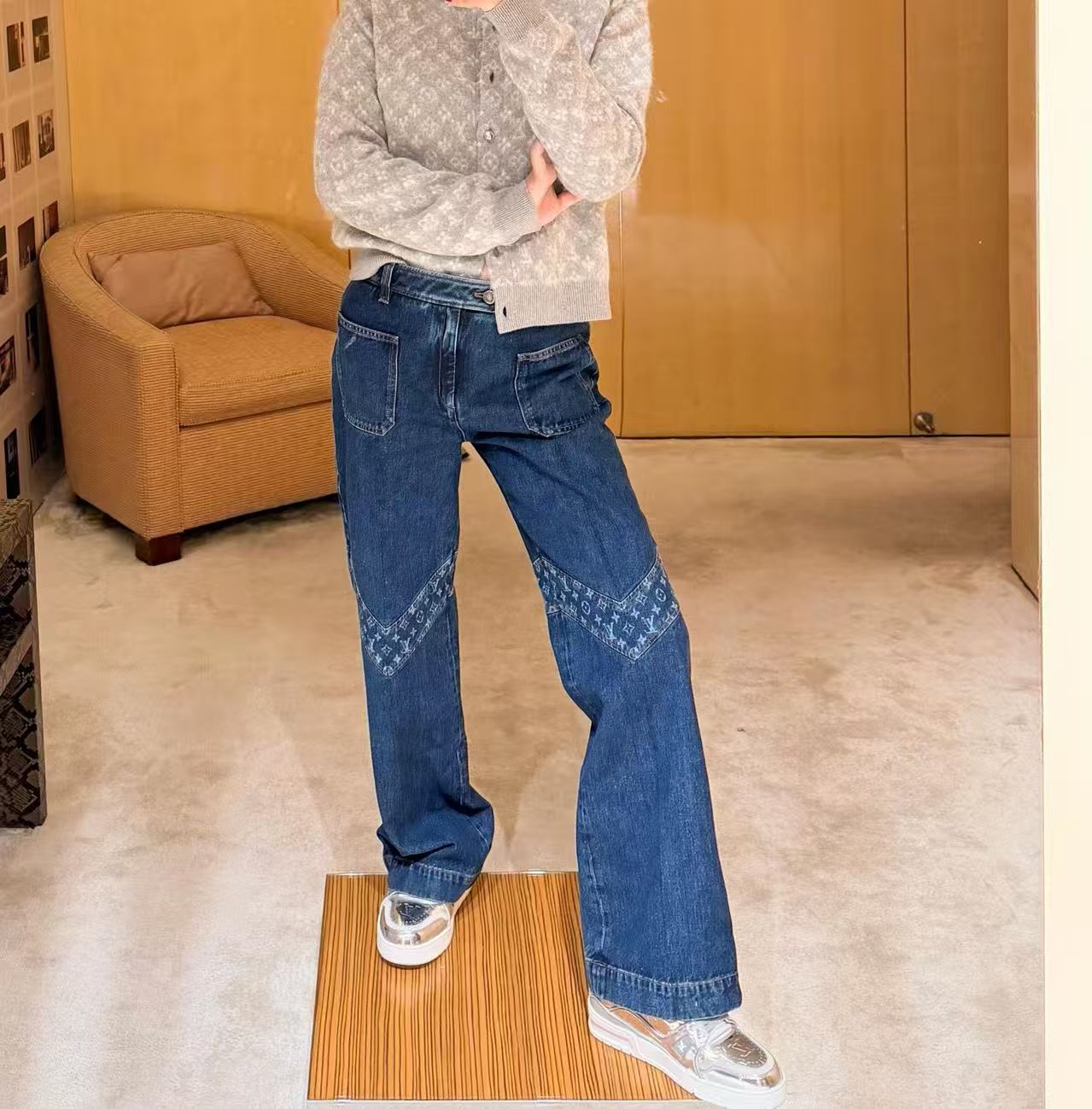 早春重磅特惠福利-L家 V行拼接老花牛仔褲