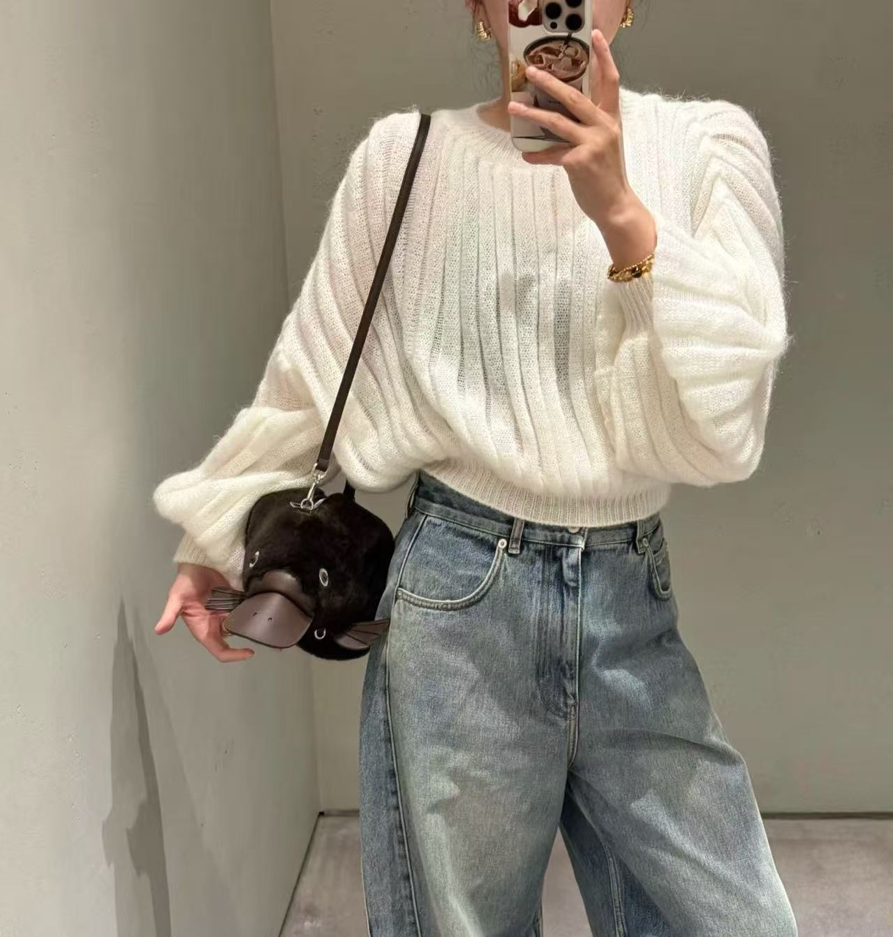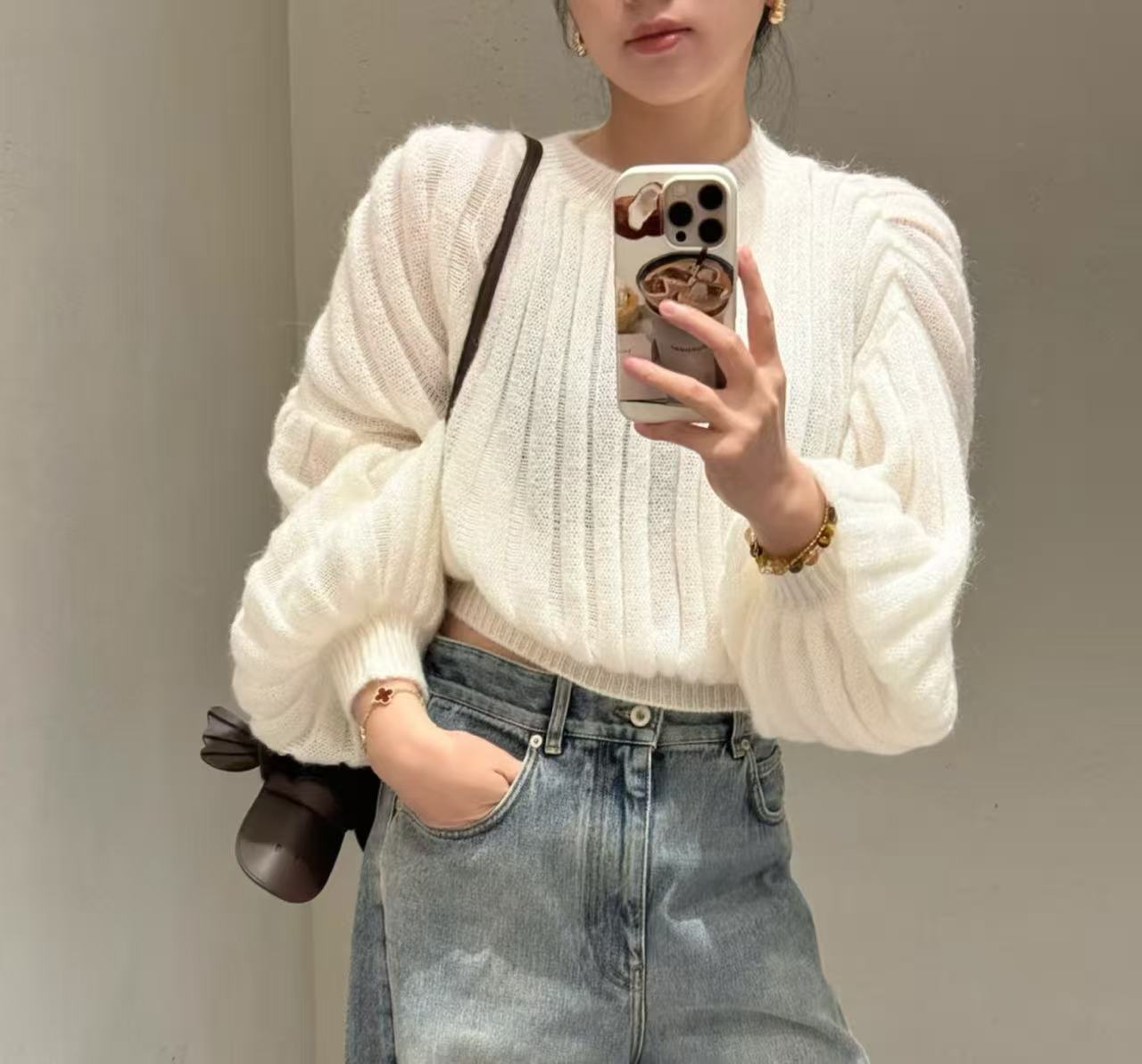 2025 秋冬 LEW家 新款奶白色燈籠袖毛衣