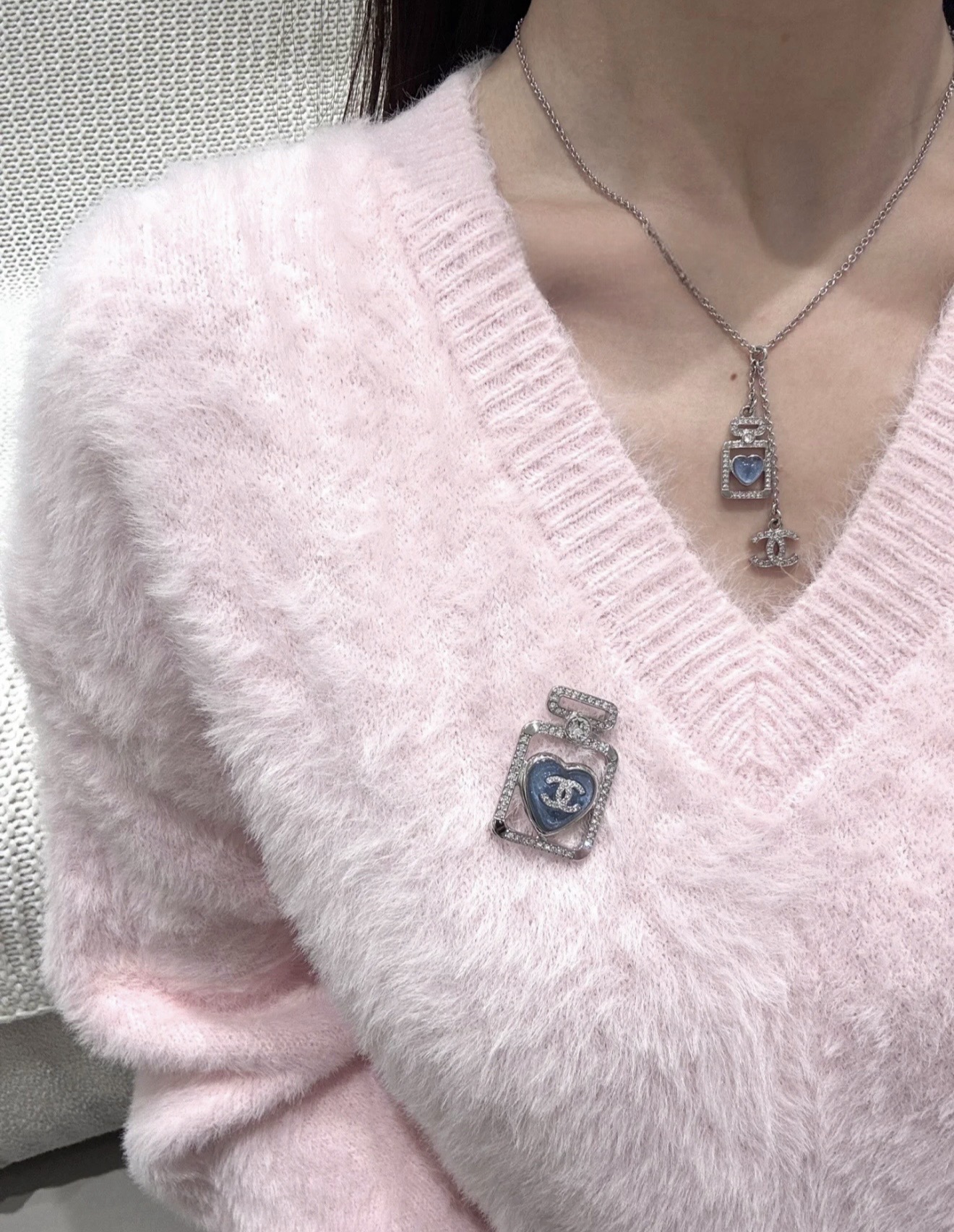 吊墜設計融合經典雙C Logo,搭配心型藍色元素,無論是日常搭配襯衫、洋裝,或是出席聚會、下午茶,都能展現出高雅又不失個性的品味。