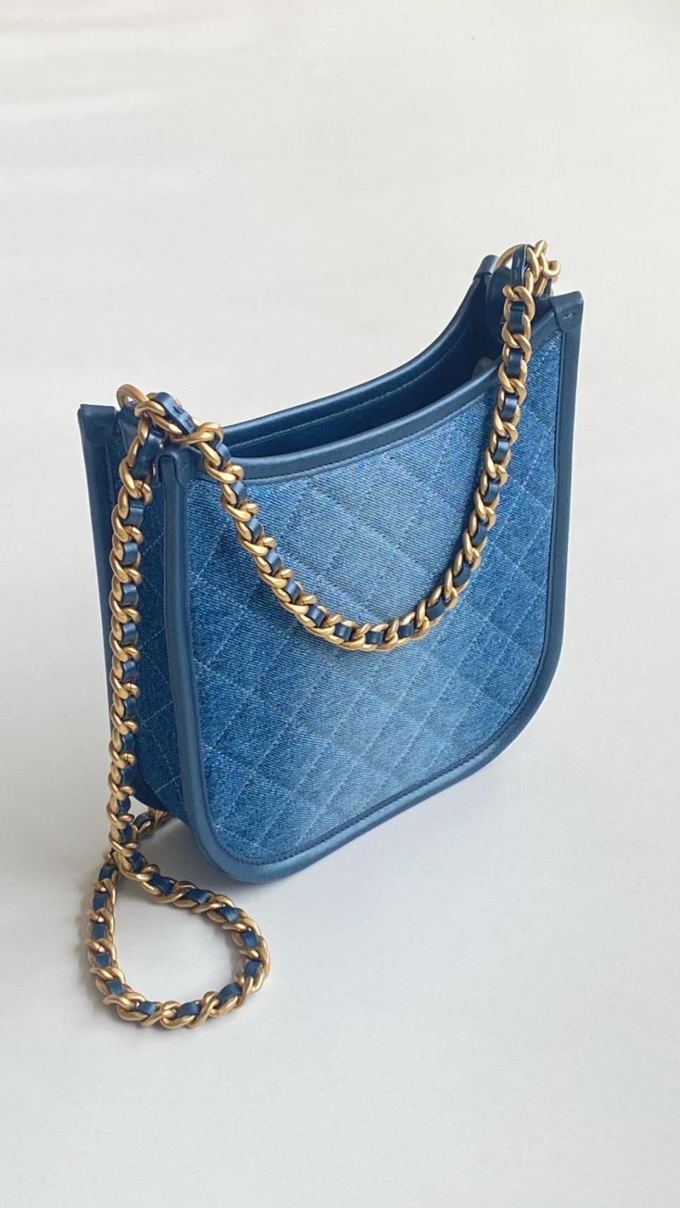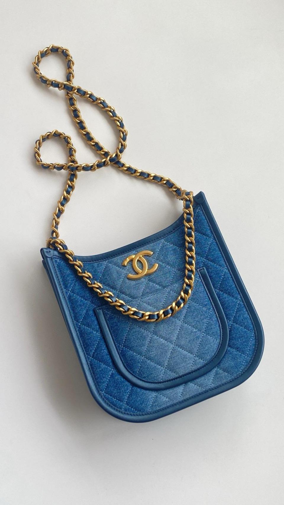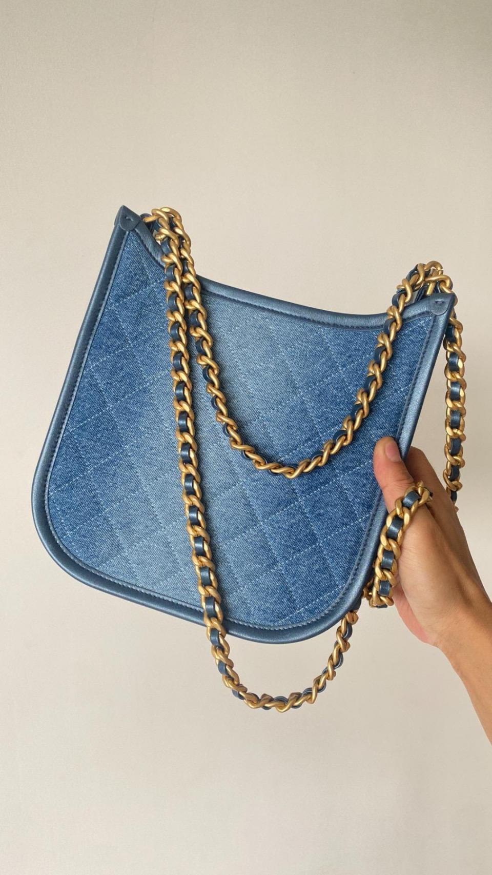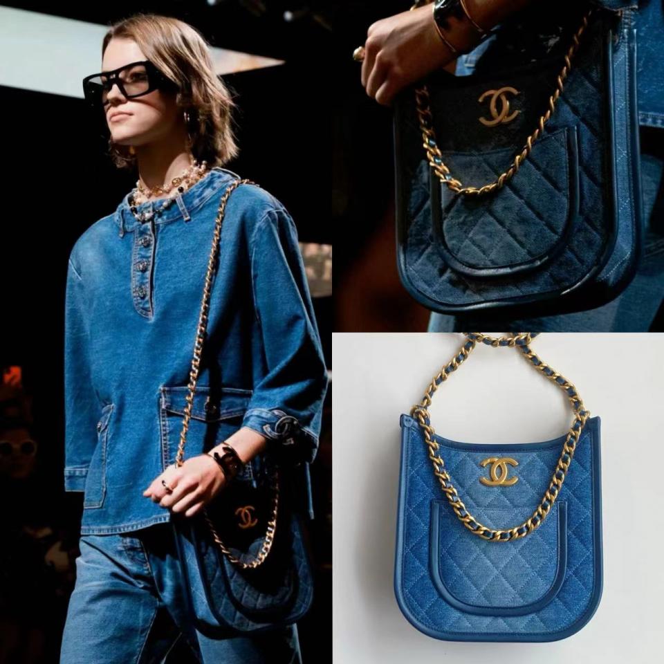 2024春夏新品 C家漸變單寧牛仔Hobo嬉皮包(豎款) 雙鏈復古金扣