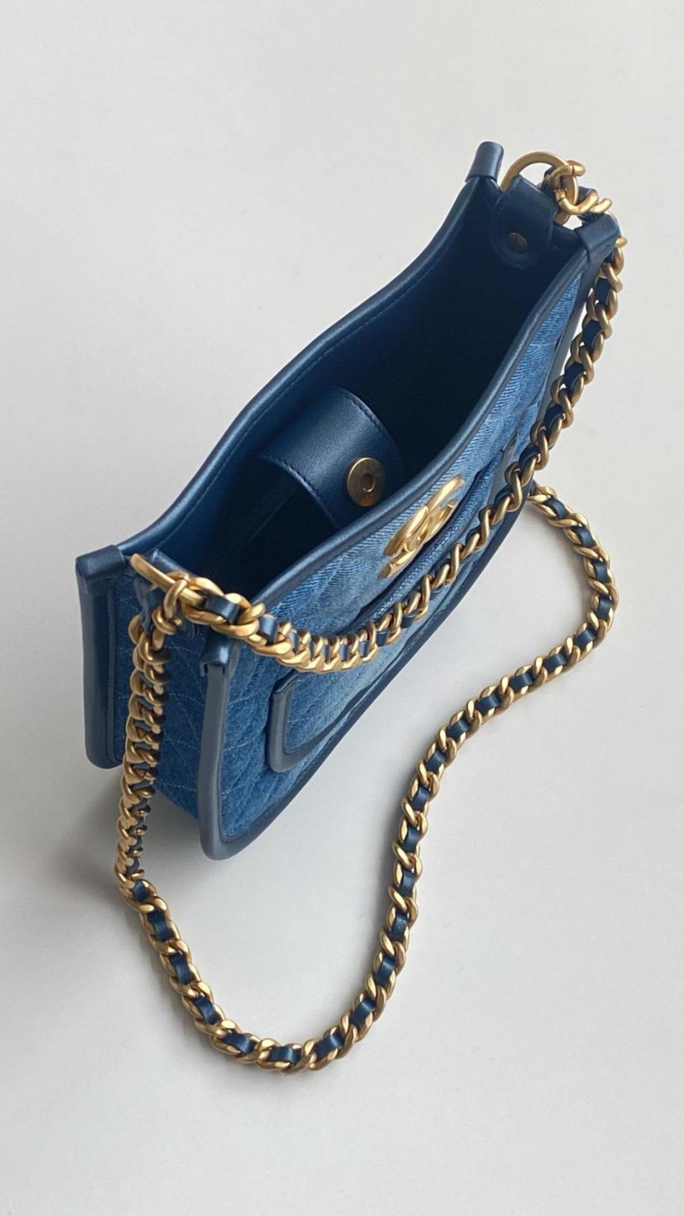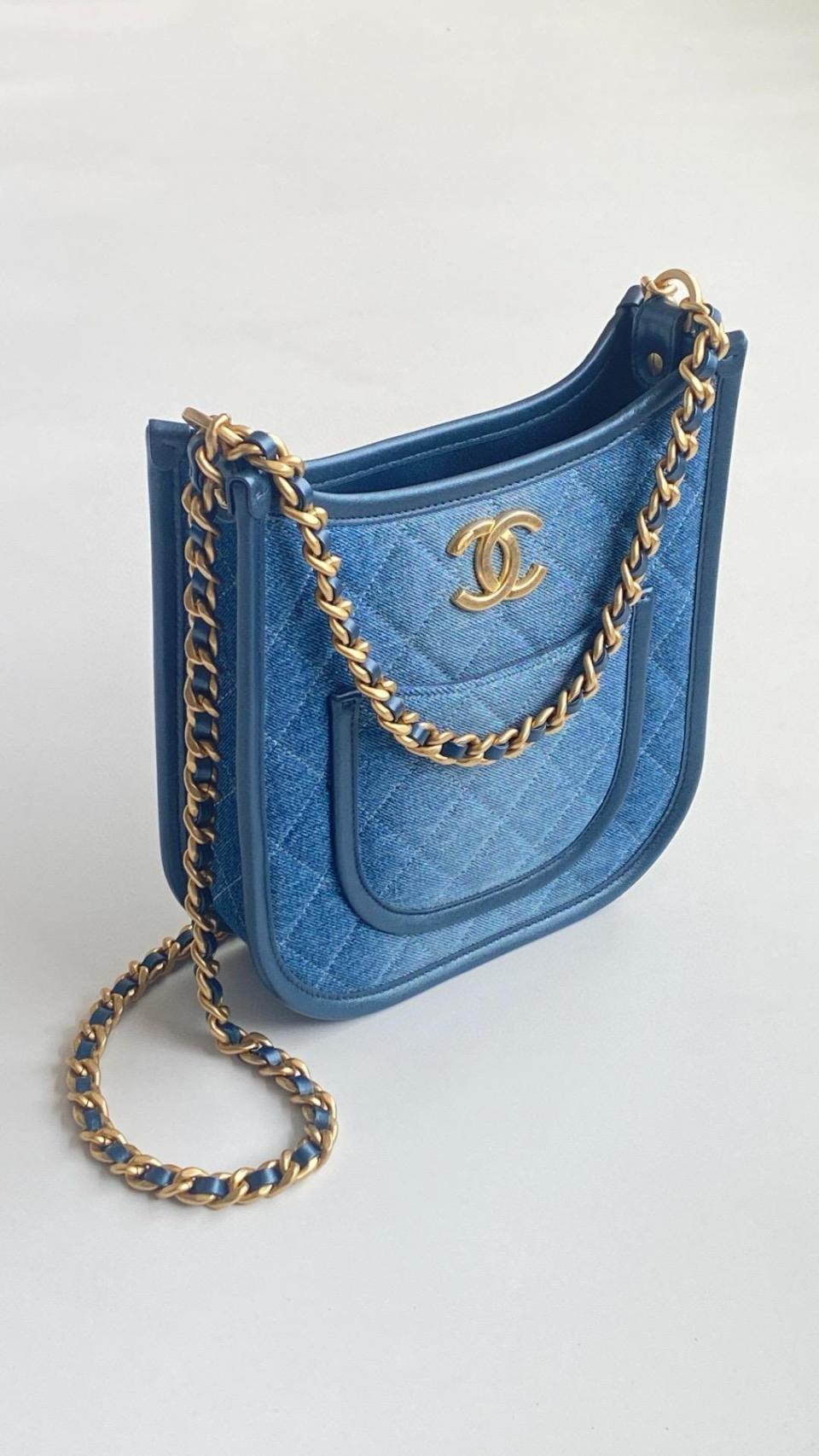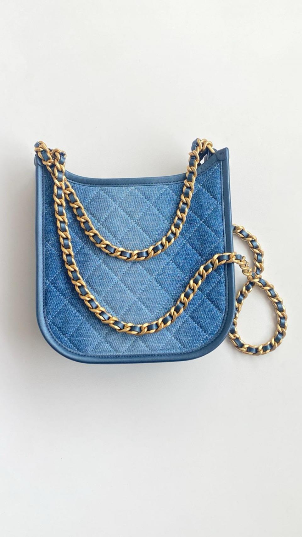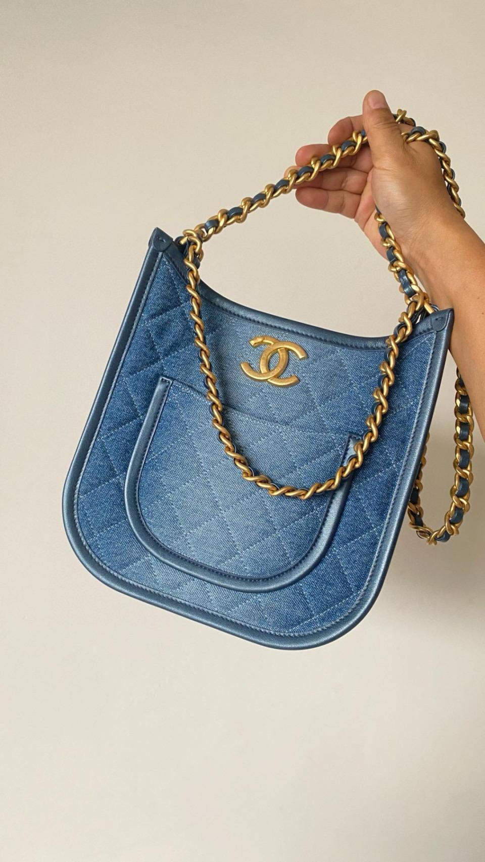 2024春夏新品 C家漸變單寧牛仔Hobo嬉皮包(豎款) 雙鏈復古金扣
