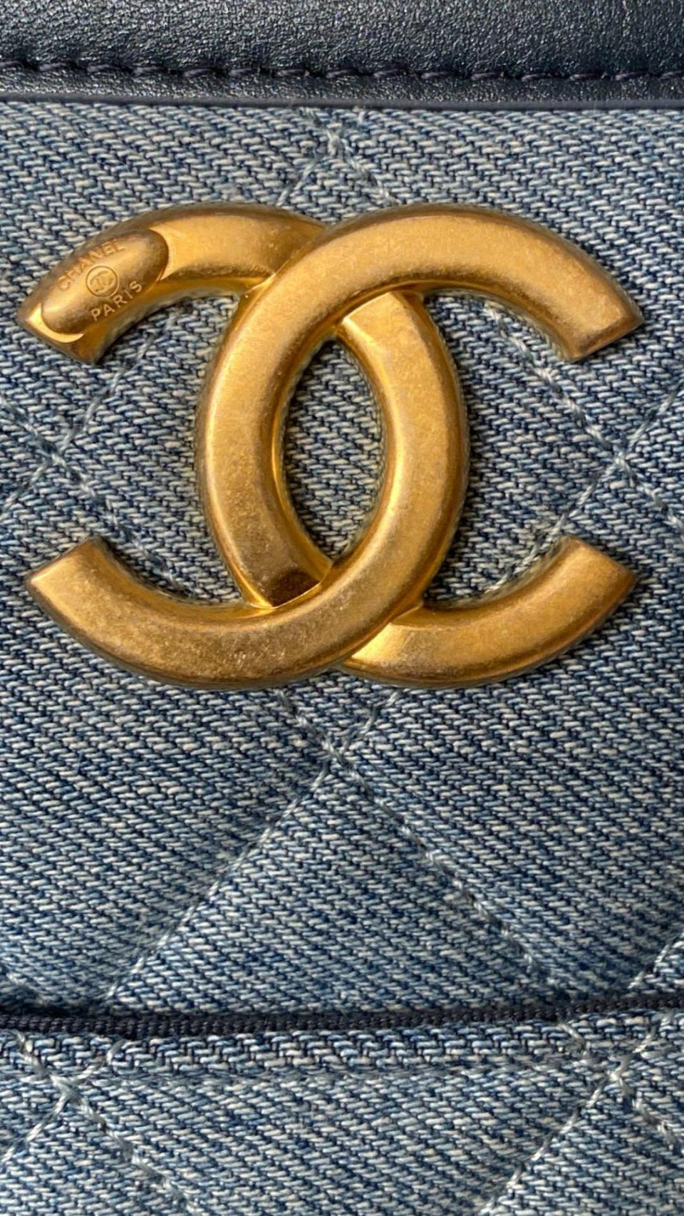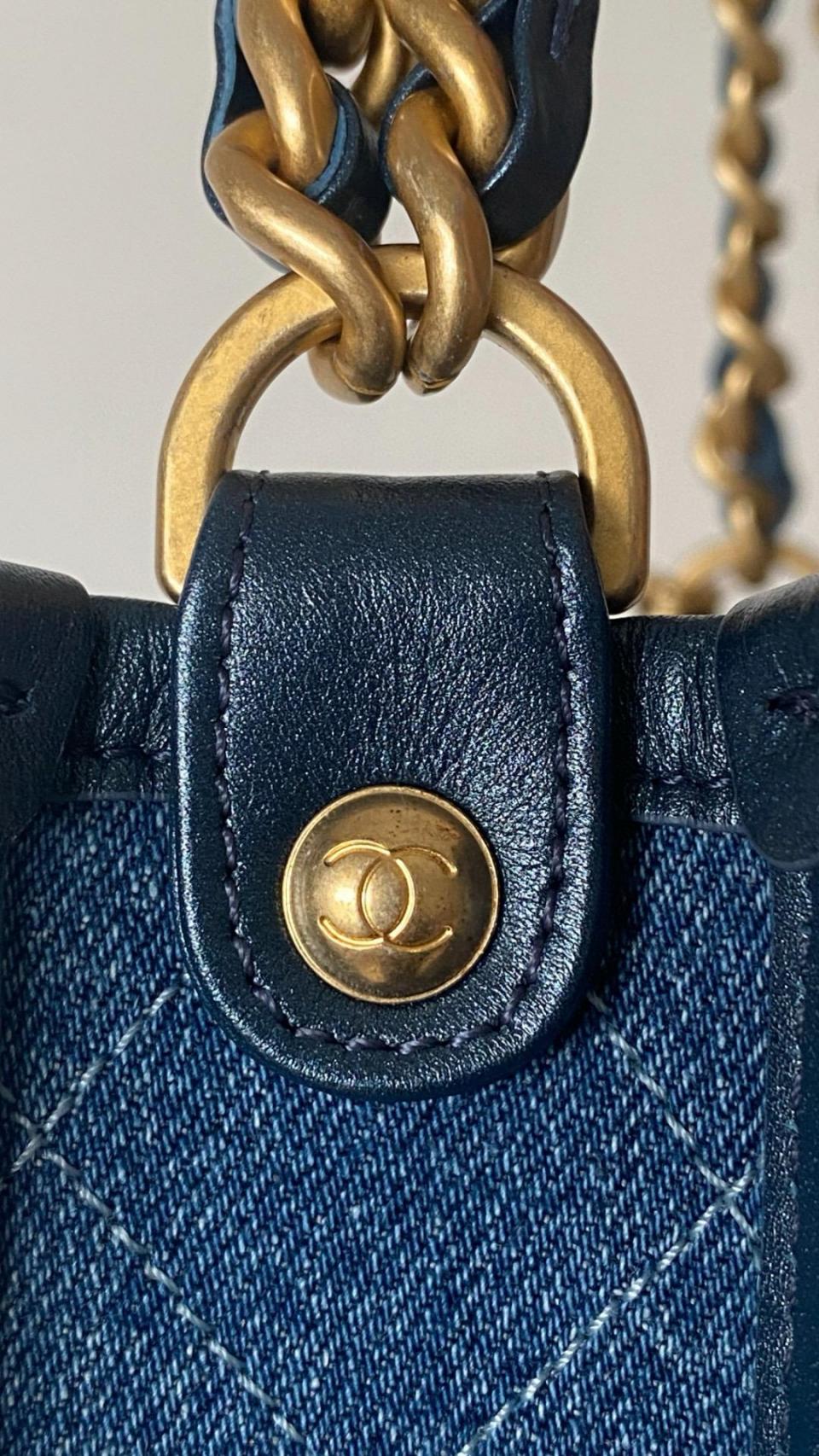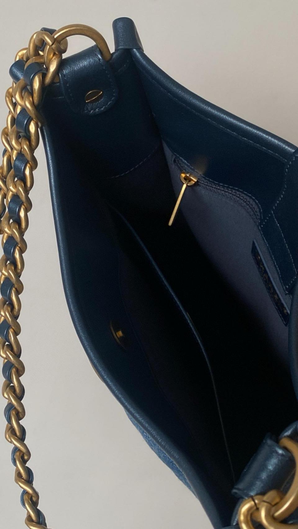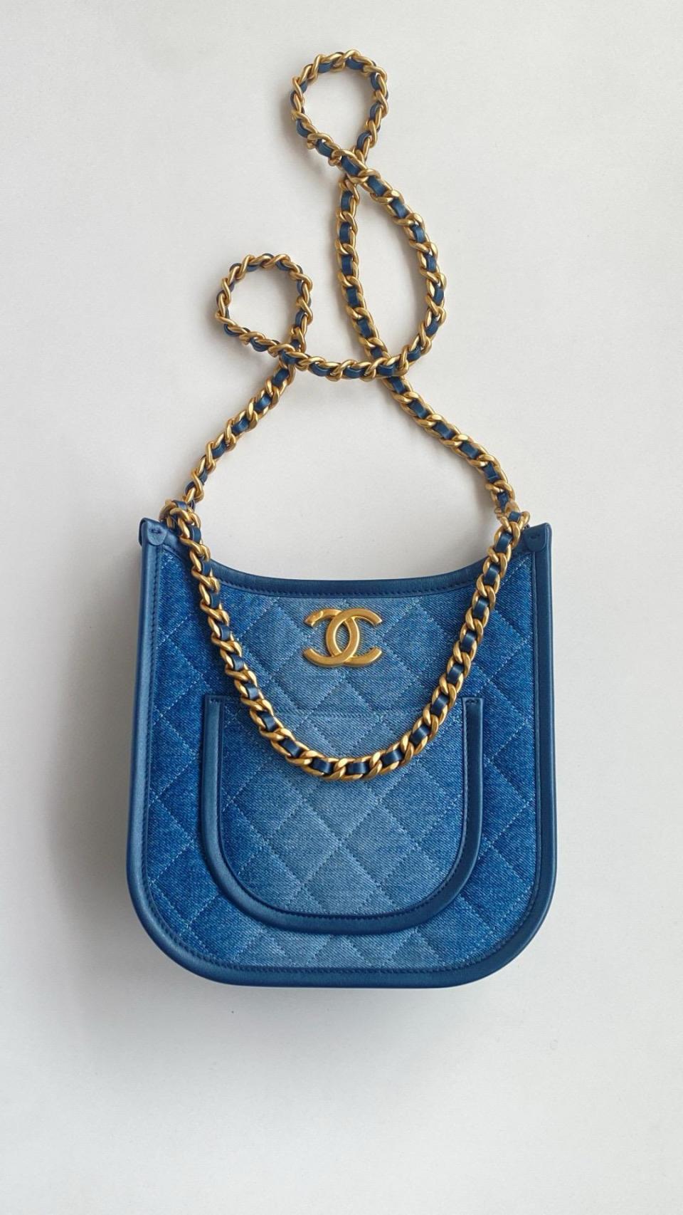 2024春夏新品 C家漸變單寧牛仔Hobo嬉皮包(豎款) 雙鏈復古金扣