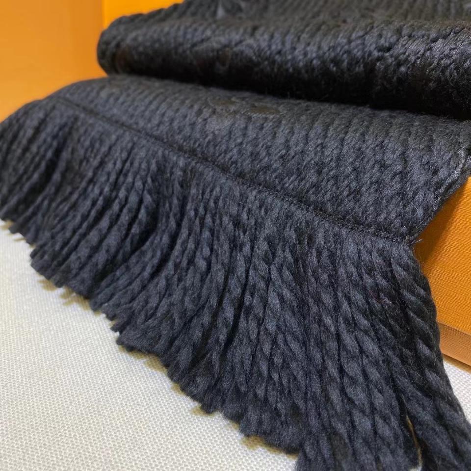 2021秋冬 經典款式 每年首選的圍巾 大老花流蘇羊毛圍巾(黑色)